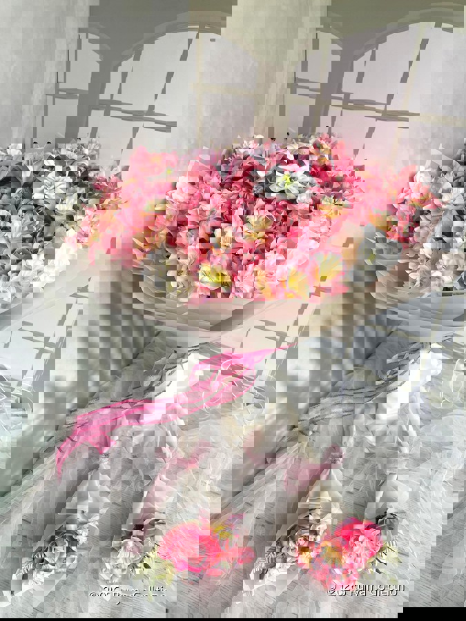 Göz alıcı bir ilk izlenim için tasarlandı. Her detayıyla özenle hazırlanan isteme ve nişan buketimiz, sevginin en asil halini yansıtır.? Büyük boydur. Ömürlük birinci sınıf kalitedeki kumaş çiçeklerden oluşmaktadır. Teslim süresi 15-20 iş günüdür; acil tarihler için not kısmına belirtmeniz yeterlidir.? ?Ürünlerimiz tamamen el yapımıdır; bu nedenle her buket ve süs benzersizdir. Çiçeklerin yerleşimi ve detayları ufak farklılıklar gösterebilir, bu da ürünlerimize özel bir karakter katar.