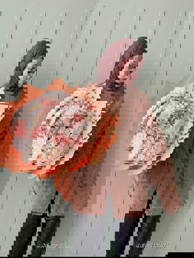 Göz alıcı bir ilk izlenim için tasarlandı. Her detayıyla özenle hazırlanan isteme ve nişan buketimiz, sevginin en asil halini yansıtır.? Büyük boydur. Ömürlük birinci sınıf kalitedeki kumaş çiçeklerden oluşmaktadır. Teslim süresi 15-20 iş günüdür; acil tarihler için not kısmına belirtmeniz yeterlidir.? ?Ürünlerimiz tamamen el yapımıdır; bu nedenle her buket ve süs benzersizdir. Çiçeklerin yerleşimi ve detayları ufak farklılıklar gösterebilir, bu da ürünlerimize özel bir karakter katar.