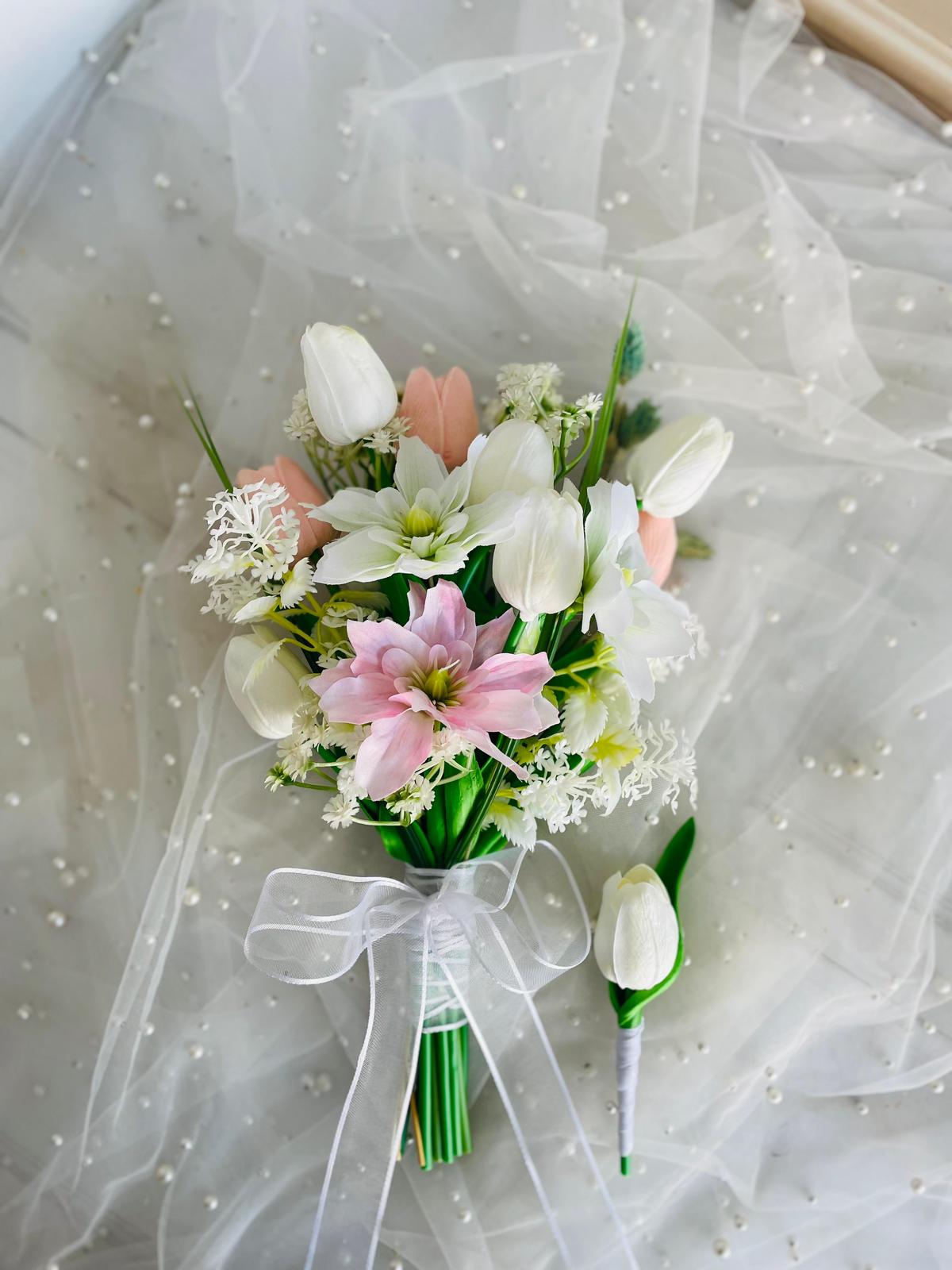 💐Gerçek çiçek görünümündeki kumaş ve ıslak dokulu birinci sınıf kumaş çiçeklerle hazırlanmıştır. Orta boydur ne büyük ne de küçük . Yaka çiçeği hediyedir. Teslim süresi 15-20 iş günüdür; acil tarihler için not kısmına belirtmeniz yeterlidir.💌 Ürünlerimiz tamamen el yapımıdır; bu nedenle her buket ve süs benzersizdir. Çiçeklerin yerleşimi ve detayları ufak farklılıklar gösterebilir, bu da ürünlerimize özel bir karakter katar. 💐