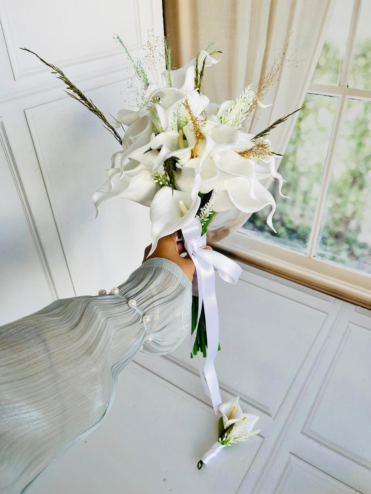 💐Gerçek çiçek görünümündeki birinci sınıf yapay ıslak dokulu çiçek ve şoklanmış çiçekler ile hazırlanmıştır. Zarif ve sade tasarımıyla her gelinliğe uyum sağlar. 24 adet yapay ıslak galadan oluşmaktadır . Orta boydur ne büyük ne de küçük . Yaka çiçeği hediyedir. Teslim süresi 15-20 iş günüdür; acil tarihler için not kısmına belirtmeniz yeterlidir.🌸 Ürünlerimiz tamamen el yapımıdır; bu nedenle her buket ve süs benzersizdir. Çiçeklerin yerleşimi ve detayları ufak farklılıklar gösterebilir, bu da ürünlerimize özel bir karakter katar. 💐