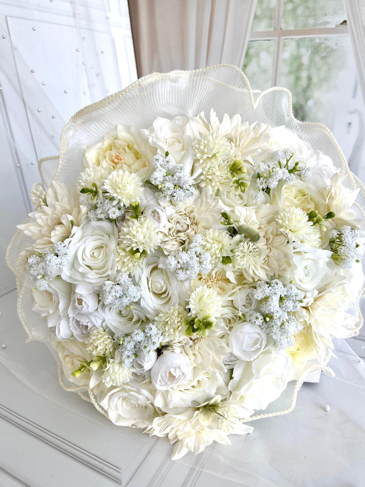 💚Beyazın huzuru, zarafetin modern yorumu. Her anı özel kılmak için tasarlandı. 💫 Büyük boydur. Ömürlük birinci sınıf kalitedeki kumaş çiçeklerden oluşmaktadır. Teslim süresi 15-20 iş günüdür; acil tarihler için not kısmına belirtmeniz yeterlidir. 💌Ürünlerimiz tamamen el yapımıdır; bu nedenle her buket ve süs benzersizdir. Çiçeklerin yerleşimi ve detayları ufak farklılıklar gösterebilir, bu da ürünlerimize özel bir karakter katar. 💐