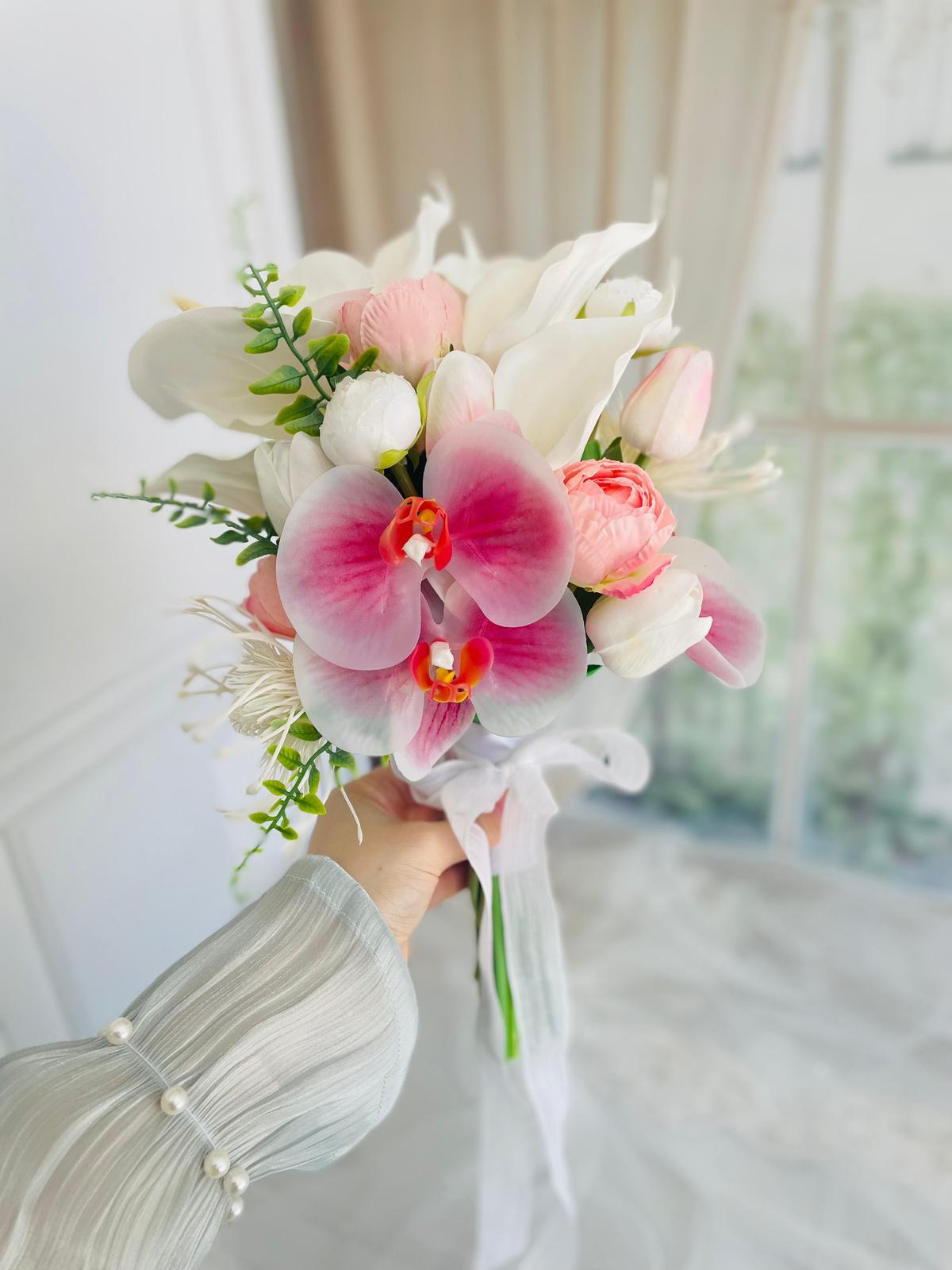 💫Yumuşak renk geçişleriyle zarafetin sembolü olan bu buket, her bakışta hayran bırakır. Birinci sınıf kalitedeki birebir canlı görünümündeki çiçeklerden oluşmaktadır. Yaka çiçeği hediyedir.💐 Teslim süresi 15-20 iş günüdür; acil tarihler için not kısmına belirtmeniz yeterlidir. 💌Ürünlerimiz tamamen el yapımıdır; bu nedenle her buket ve süs benzersizdir. Çiçeklerin yerleşimi ve detayları ufak farklılıklar gösterebilir, bu da ürünlerimize özel bir karakter katar. 💐