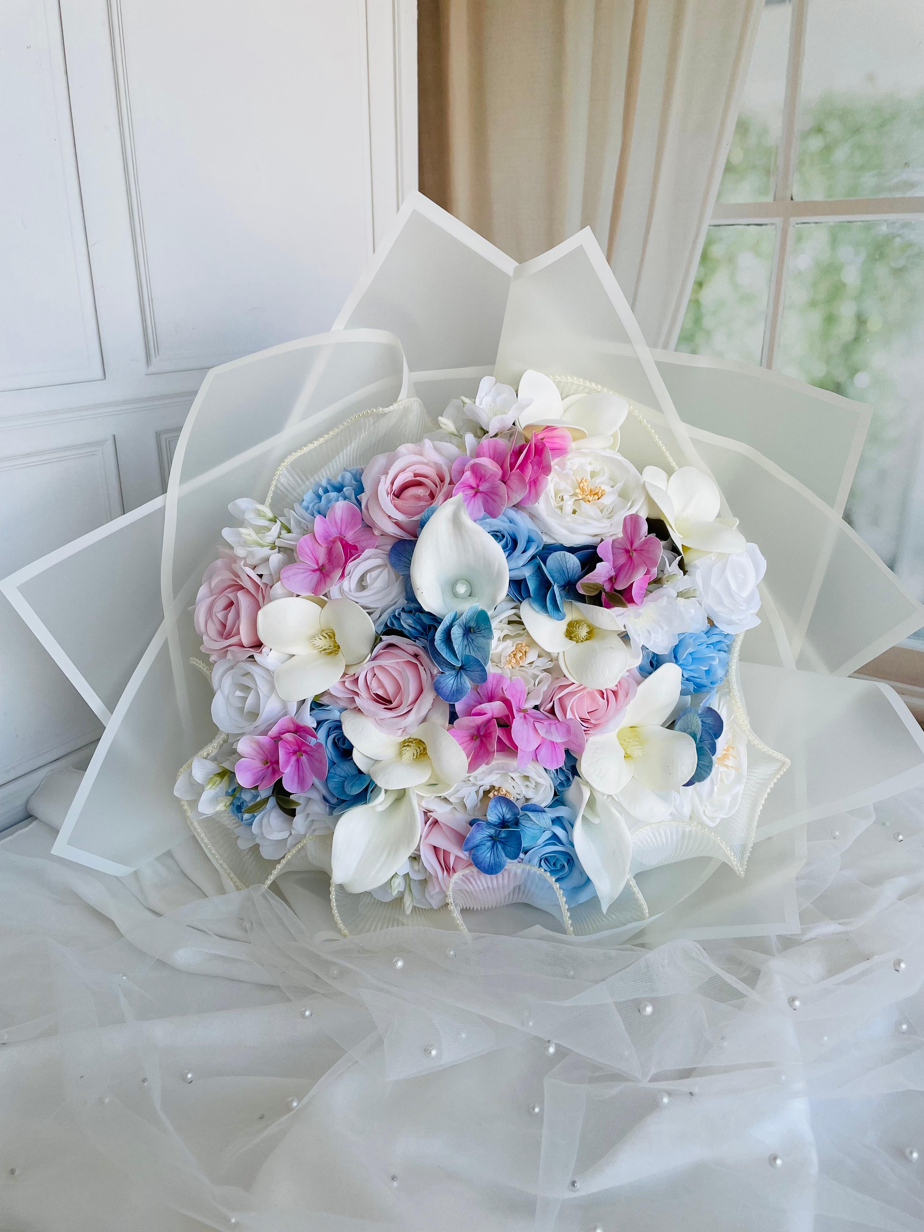 💫Renklerin yumuşak geçişleriyle saf bir sevgi hissi uyandıran zarif bir buket. İsteme ve özel günlerde şıklığıyla fark yaratmak isteyenler için idealdir.💐 Ömürlüktür. Büyük boydur. Hem kumaş hem ıslak dokulu çiçeklerden oluşuyor. Teslim süresi 15-20 iş günüdür; acil tarihler için not kısmına belirtmeniz yeterlidir. 💌Ürünlerimiz tamamen el yapımıdır; bu nedenle her buket ve süs benzersizdir. Çiçeklerin yerleşimi ve detayları ufak farklılıklar gösterebilir, bu da ürünlerimize özel bir karakter katar. 💐