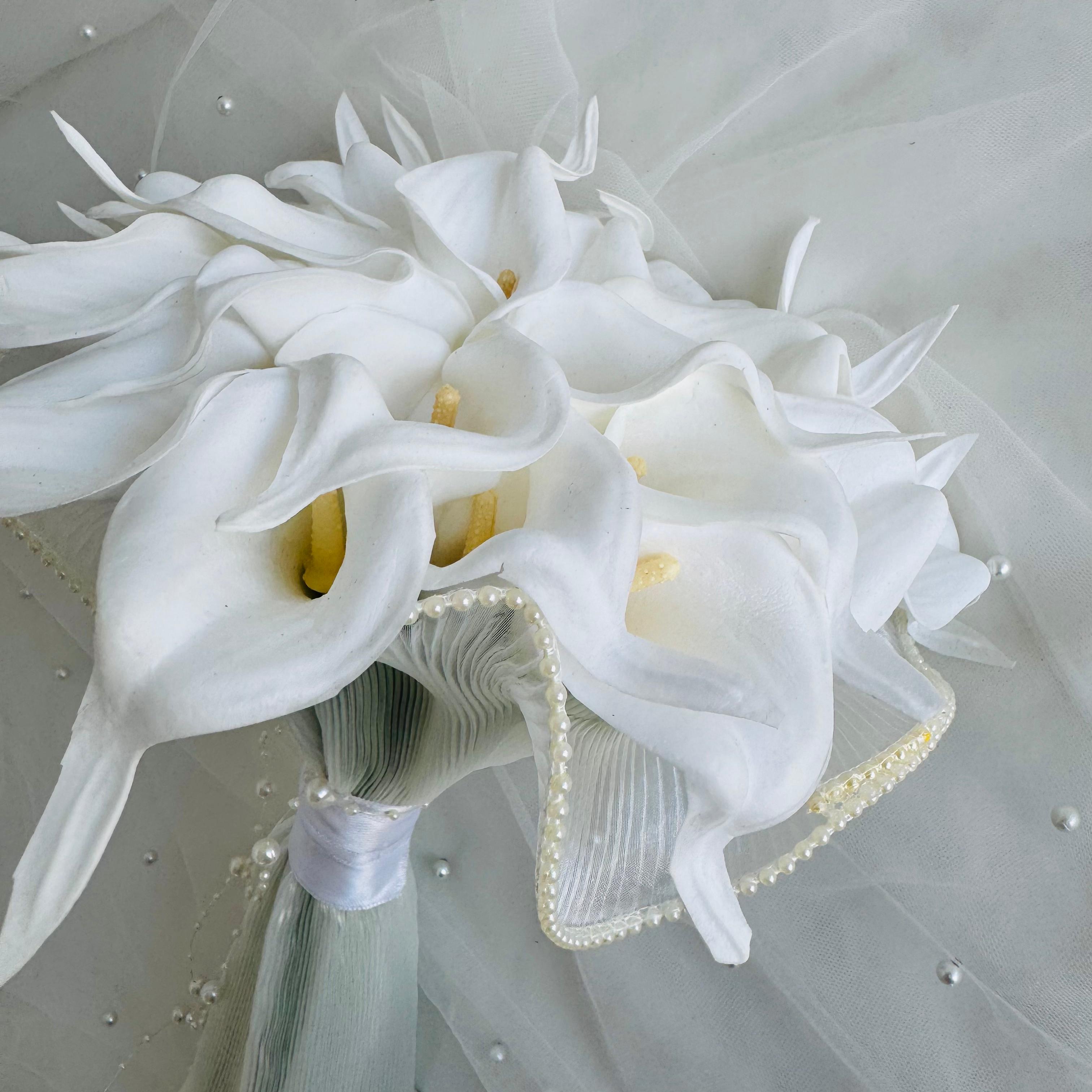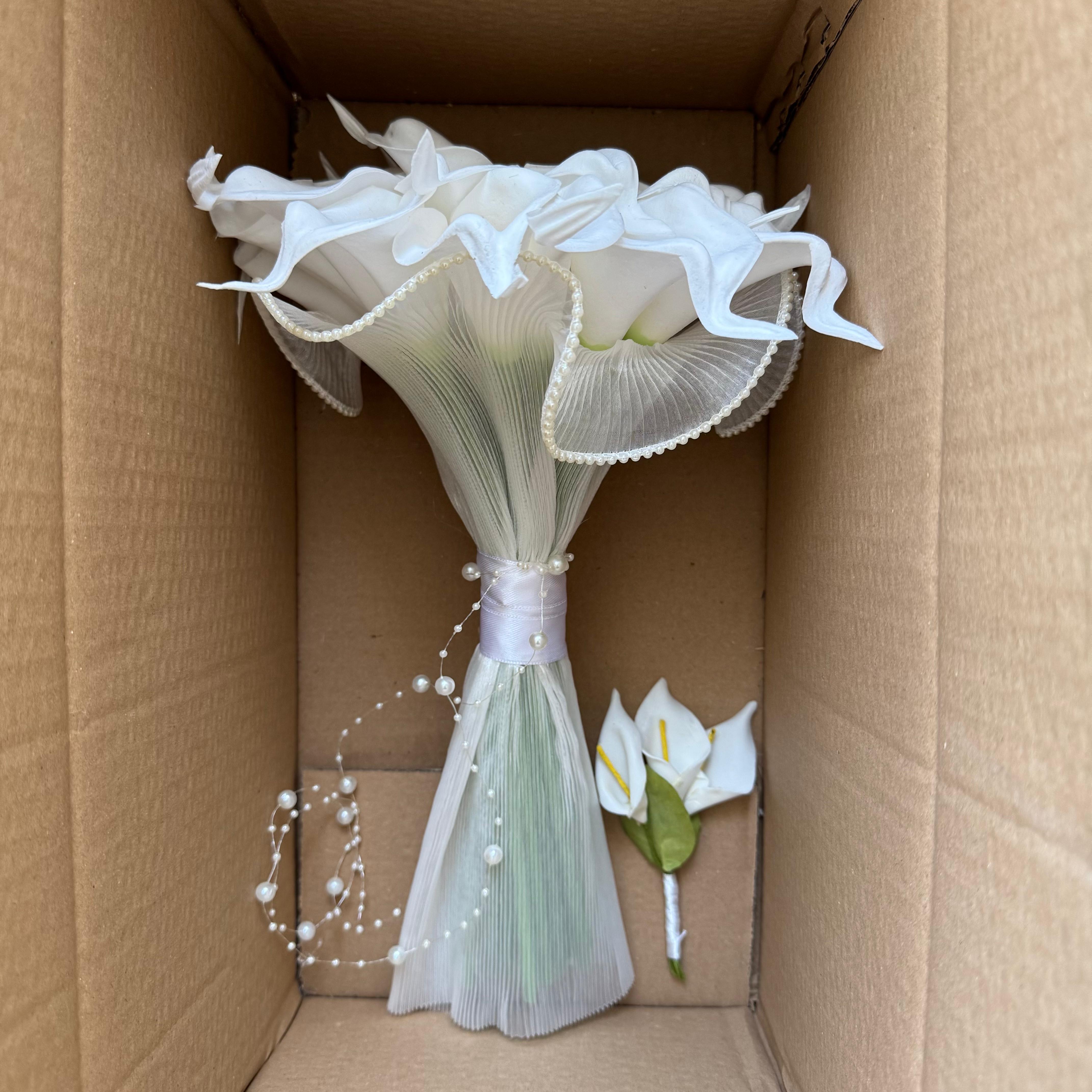 ✨Zarif beyaz galaların tül kaplama ile buluştuğu bu buket, saflığın ve şıklığın en zarif ifadesidir. Özel anlara sade ama etkileyici bir dokunuş katar.💫 24 adet yapay ıslak dokulu galadan oluşuyor. Orta boydur ne büyük ne de küçük. Yaka çiçeği hediyedir. Teslim süresi 15-20 iş günüdür; acil tarihler için not kısmına belirtmeniz yeterlidir. 💌Ürünlerimiz tamamen el yapımıdır; bu nedenle her buket ve süs benzersizdir. Çiçeklerin yerleşimi ve detayları ufak farklılıklar gösterebilir, bu da ürünlerimize özel bir karakter katar. 💐