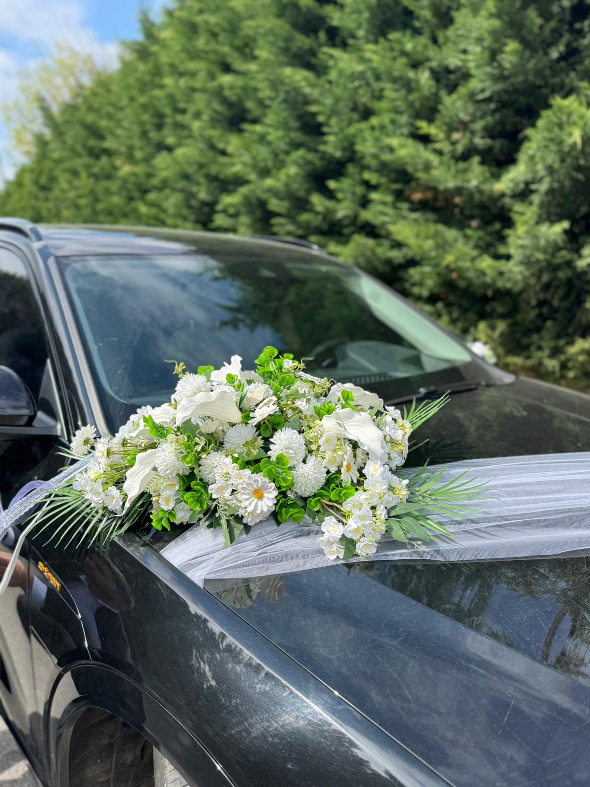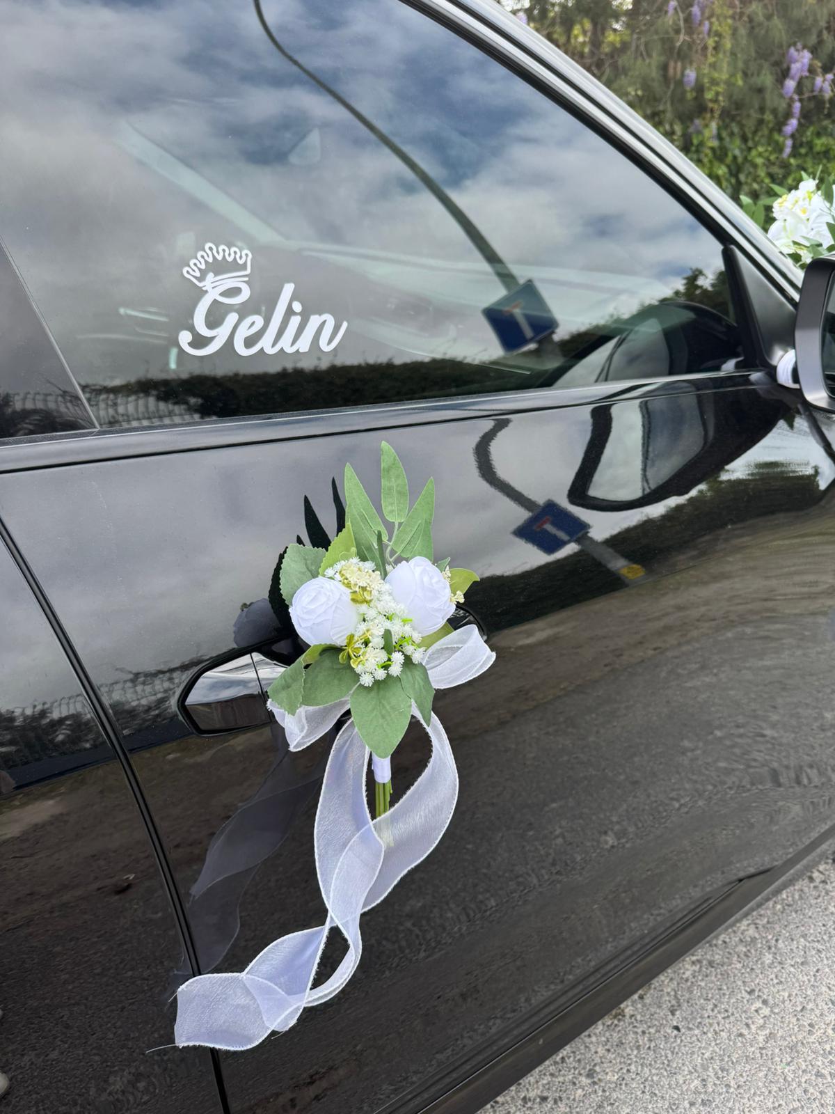 💫Beyazın saflığıyla zarafeti birleştiren bu şık gelin arabası süslemesi, sade ama göz alıcı detaylarıyla özel gününüze romantik bir dokunuş katıyor. Doğal tonlarda hazırlanmış çiçek aranjmanı ve zarif tülleriyle her bakışta şıklığı yansıtıyor.✨ Kuruluma hazır olarak gönderilir; sadece 5 dakikada aracınıza sabitleyebilirsiniz. Set içeriği: ön süs, dört kapı süsüdür. Sticker ise tek kullanımlıktır. Kurdele ile ön kaput altına bağlanarak sabitlenmektedir. Teslim süresi 15-20 iş günüdür; acil tarihler için not kısmına belirtmeniz yeterlidir. Ürünlerimiz tamamen el yapımıdır; bu nedenle her buket ve süs benzersizdir. Çiçeklerin yerleşimi ve detayları ufak farklılıklar gösterebilir, bu da ürünlerimize özel bir karakter katar. 💐
