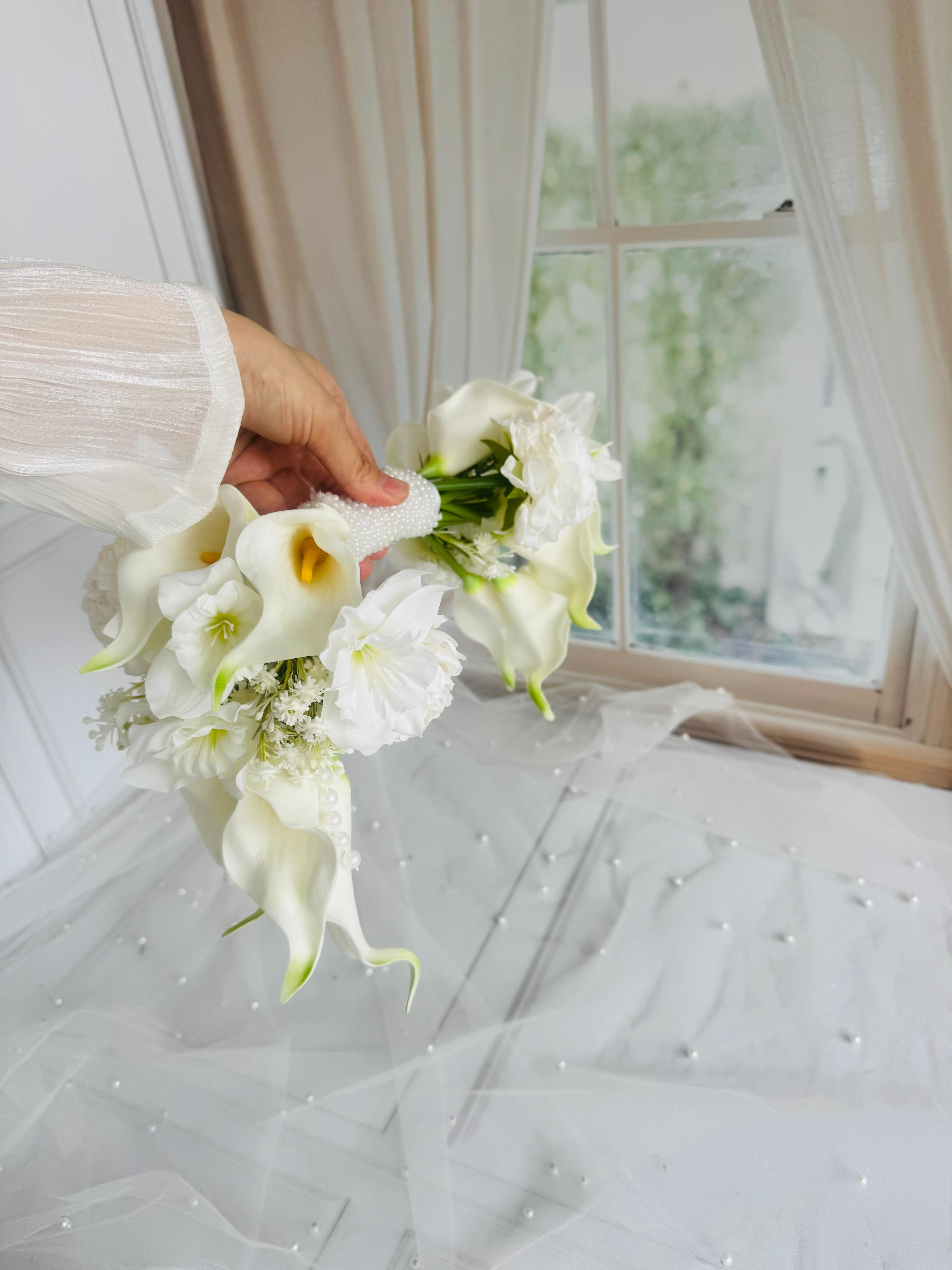 ?Her detayıyla bir sanat eseri… Bu özel tasarım gelin buketi, klasik formların ötesine geçerek modern zarafeti yeniden tanımlıyor. El işçiliğiyle hazırlanmış, gala dokunuşlarıyla zamansız bir şıklık sunar. Sıradan olmayan gelinler için tasarlandı. ? Yaka çiçeği hediyedir. Teslim süremiz 15-20 iş günüdür; acil tarihler için sipariş notuna tarih eklemeniz yeterlidir.? Ürünlerimiz tamamen el yapımıdır; bu nedenle her buket ve süs benzersizdir. Çiçeklerin yerleşimi ve detayları ufak farklılıklar gösterebilir, bu da ürünlerimize özel bir karakter katar. ?