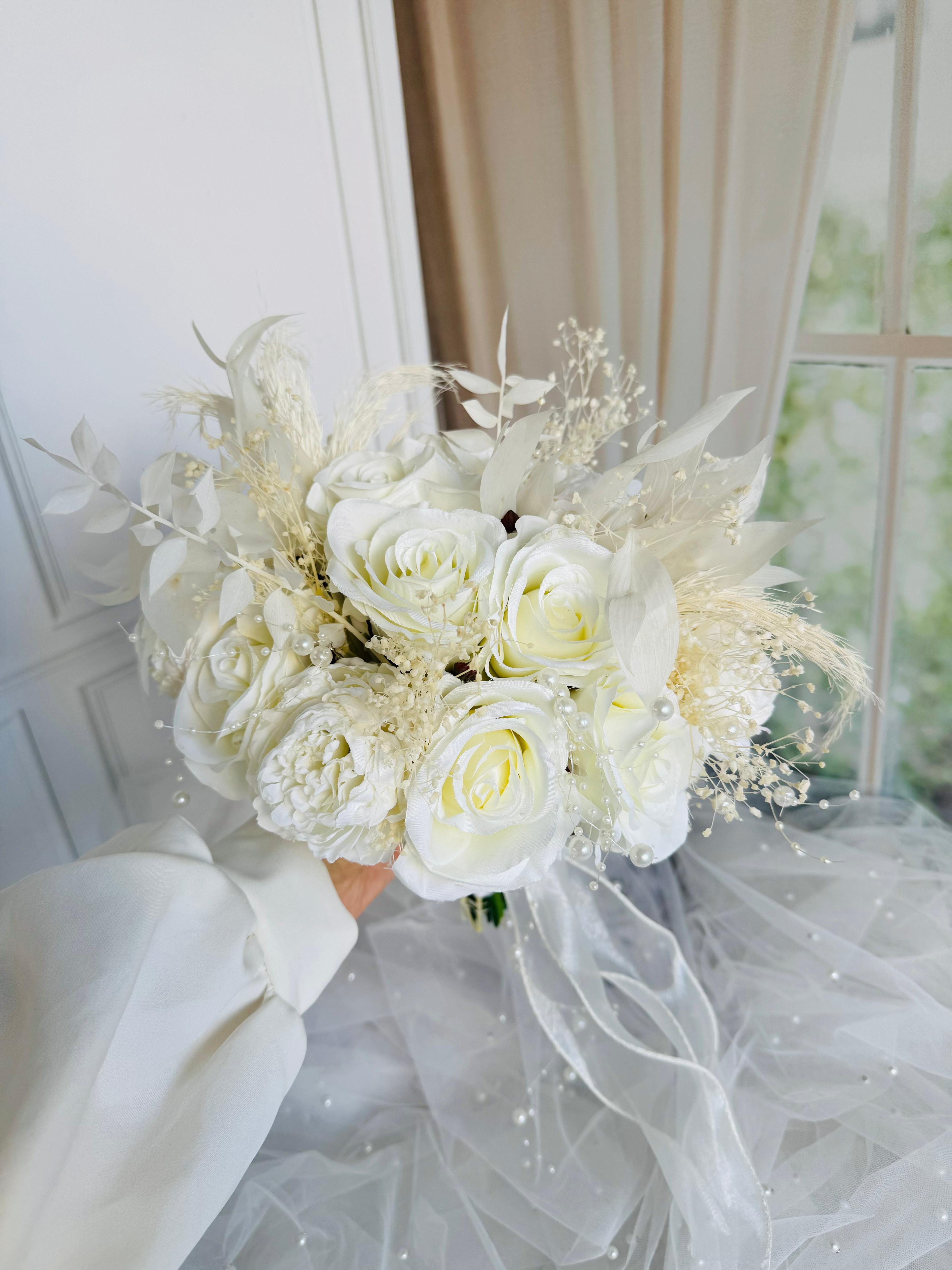 ✨Zarafeti ve asaletiyle öne çıkan bu buket, özel anlara doğal bir şıklık katar. Yumuşak dokusu ve etkileyici duruşuyla sevdiklerinize duygularınızı en saf haliyle iletmenizi sağlar.? Birinci sınıf kalitedeki kumaş ve şoklanmış çiçeklerden oluşuyor, ömürlüktür. Orta boydur ne büyük ne de küçük. Yaka çiçeği hediyedir. Teslim süresi 15-20 iş günüdür; acil tarihler için not kısmına belirtmeniz yeterlidir. ?Ürünlerimiz tamamen el yapımıdır; bu nedenle her buket ve süs benzersizdir. Çiçeklerin yerleşimi ve detayları ufak farklılıklar gösterebilir, bu da ürünlerimize özel bir karakter katar. ?