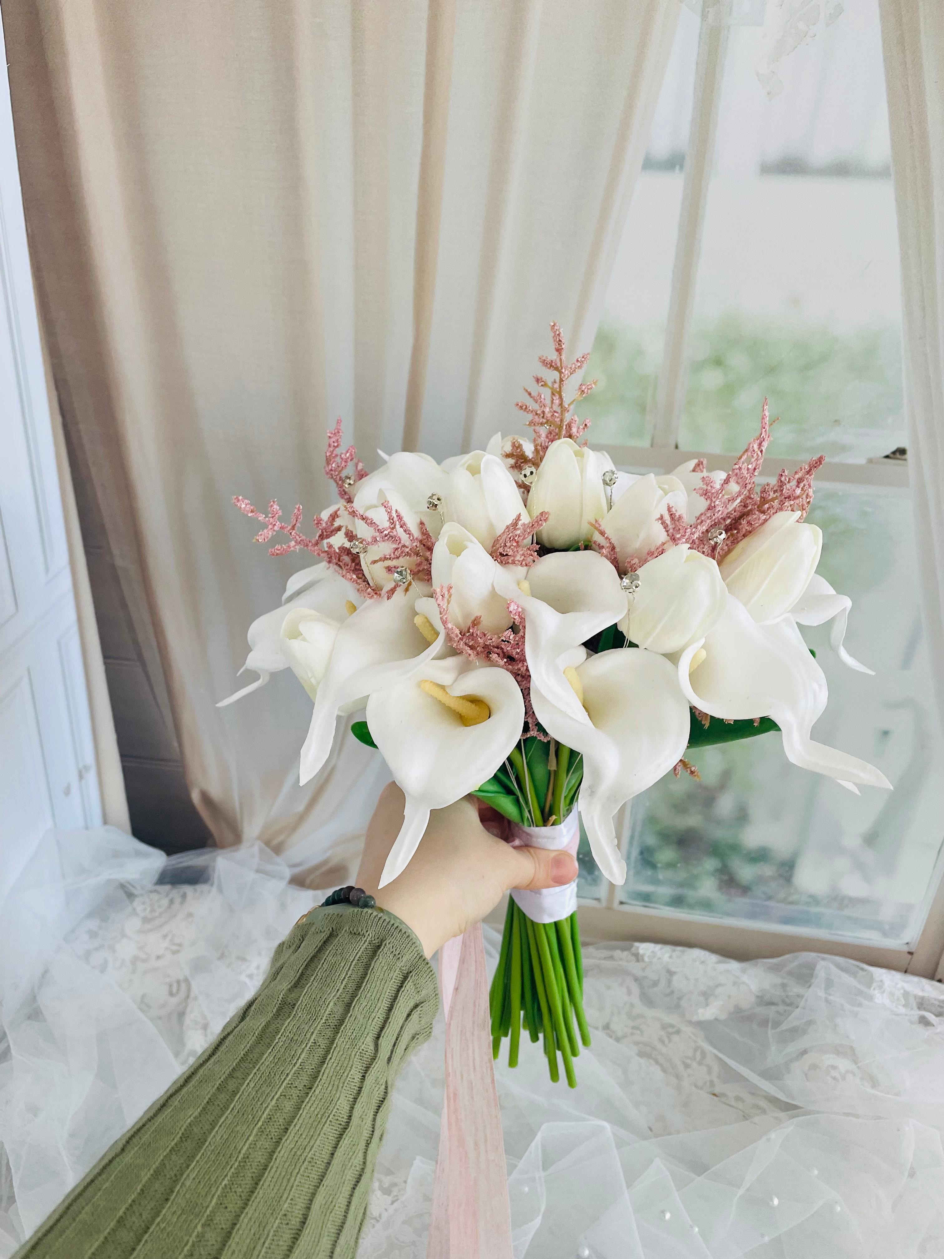 ?Sadelikten gelen ihtişamı taşıyan bu tasarım, her gelinin hayalini yansıtır. Orta boydur ne büyük ne de küçük. Yaka çiçeği hediyedir .? Teslim süresi 15-20 iş günüdür; acil tarihler için not kısmına belirtmeniz yeterlidir. Ürünlerimiz tamamen el yapımıdır; bu nedenle her buket ve süs benzersizdir. Çiçeklerin yerleşimi ve detayları ufak farklılıklar gösterebilir, bu da ürünlerimize özel bir karakter katar. ?