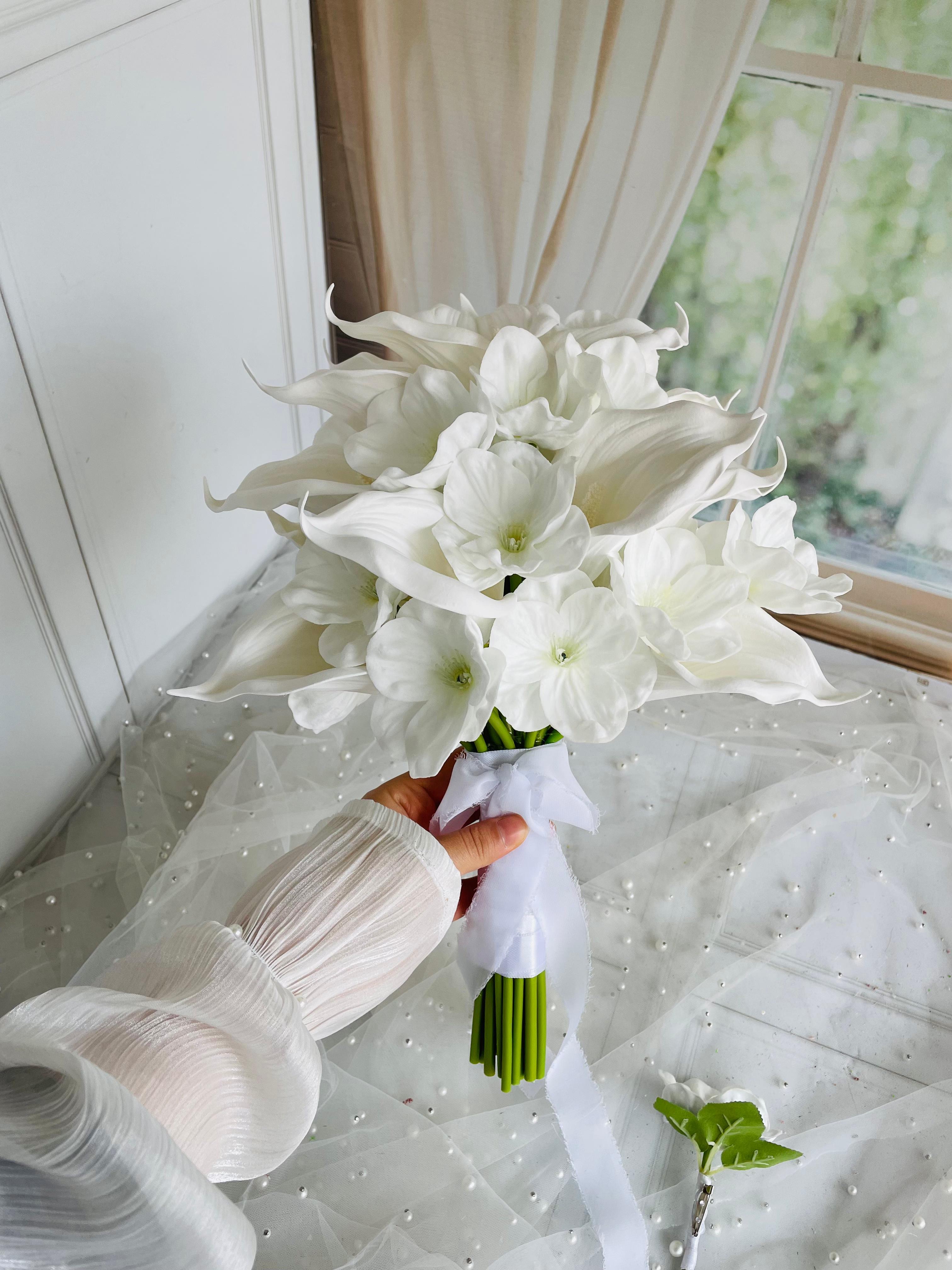 ?Sadelikten gelen ihtişamı taşıyan bu tasarım, her gelinin hayalini yansıtır. Birinci sınıf kalitedeki birebir canlı görünümündeki çiçeklerden oluşmaktadır. Orta boydur ne büyük ne de küçük. Yaka çiçeği hediyedir .? Teslim süresi 15-20 iş günüdür; acil tarihler için not kısmına belirtmeniz yeterlidir. Ürünlerimiz tamamen el yapımıdır; bu nedenle her buket ve süs benzersizdir. Çiçeklerin yerleşimi ve detayları ufak farklılıklar gösterebilir, bu da ürünlerimize özel bir karakter katar. ?