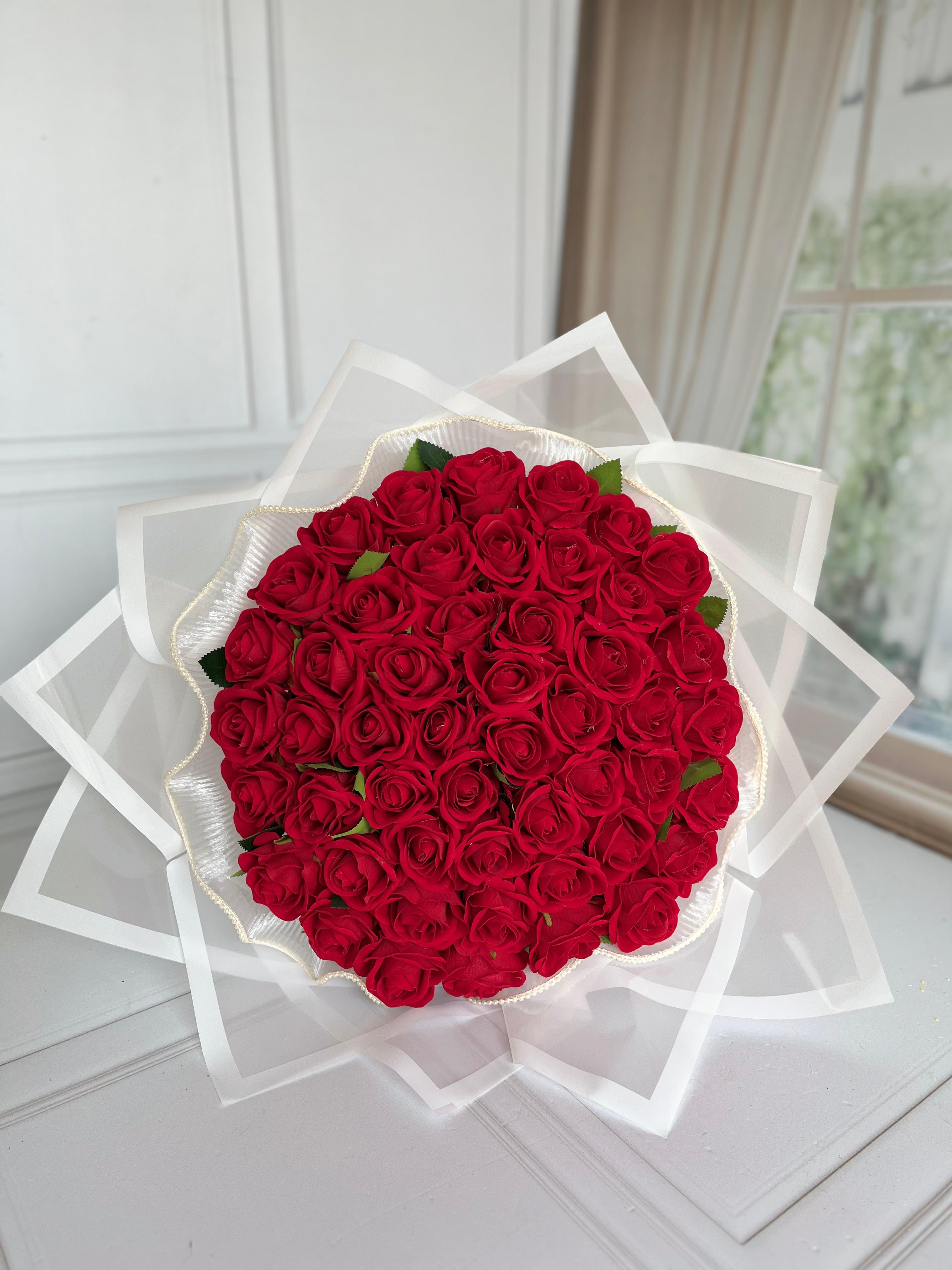 ❤️Kırmızının büyüsü ,aşkın en zarif haliyle buluştu. Her detayıyla özel, her bakışıyla unutulmaz. 41 adet yapay kadife gülden oluşmaktadır. Teslim süresi 15-20 iş günüdür; acil tarihler için not kısmına belirtmeniz yeterlidir. ? ?Ürünlerimiz tamamen el yapımıdır; bu nedenle her buket ve süs benzersizdir. Çiçeklerin yerleşimi ve detayları ufak farklılıklar gösterebilir, bu da ürünlerimize özel bir karakter katar. ?