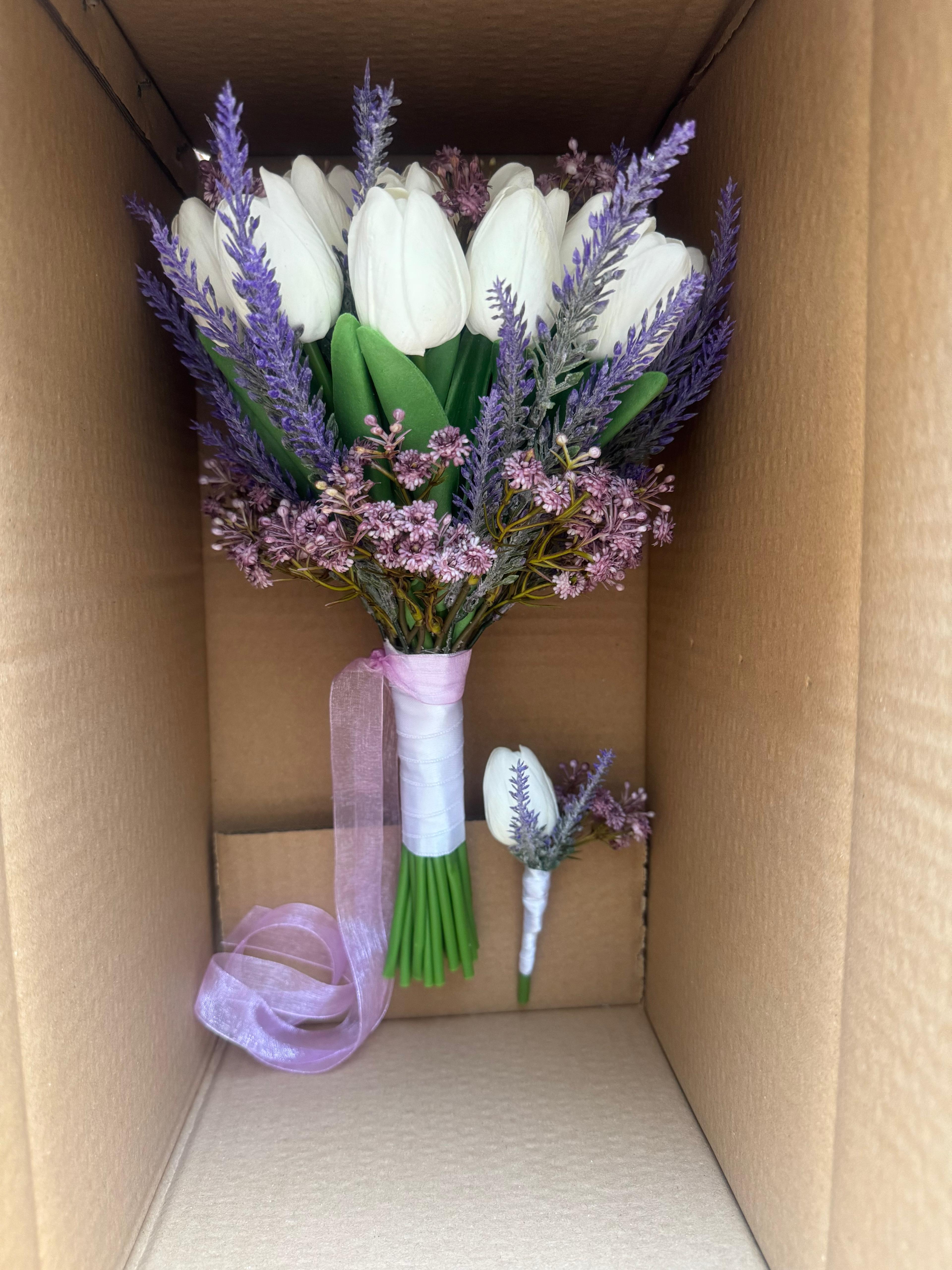 ?Sadelikten gelen ihtişamı taşıyan bu tasarım, her gelinin hayalini yansıtır. 24 adet ıslak laleden oluşmaktadır. Orta boydur ne büyük ne de küçük. Yaka çiçeği hediyedir .? Teslim süresi 15-20 iş günüdür; acil tarihler için not kısmına belirtmeniz yeterlidir. Ürünlerimiz tamamen el yapımıdır; bu nedenle her buket ve süs benzersizdir. Çiçeklerin yerleşimi ve detayları ufak farklılıklar gösterebilir, bu da ürünlerimize özel bir karakter katar. ?