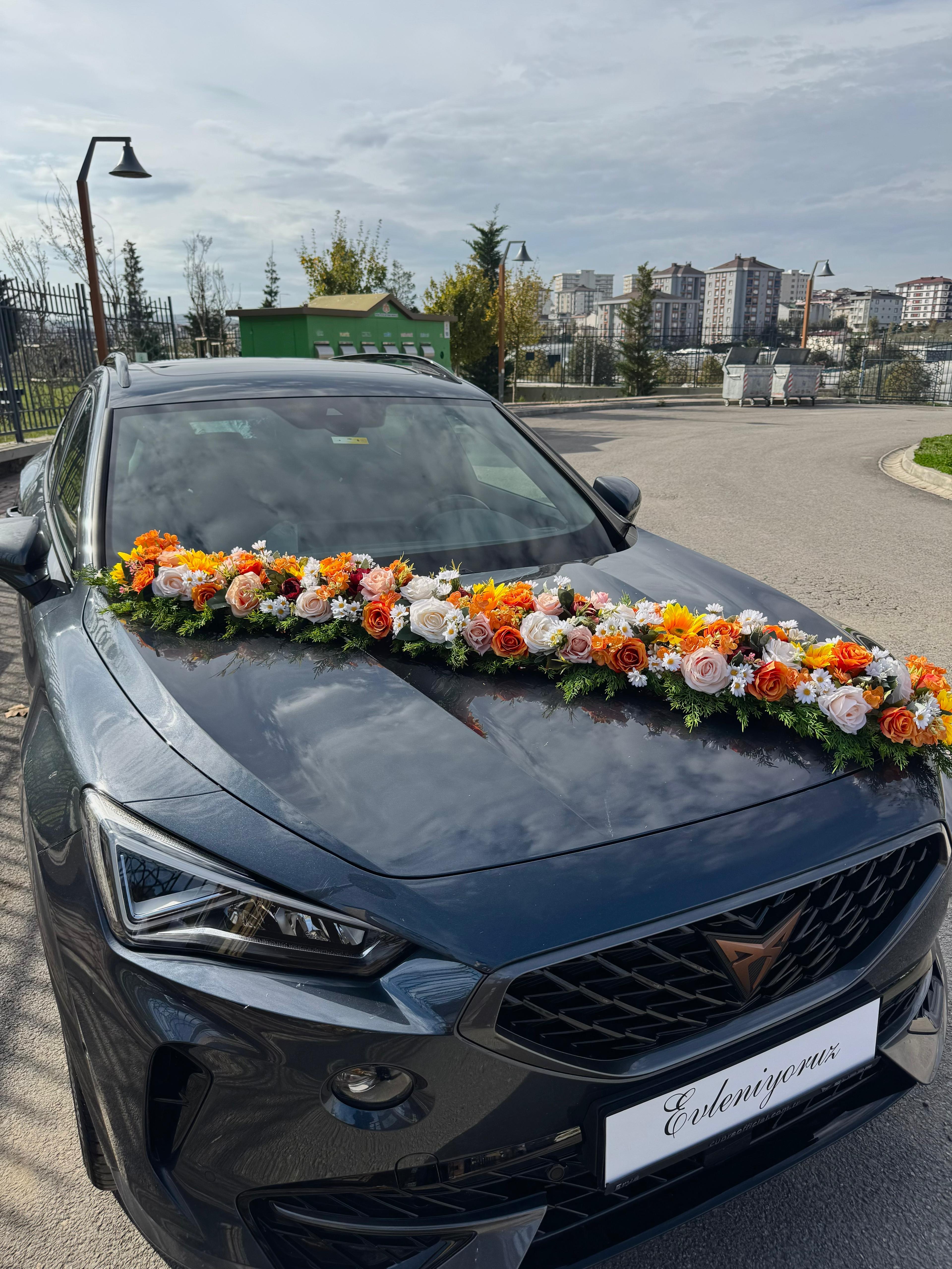?Özel gününüzü zarafetiyle göz kamaştıran bu tasarımla taçlandırın. Kuruluma hazır olarak gönderilir; sadece 5 dakikada aracınıza sabitleyebilirsiniz. Set içeriği: ön süs, dört kapı süsüdür. Sticker ise tek kullanımlıktır. Kurdele ile ön kaput altına bağlanarak sabitlenmektedir. İki yönlü kullanımı mevcuttur. Teslim süresi 15-20 iş günüdür; acil tarihler için not kısmına belirtmeniz yeterlidir. Ürünlerimiz tamamen el yapımıdır; bu nedenle her buket ve süs benzersizdir. Çiçeklerin yerleşimi ve detayları ufak farklılıklar gösterebilir, bu da ürünlerimize özel bir karakter katar. ?
