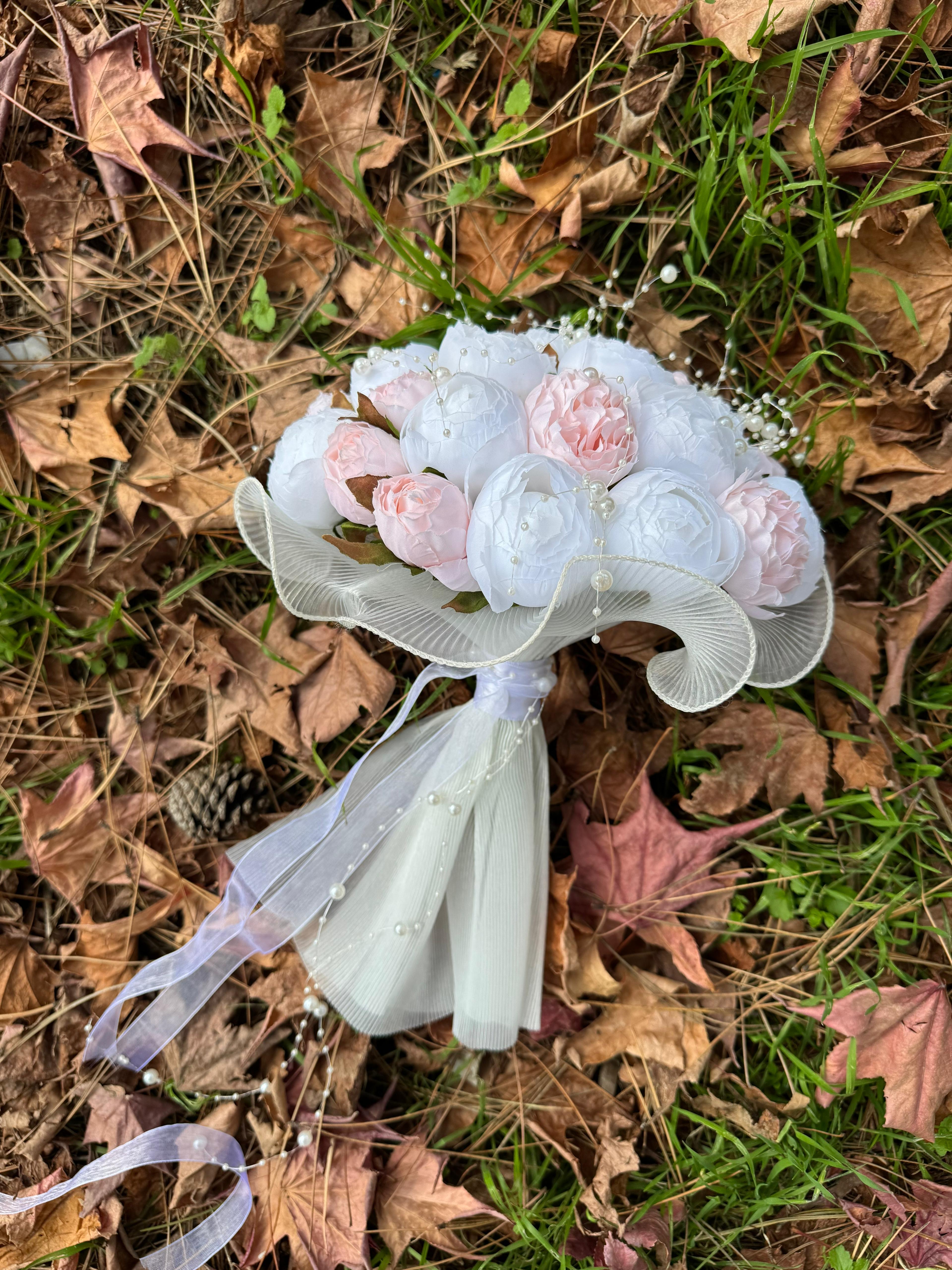 ✨Zarif ve şık tasarımıyla her gelinliğe uyum sağlar. Birinci sınıf kalitedeki kumaş ve yapay çiçeklerden oluşmaktadır, ömürlüktür. Orta boydur ne büyük ne de küçük. Yaka çiçeği hediyedir. Teslim süresi 15-20 iş günüdür; acil tarihler için not kısmına belirtmeniz yeterlidir. ?Ürünlerimiz tamamen el yapımıdır; bu nedenle her buket ve süs benzersizdir. Çiçeklerin yerleşimi ve detayları ufak farklılıklar gösterebilir, bu da ürünlerimize özel bir karakter katar. ?