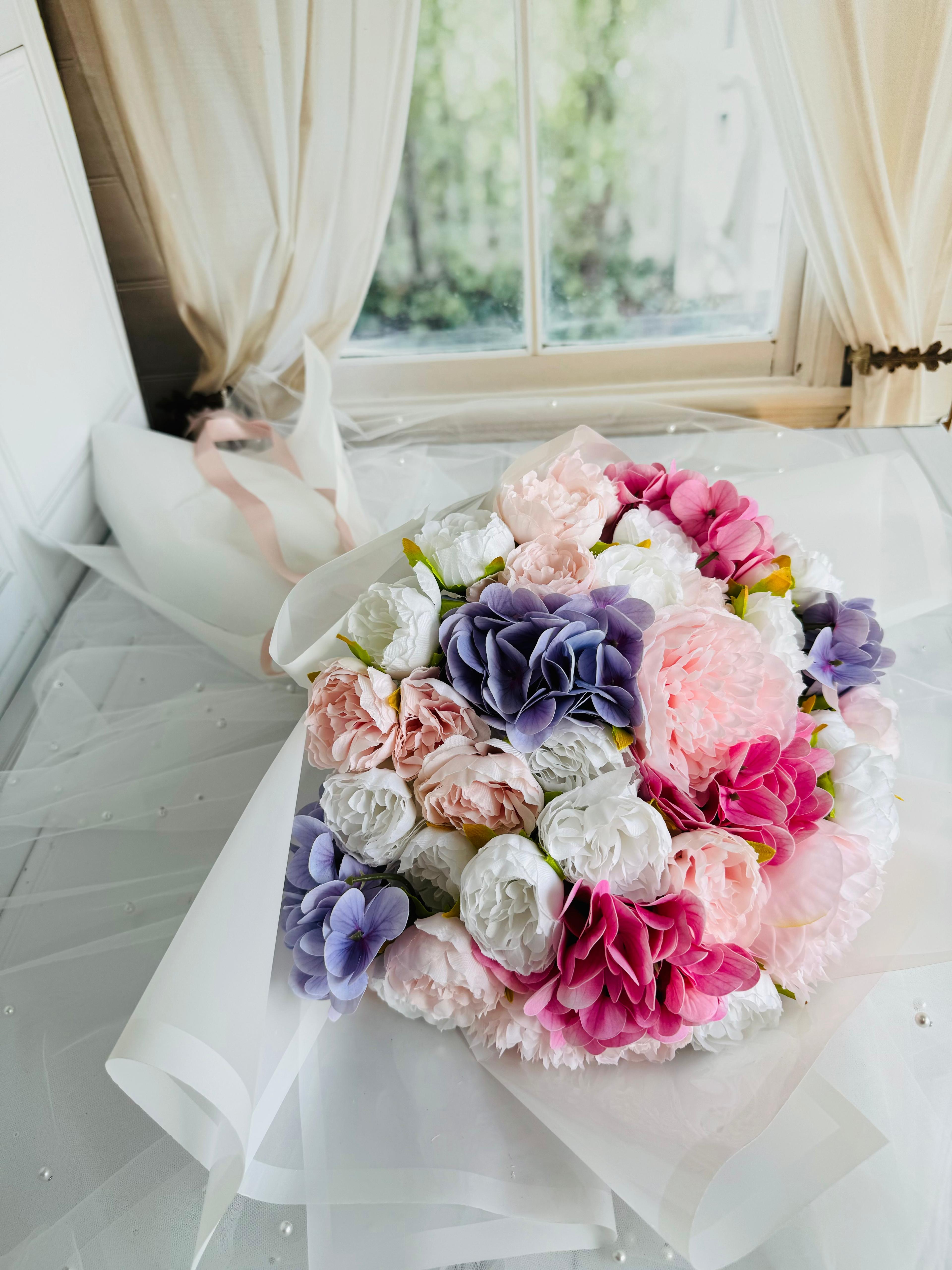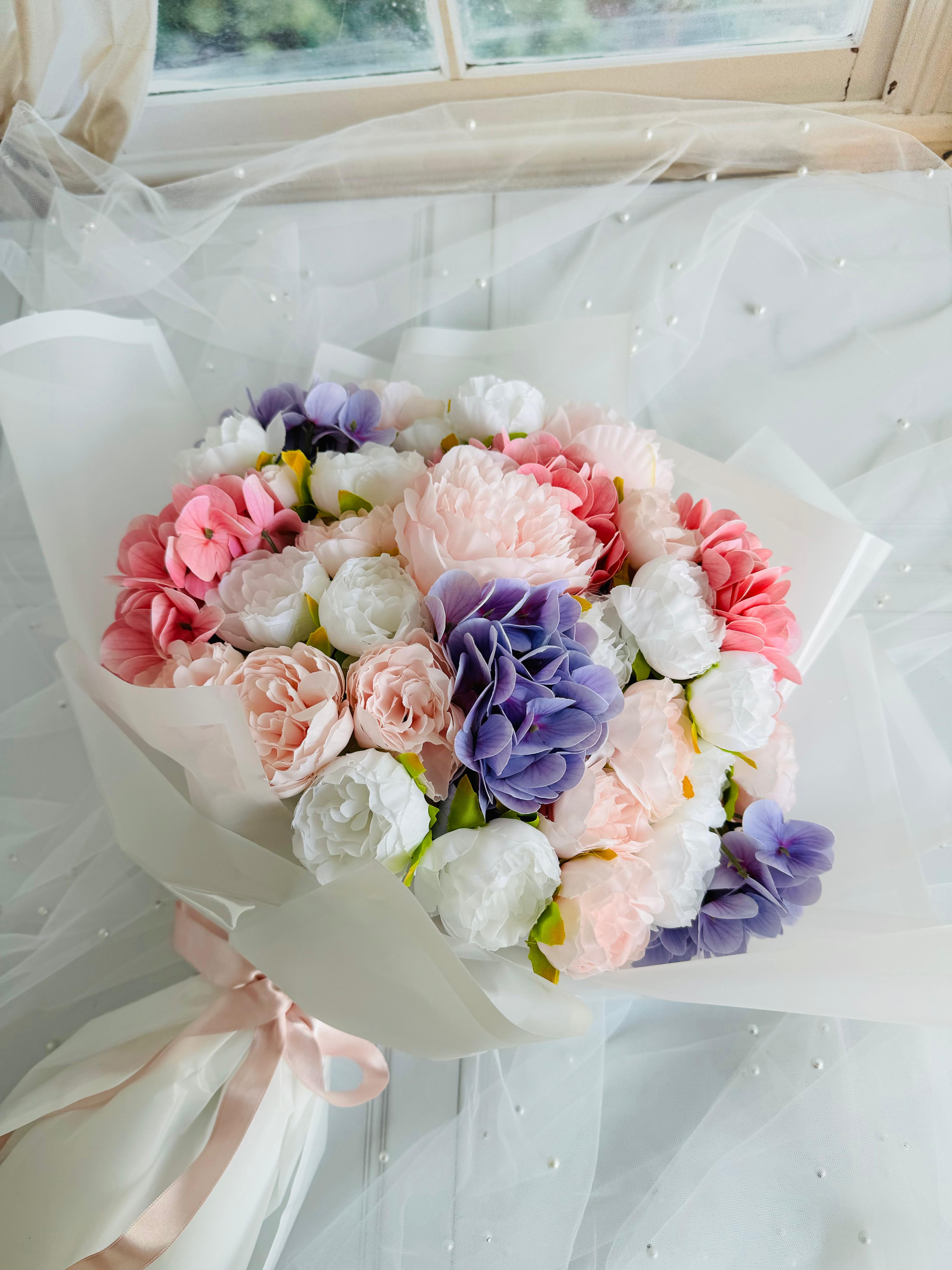Zarafetin ve romantizmin buluştuğu özel tasarım ? Pastel tonlarıyla her anı masalsı bir zarafete dönüştürür. ? Büyük boydur . Islak dokulu ortanca ve kumaş şakayıktan oluşmaktadır. Teslim süresi 15-20 iş günüdür; acil tarihler için not kısmına belirtmeniz yeterlidir. ?Ürünlerimiz tamamen el yapımıdır; bu nedenle her buket ve süs benzersizdir. Çiçeklerin yerleşimi ve detayları ufak farklılıklar gösterebilir, bu da ürünlerimize özel bir karakter katar. ?