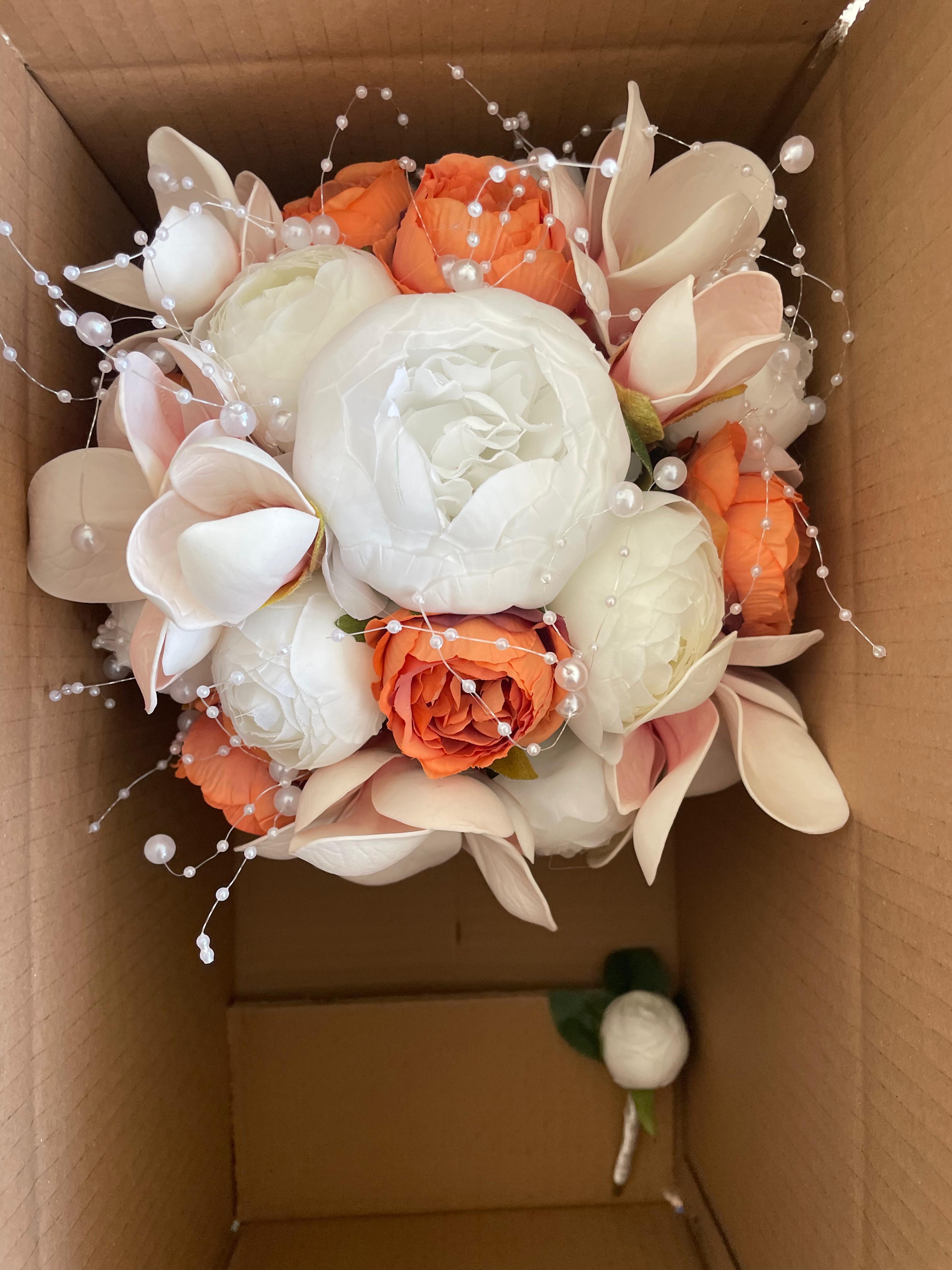 ✨Turuncu şakayığın sıcak tonu, soft manolya ve beyaz şakayıkların zarafetiyle birleşerek modern ve romantik bir görünüm oluşturur . Düğün veya nişan için uygundur. Birinci sınıf kalitedeki kumaş ve yapay çiçeklerden oluşmaktadır, ömürlüktür. Orta boydur ne büyük ne de küçük. Yaka çiçeği hediyedir. Teslim süresi 15-20 iş günüdür; acil tarihler için not kısmına belirtmeniz yeterlidir. ?Ürünlerimiz tamamen el yapımıdır; bu nedenle her buket ve süs benzersizdir. Çiçeklerin yerleşimi ve detayları ufak farklılıklar gösterebilir, bu da ürünlerimize özel bir karakter katar. ?