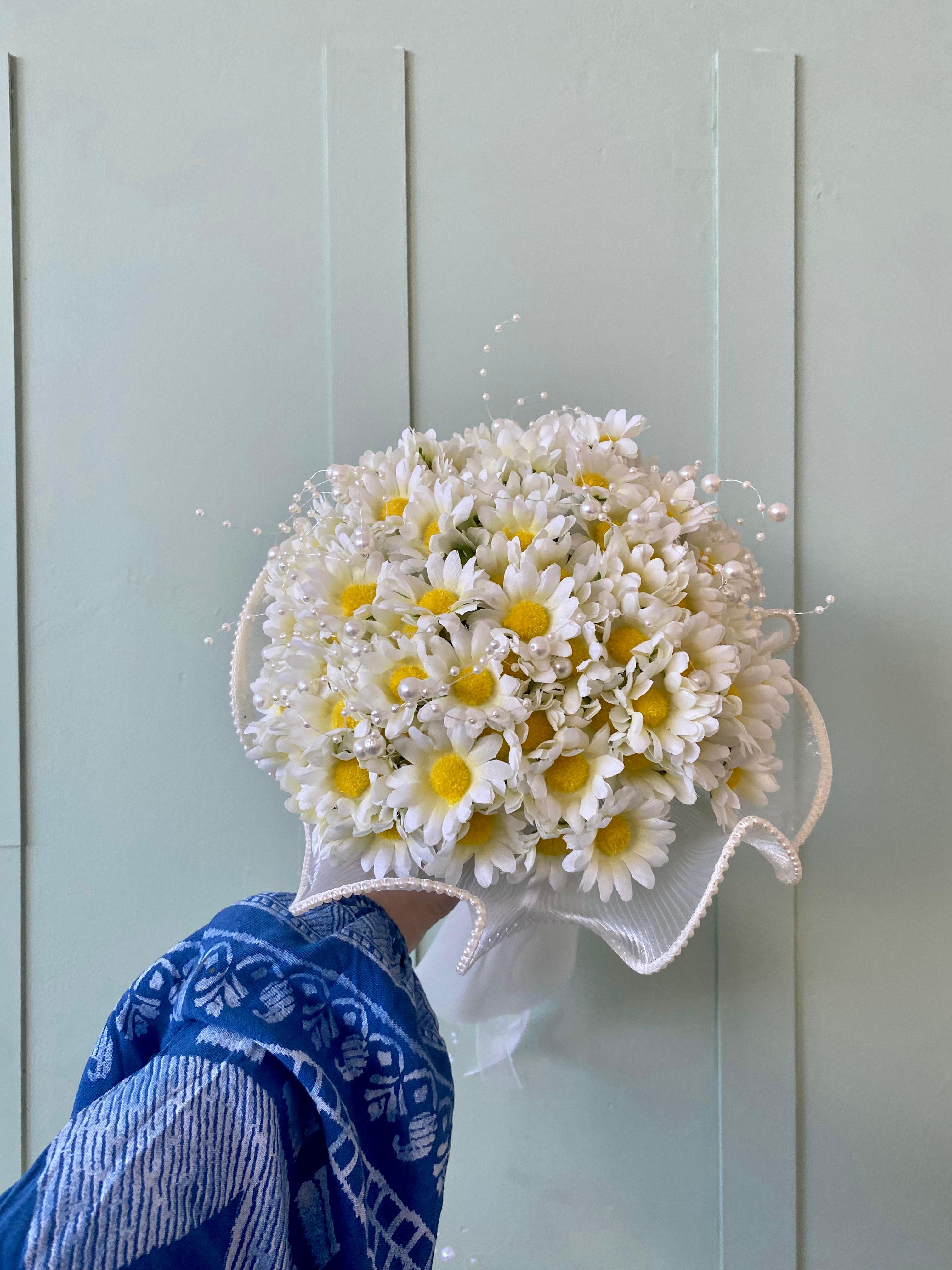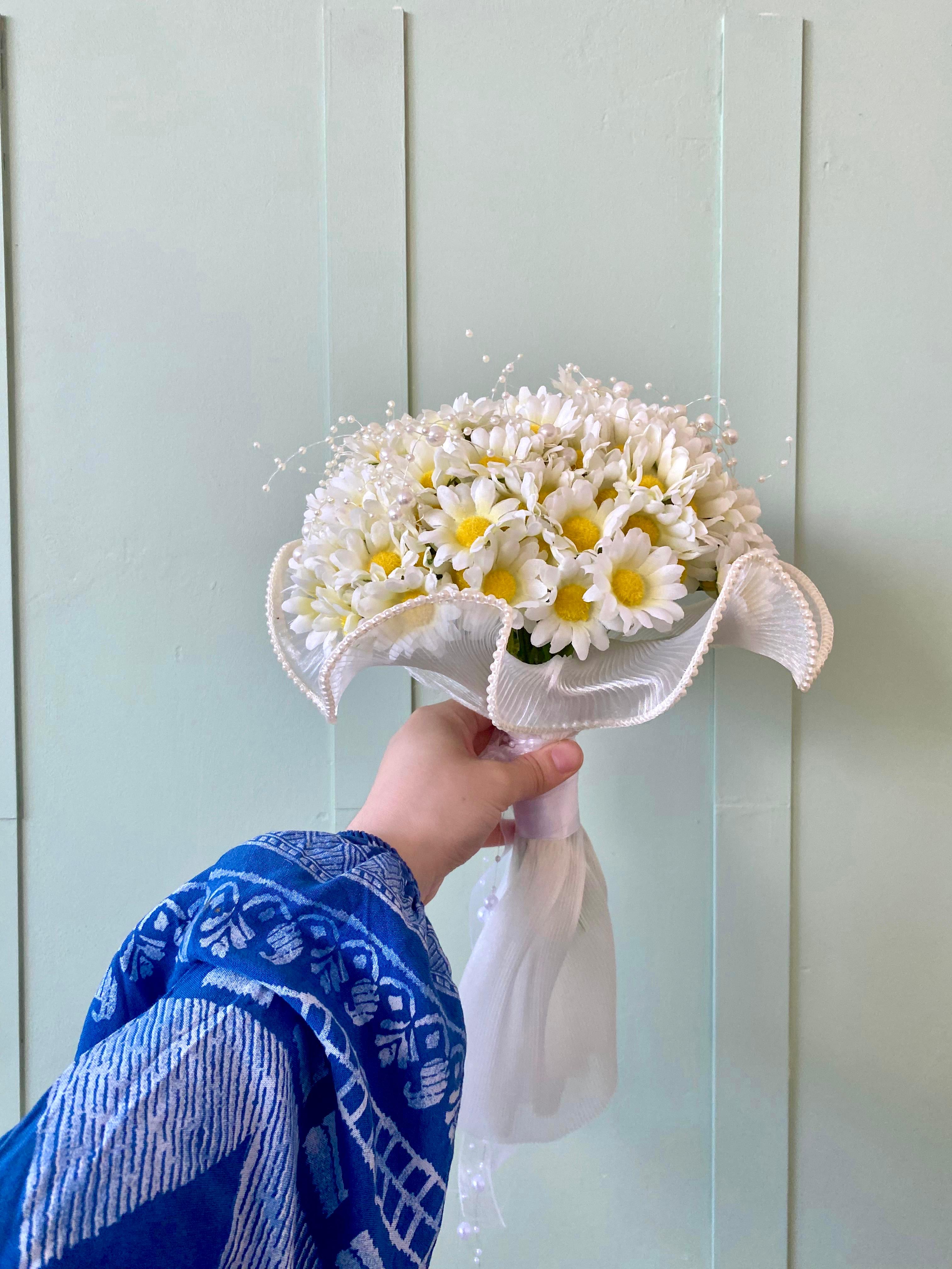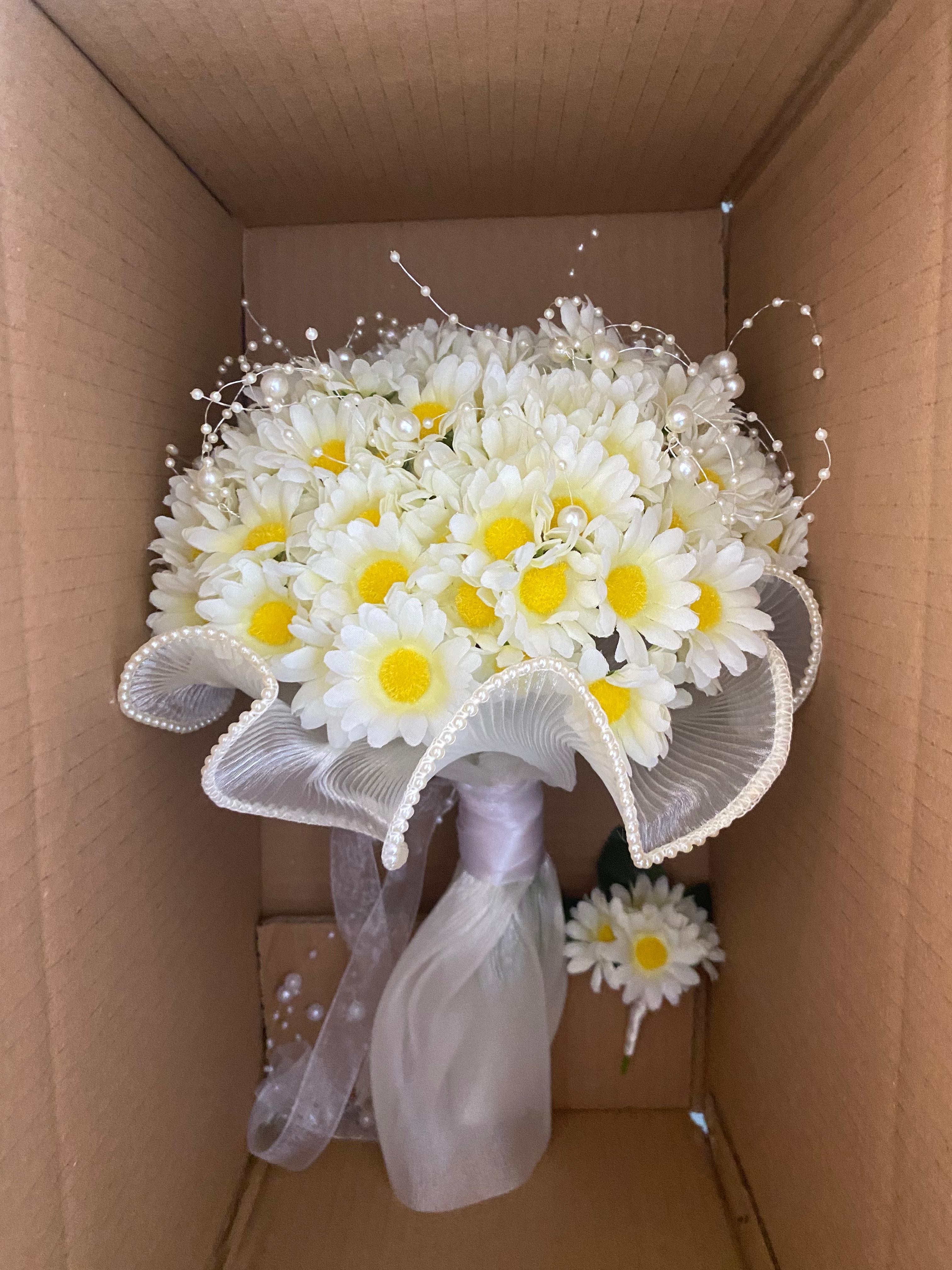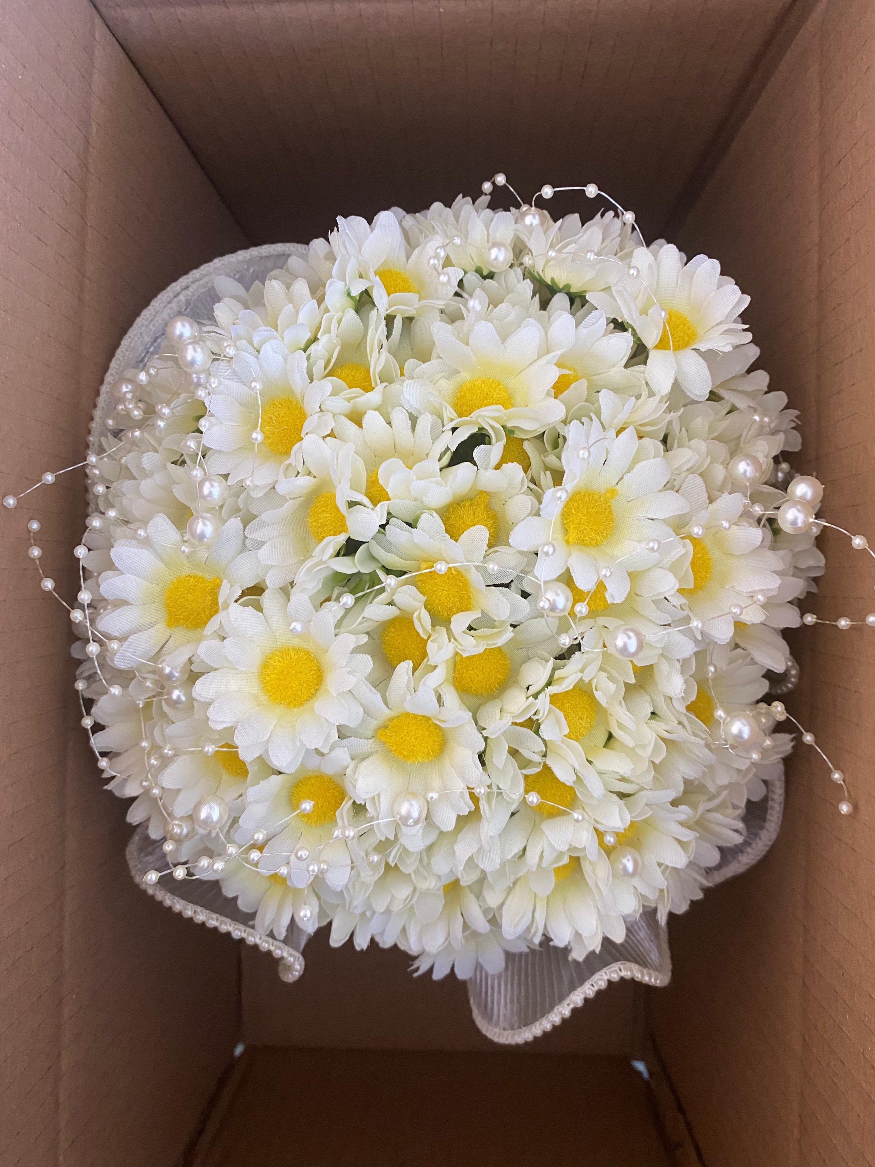 ?Bembeyaz papatyaların nahif güzelliği ile hazırlanan bu buket, masumiyetin ve içtenliğin en zarif ifadesi.. her bakışta huzur veren kalbe dokunan bir tasarım. Orta boydur ne büyük ne de küçük . Yaka çiçeği hediyedir. Teslim süresi 15-20 iş günüdür; acil tarihler için not kısmına belirtmeniz yeterlidir.? Ürünlerimiz tamamen el yapımıdır; bu nedenle her buket ve süs benzersizdir. Çiçeklerin yerleşimi ve detayları ufak farklılıklar gösterebilir, bu da ürünlerimize özel bir karakter katar. ?