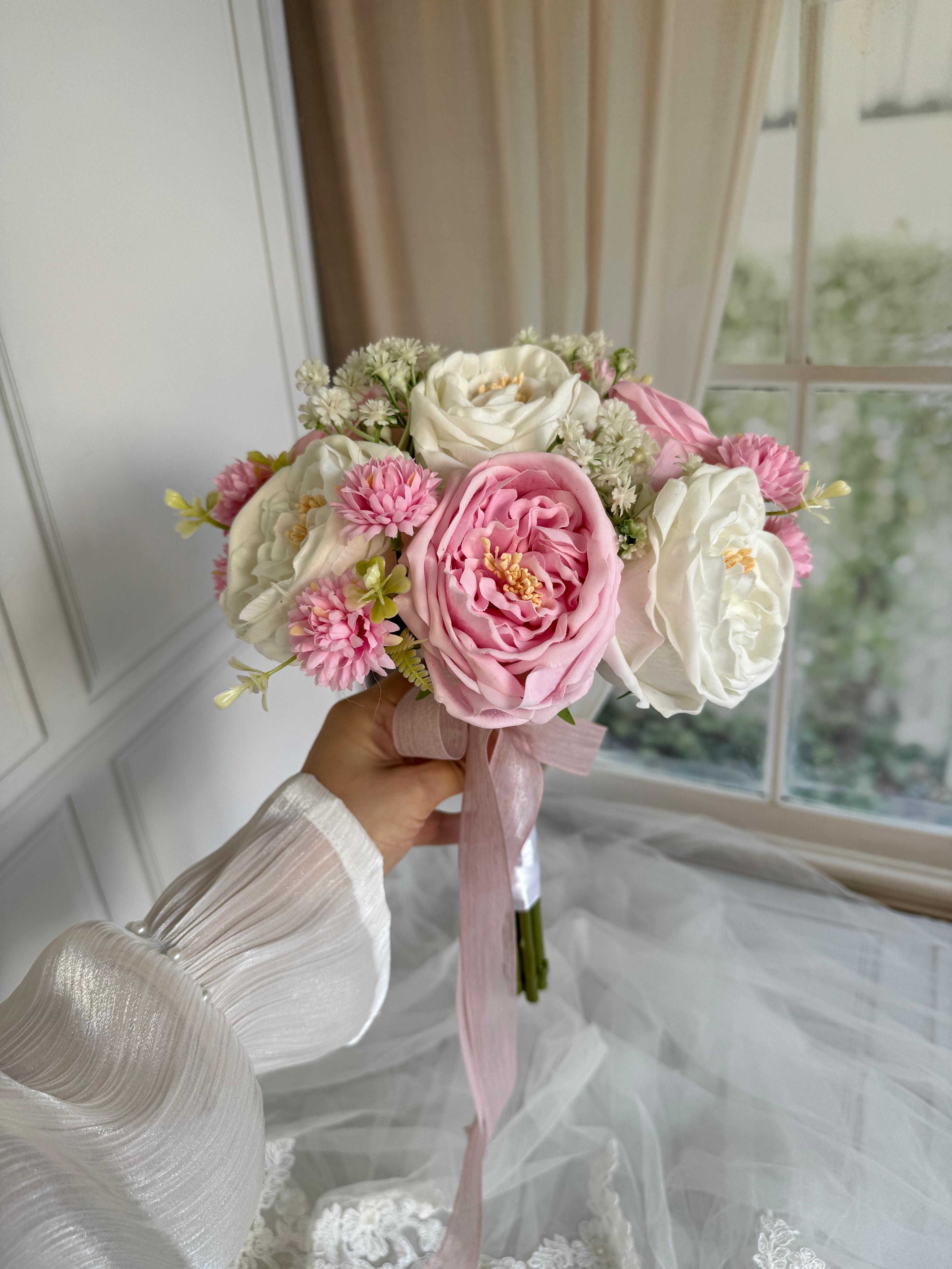 Pastel tonda şakayık çiçeğinin zarif uyumuyla hazırlanmış bu buket, özel günlerinize sıcaklık ve zarafet katar.? Düğün veya nişan için uygundur. Islak dokulu şakayıklardan oluşmaktadır , ömürlüktür. Orta boydur ne büyük ne de küçük. Yaka çiçeği hediyedir. Teslim süresi 15-20 iş günüdür; acil tarihler için not kısmına belirtmeniz yeterlidir. ?Ürünlerimiz tamamen el yapımıdır; bu nedenle her buket ve süs benzersizdir. Çiçeklerin yerleşimi ve detayları ufak farklılıklar gösterebilir, bu da ürünlerimize özel bir karakter katar. ?