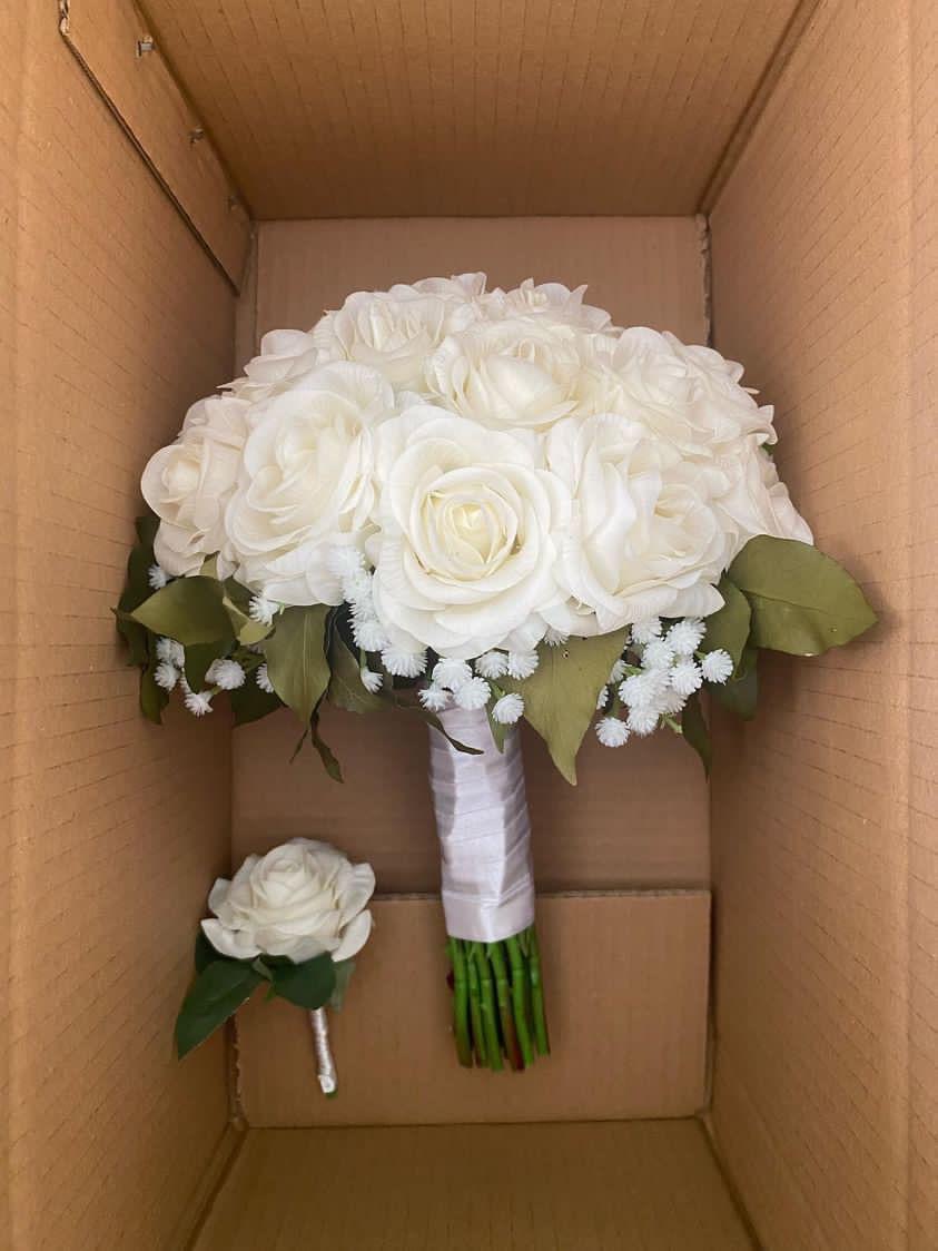✨Zarif ve şık tasarımıyla her gelinliğe uyum sağlar. Birinci sınıf kalitedeki yapay ıslak dokulu güllerden oluşmaktadır. Orta boydur ne büyük ne de küçük. Yaka çiçeği hediyedir. Teslim süresi 15-20 iş günüdür; acil tarihler için not kısmına belirtmeniz yeterlidir. ?Ürünlerimiz tamamen el yapımıdır; bu nedenle her buket ve süs benzersizdir. Çiçeklerin yerleşimi ve detayları ufak farklılıklar gösterebilir, bu da ürünlerimize özel bir karakter katar. ?