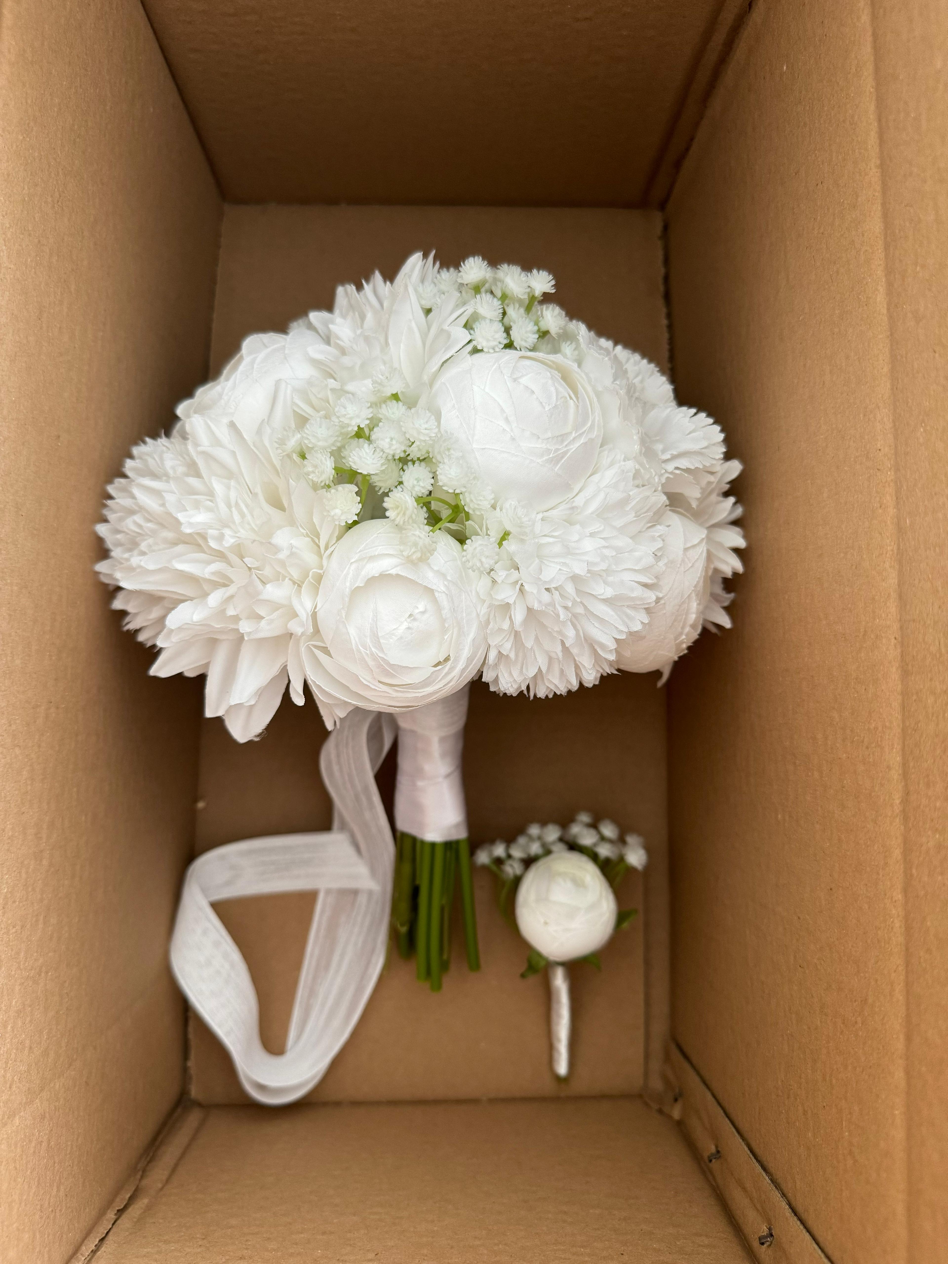 ?Gerçek çiçek görünümündeki birinci sınıf kumaş çiçekler ile hazırlanmıştır. Nişan ve düğün için uygundur . Orta boydur ne büyük ne de küçük . Yaka çiçeği hediyedir. Teslim süresi 15-20 iş günüdür; acil tarihler için not kısmına belirtmeniz yeterlidir.? ?Ürünlerimiz tamamen el yapımıdır; bu nedenle her buket ve süs benzersizdir. Çiçeklerin yerleşimi ve detayları ufak farklılıklar gösterebilir, bu da ürünlerimize özel bir karakter katar. ?