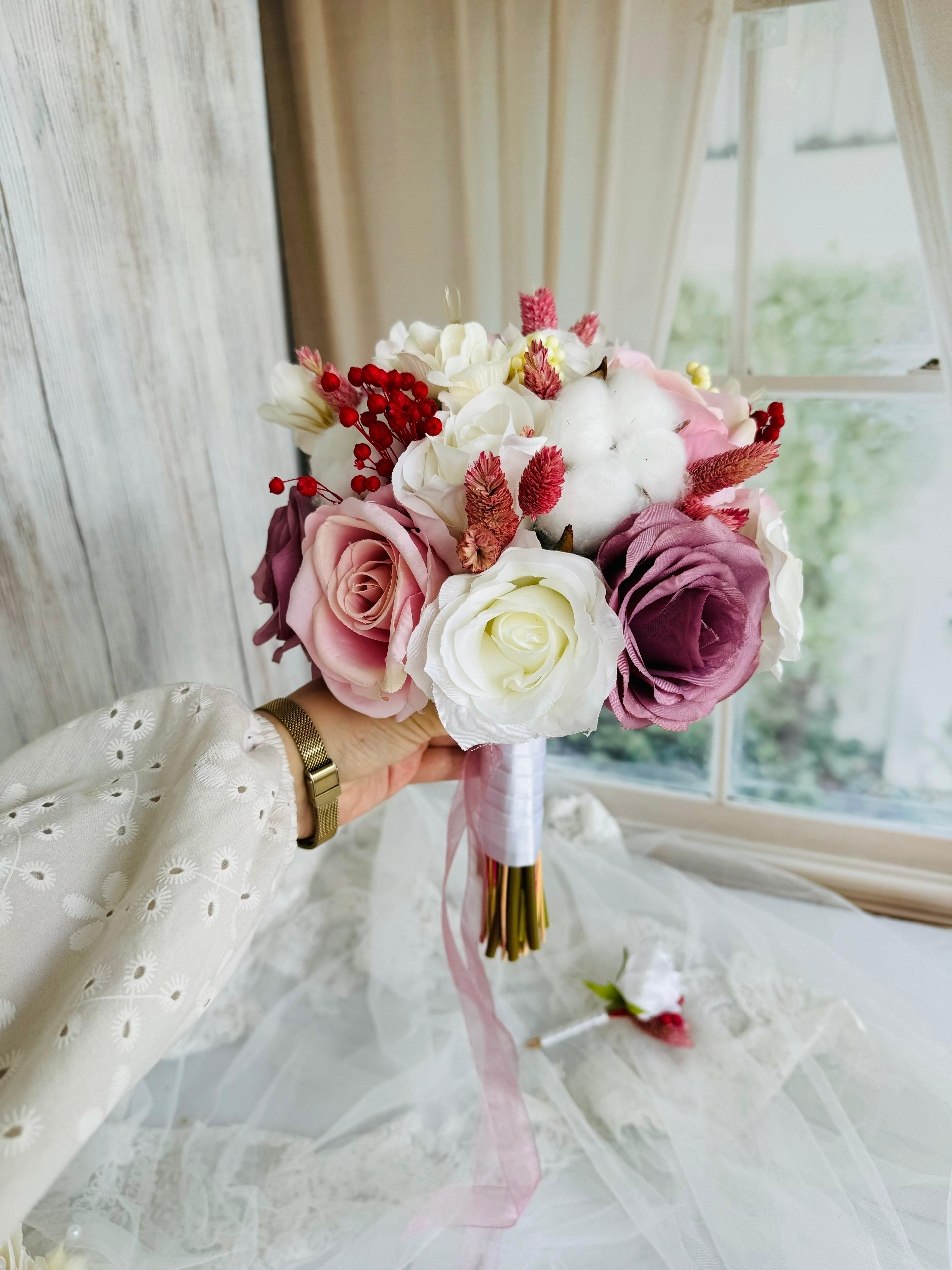 ✨Zarafeti ve asaletiyle öne çıkan şakayıklarla hazırlanan bu buket, özel anlara doğal bir şıklık katar. Yumuşak dokusu ve etkileyici duruşuyla sevdiklerinize duygularınızı en saf haliyle iletmenizi sağlar.? Birinci sınıf kalitedeki kumaş yapay çiçeklerden oluşuyor, ömürlüktür. Orta boydur ne büyük ne de küçük. Yaka çiçeği hediyedir. Teslim süresi 15-20 iş günüdür; acil tarihler için not kısmına belirtmeniz yeterlidir. ?Ürünlerimiz tamamen el yapımıdır; bu nedenle her buket ve süs benzersizdir. Çiçeklerin yerleşimi ve detayları ufak farklılıklar gösterebilir, bu da ürünlerimize özel bir karakter katar. ?