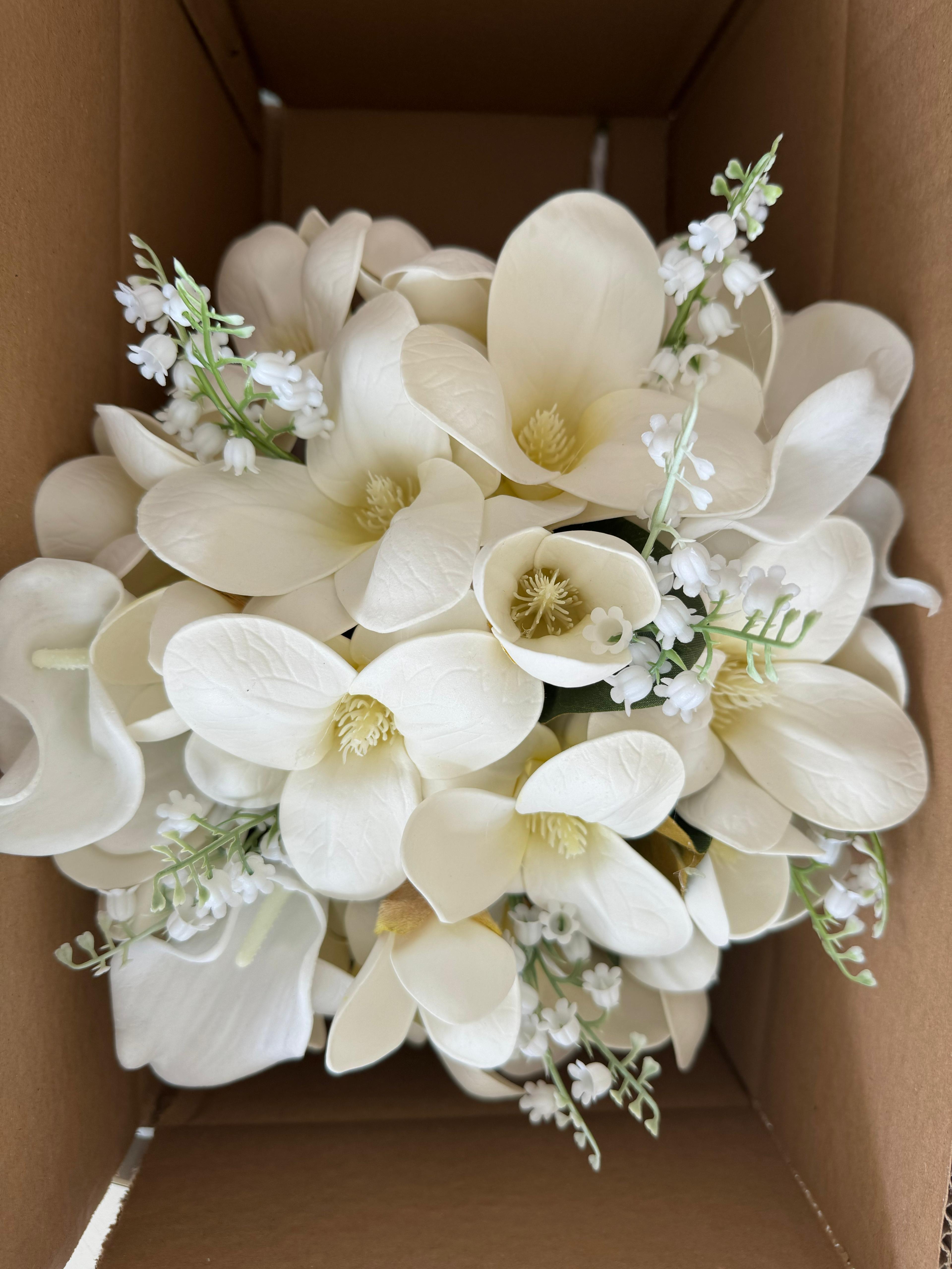 ✨Zarafeti ve asaletiyle öne çıkan manolyalarla hazırlanan bu buket, özel anlara doğal bir şıklık katar. Yumuşak dokusu ve etkileyici duruşuyla sevdiklerinize duygularınızı en saf haliyle iletmenizi sağlar.? Birinci sınıf kalitedeki kumaş yapay çiçeklerden oluşuyor, ömürlüktür. Orta boydur ne büyük ne de küçük. Yaka çiçeği hediyedir. Teslim süresi 15-20 iş günüdür; acil tarihler için not kısmına belirtmeniz yeterlidir. ?Ürünlerimiz tamamen el yapımıdır; bu nedenle her buket ve süs benzersizdir. Çiçeklerin yerleşimi ve detayları ufak farklılıklar gösterebilir, bu da ürünlerimize özel bir karakter katar. ?