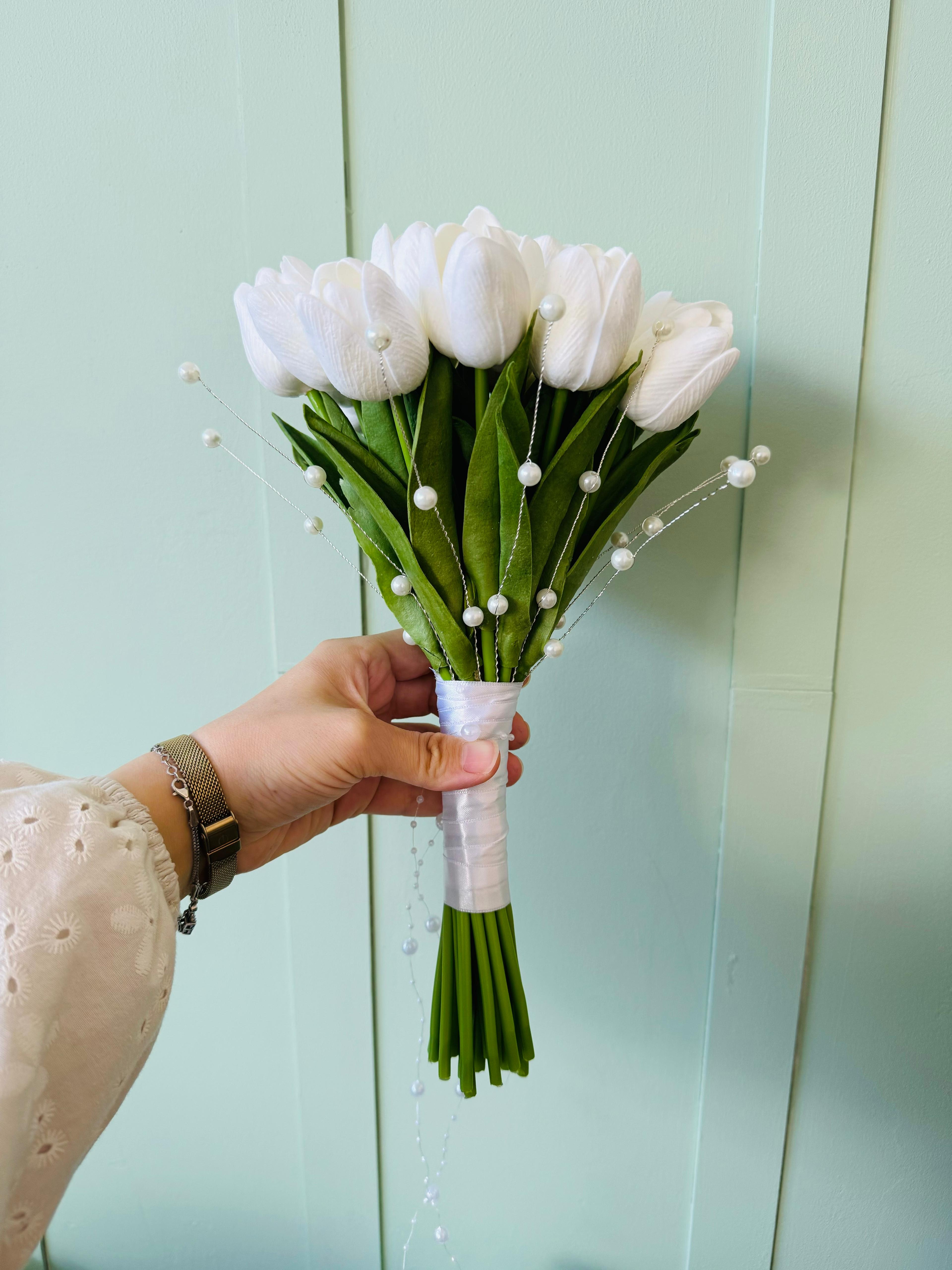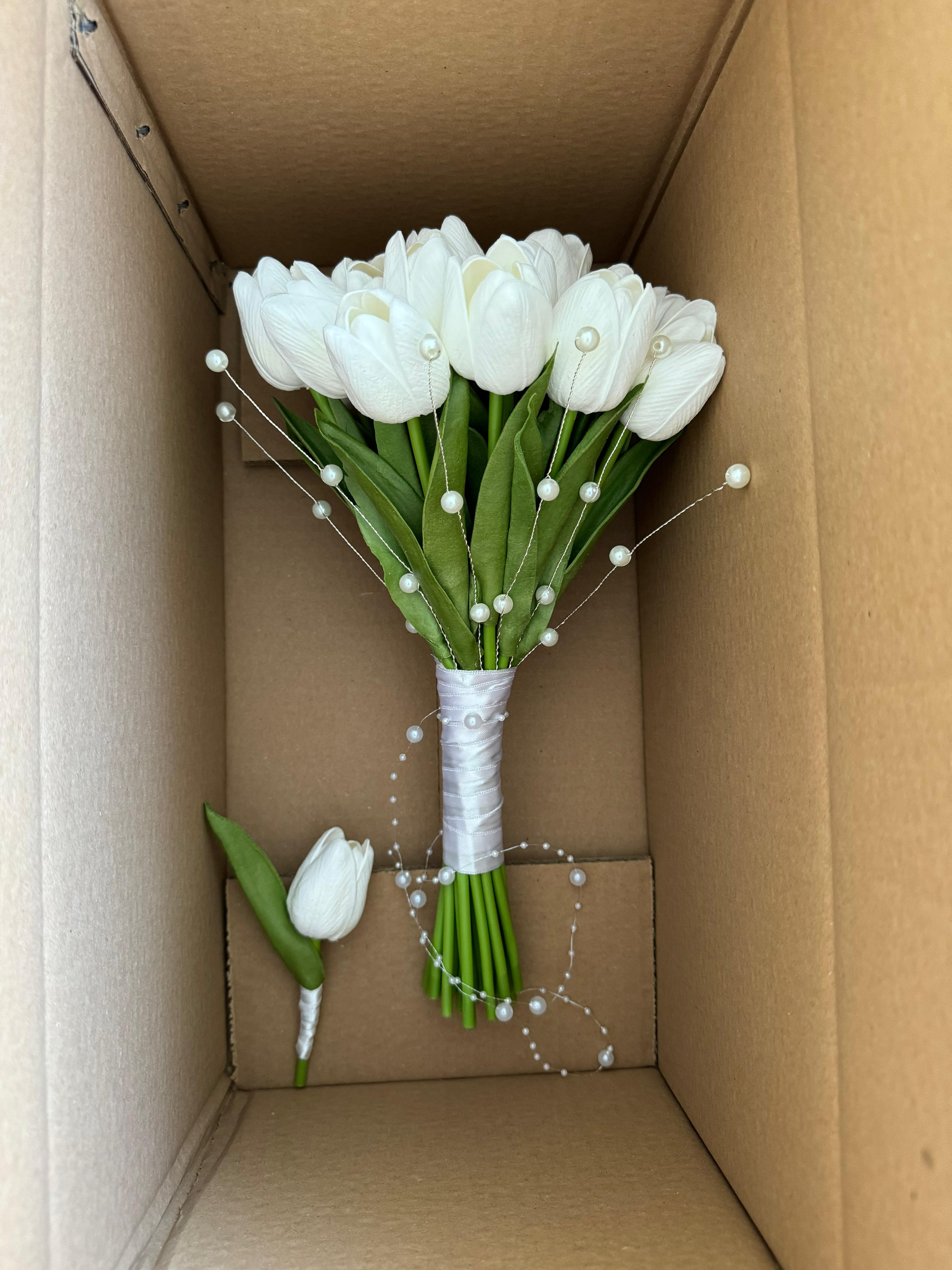 ? Bembeyaz lalelerin masum ışıltısından ilham alan bu buket, şıklığın en zarif halini sunuyor. İnceliği ve duruluğu ile özel anlarınıza ışıltı katmak için özenle hazırlandı.? 24 adet ıslak dokulu laleden oluşuyor.? Teslim süresi 15-20 iş günüdür; acil tarihler için not kısmına belirtmeniz yeterlidir. ?Ürünlerimiz tamamen el yapımıdır; bu nedenle her buket ve süs benzersizdir. Çiçeklerin yerleşimi ve detayları ufak farklılıklar gösterebilir, bu da ürünlerimize özel bir karakter katar. ?