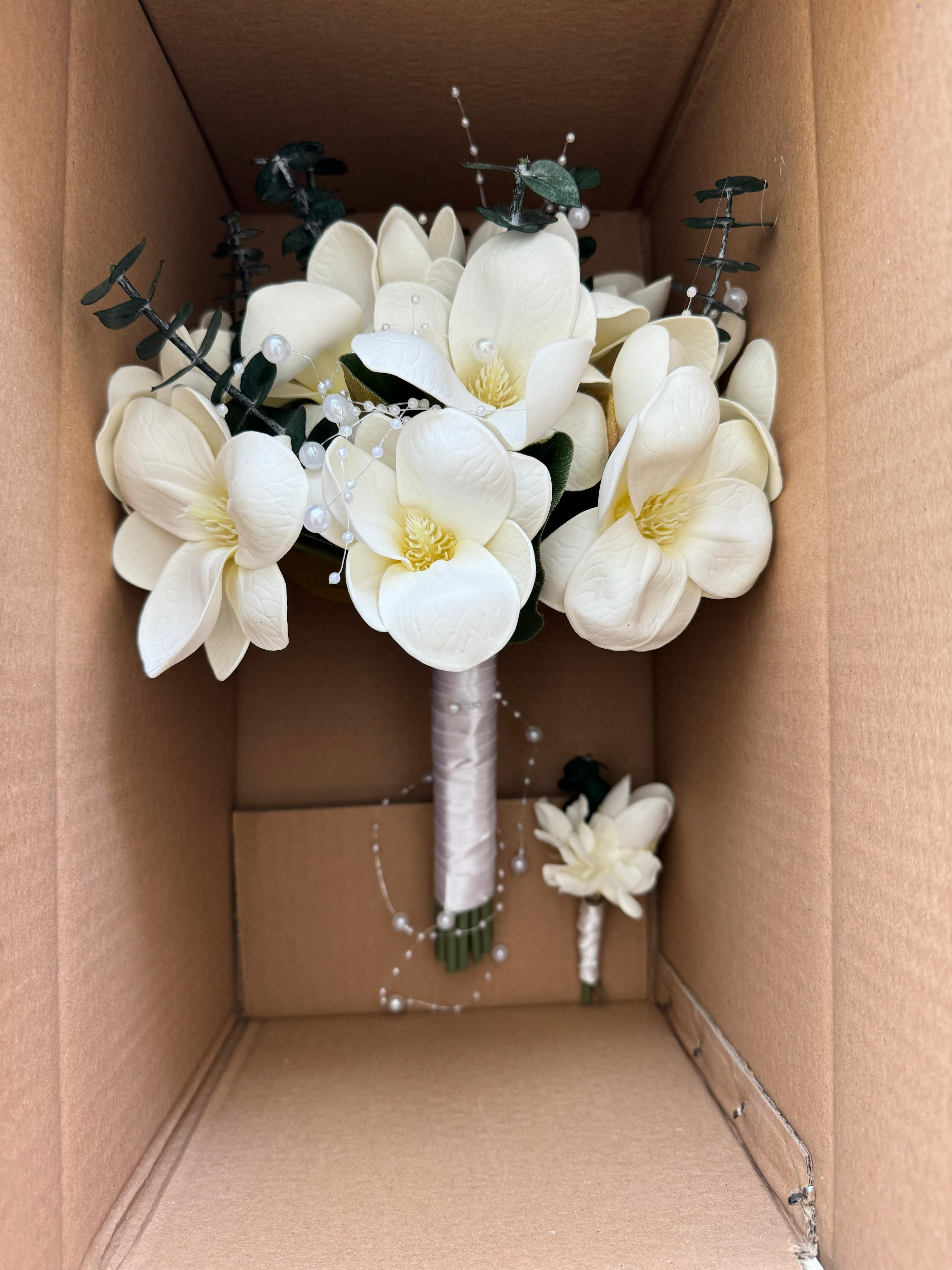 ✨Zarafeti ve asaletiyle öne çıkan manolyalarla hazırlanan bu buket, özel anlara doğal bir şıklık katar. Yumuşak dokusu ve etkileyici duruşuyla sevdiklerinize duygularınızı en saf haliyle iletmenizi sağlar.? Birinci sınıf kalitedeki yapay çiçeklerden oluşuyor, ömürlüktür. Orta boydur ne büyük ne de küçük. Yaka çiçeği hediyedir. Teslim süresi 15-20 iş günüdür; acil tarihler için not kısmına belirtmeniz yeterlidir. ?Ürünlerimiz tamamen el yapımıdır; bu nedenle her buket ve süs benzersizdir. Çiçeklerin yerleşimi ve detayları ufak farklılıklar gösterebilir, bu da ürünlerimize özel bir karakter katar. ?