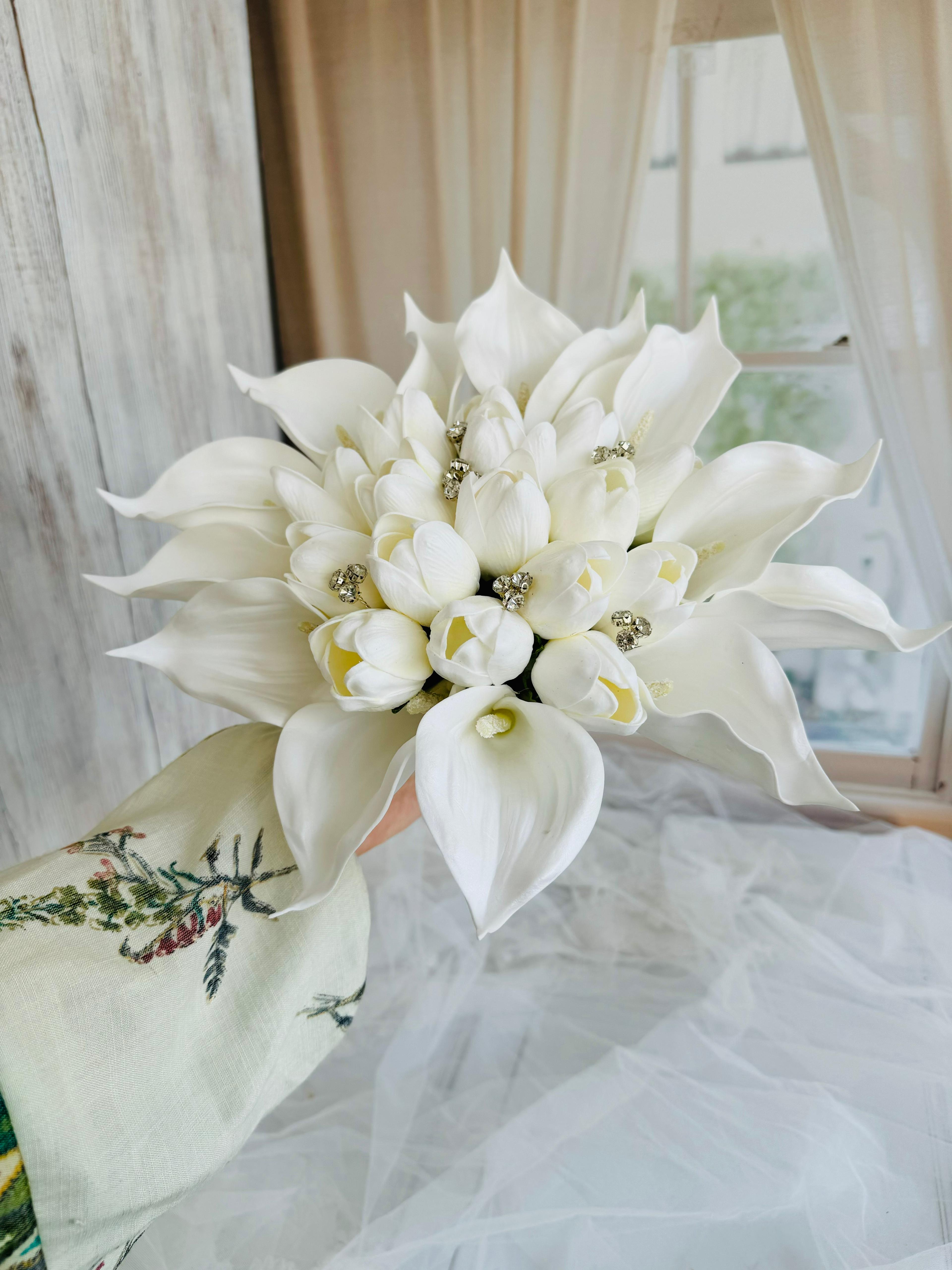 Şıklığı minimal dokunuşlarla taşıyan gelinler için tasarlandı. Işıltılı taş süslemeleri ve yumuşak tonlarıyla düğününüzde göz alıcı bir duruş sunar.? Orta boydur ne büyük ne de küçük. Yaka çiçeği hediyedir. Teslim süresi 15-20 iş günüdür; acil tarihler için not kısmına belirtmeniz yeterlidir.? Ürünlerimiz tamamen el yapımıdır; bu nedenle her buket ve süs benzersizdir. Çiçeklerin yerleşimi ve detayları ufak farklılıklar gösterebilir, bu da ürünlerimize özel bir karakter katar. ?