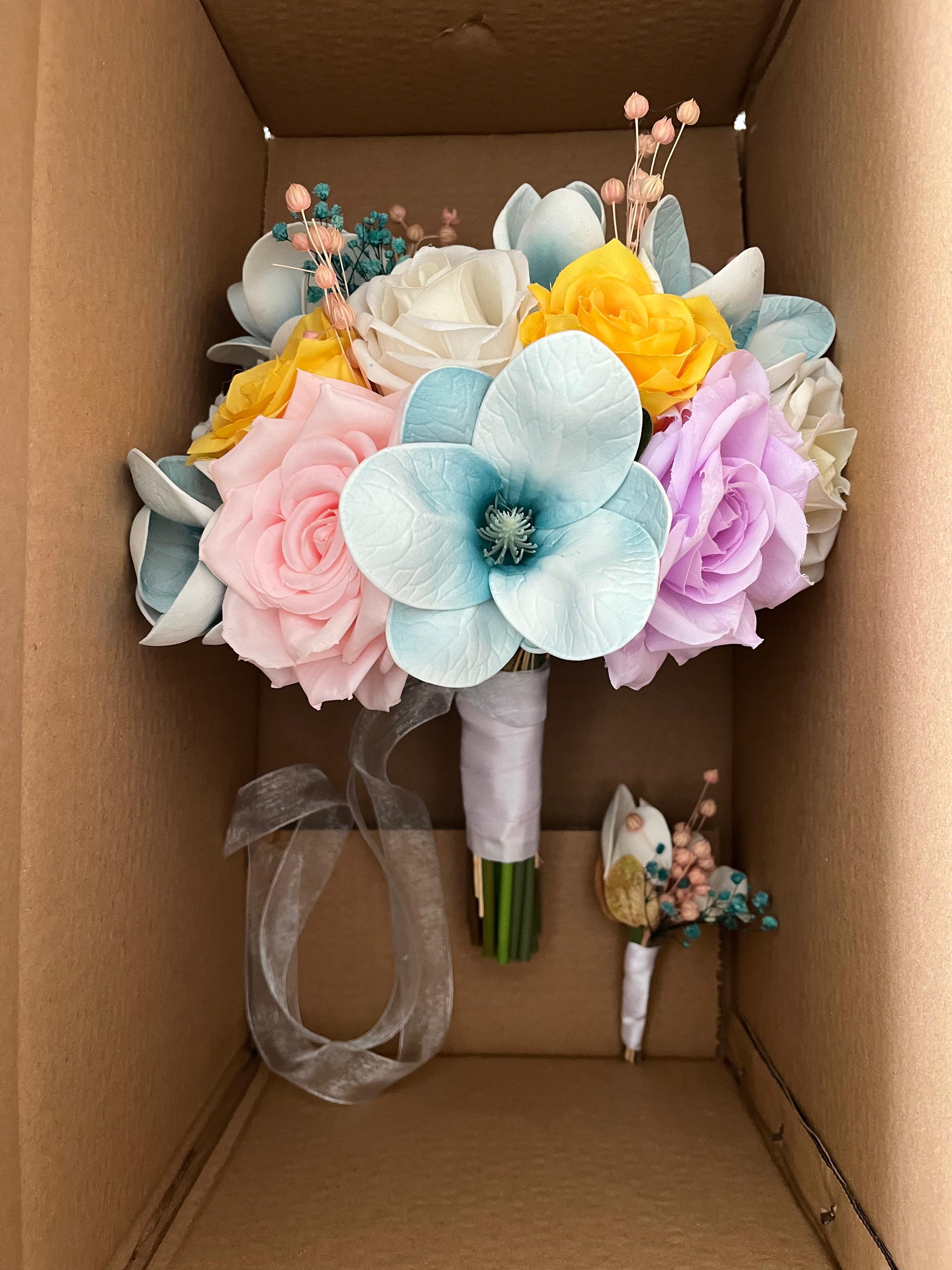 2100₺ Gerçek çiçek görünümündeki kumaş ve ıslak dokulu birinci sınıf kumaş çiçeklerle hazırlanmıştır. Orta boydur ne büyük nede küçük . Yaka çiçeği hediyedir. Teslim süresi 15-20 iş günüdür; acil tarihler için not kısmına belirtmeniz yeterlidir. Ürünlerimiz tamamen el yapımıdır; bu nedenle her buket ve süs benzersizdir. Çiçeklerin yerleşimi ve detayları ufak farklılıklar gösterebilir, bu da ürünlerimize özel bir karakter katar. ?