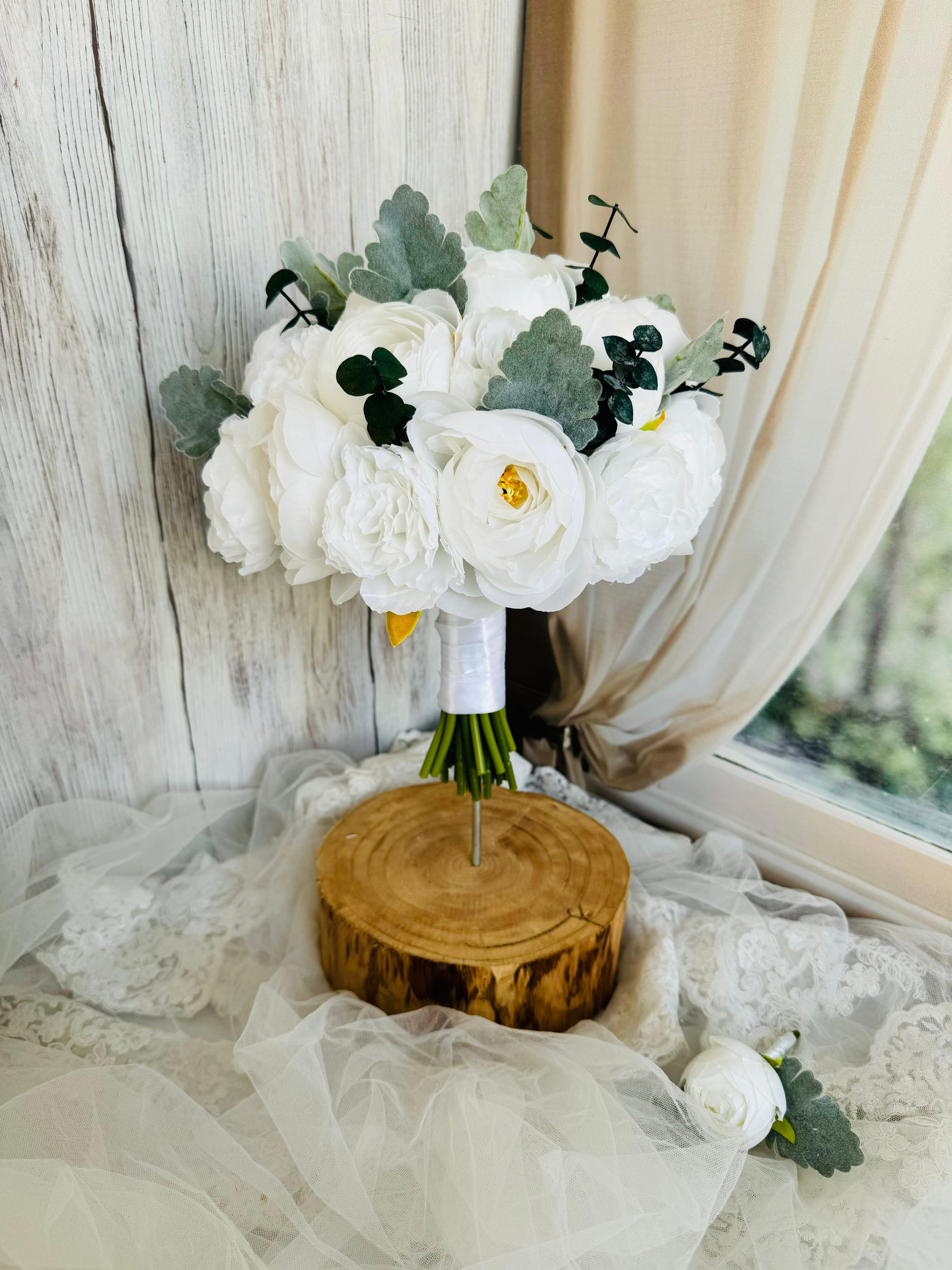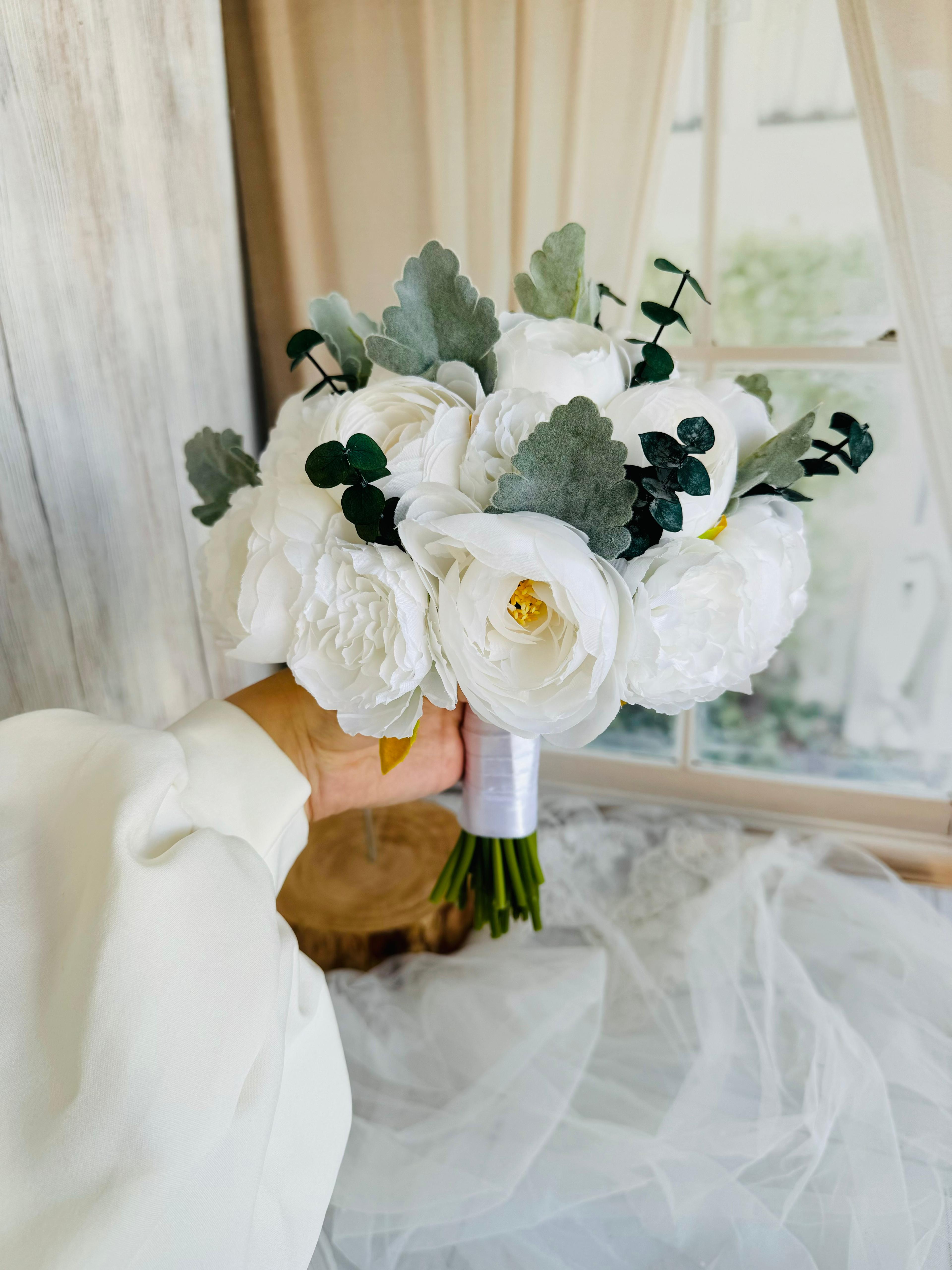 ?Gerçek çiçek görünümündeki birinci sınıf kumaş çiçeklerle hazırlanmıştır. Zarif ve sade tasarımıyla her gelinliğe uyum sağlar. Orta boydur ne büyük ne de küçük . Yaka çiçeği hediyedir. Teslim süresi 15-20 iş günüdür; acil tarihler için not kısmına belirtmeniz yeterlidir. ? Ürünlerimiz tamamen el yapımıdır; bu nedenle her buket ve süs benzersizdir. Çiçeklerin yerleşimi ve detayları ufak farklılıklar gösterebilir, bu da ürünlerimize özel bir karakter katar. ?