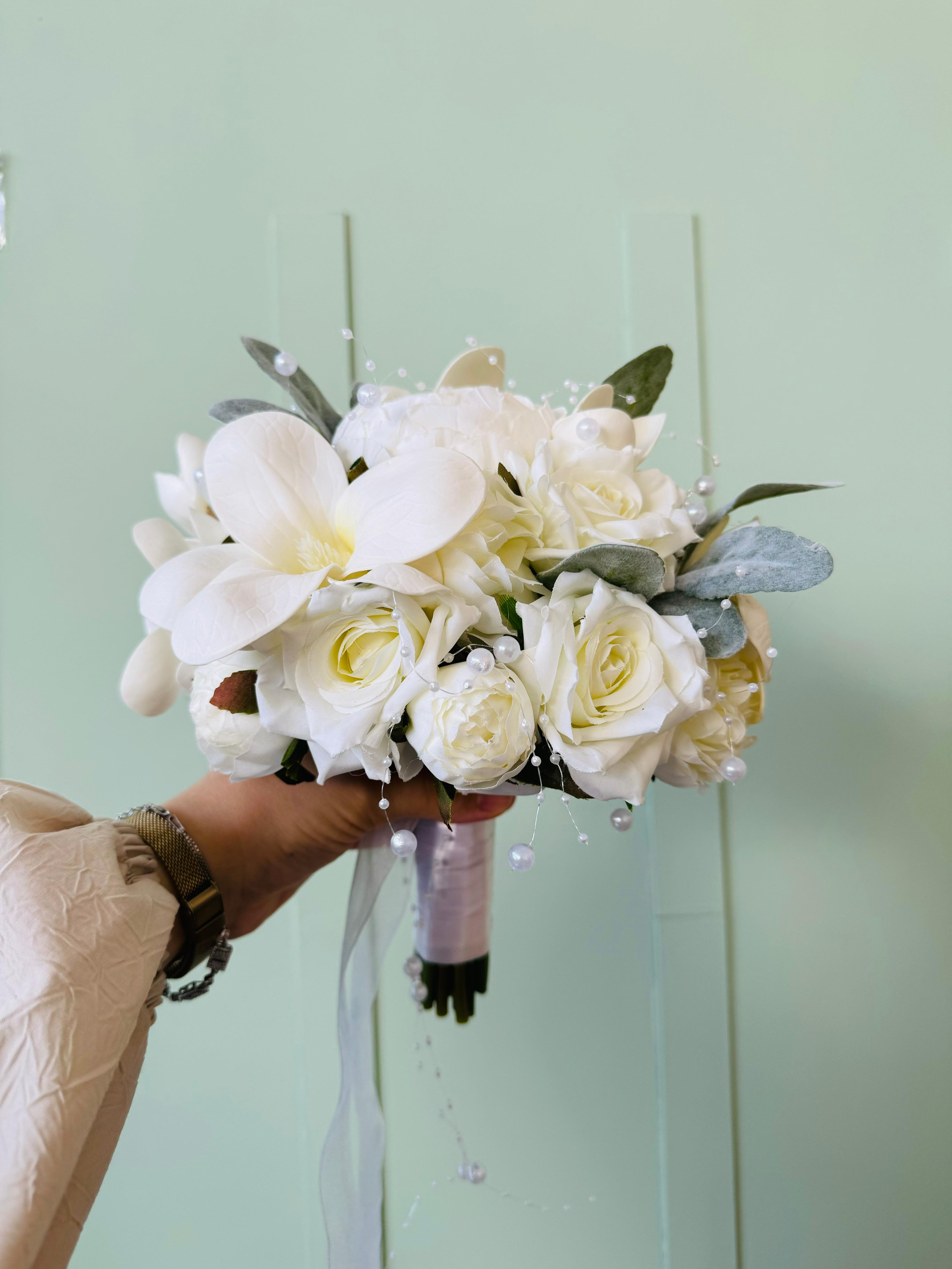 ✨Zarafeti ve asaletiyle öne çıkan manolyalarla hazırlanan bu buket, özel anlara doğal bir şıklık katar. Yumuşak dokusu ve etkileyici duruşuyla sevdiklerinize duygularınızı en saf haliyle iletmenizi sağlar.? Birinci sınıf kalitedeki kumaş yapay çiçeklerden oluşuyor, ömürlüktür. Orta boydur ne büyük ne de küçük. Yaka çiçeği hediyedir. Teslim süresi 15-20 iş günüdür; acil tarihler için not kısmına belirtmeniz yeterlidir. ?Ürünlerimiz tamamen el yapımıdır; bu nedenle her buket ve süs benzersizdir. Çiçeklerin yerleşimi ve detayları ufak farklılıklar gösterebilir, bu da ürünlerimize özel bir karakter katar. ?