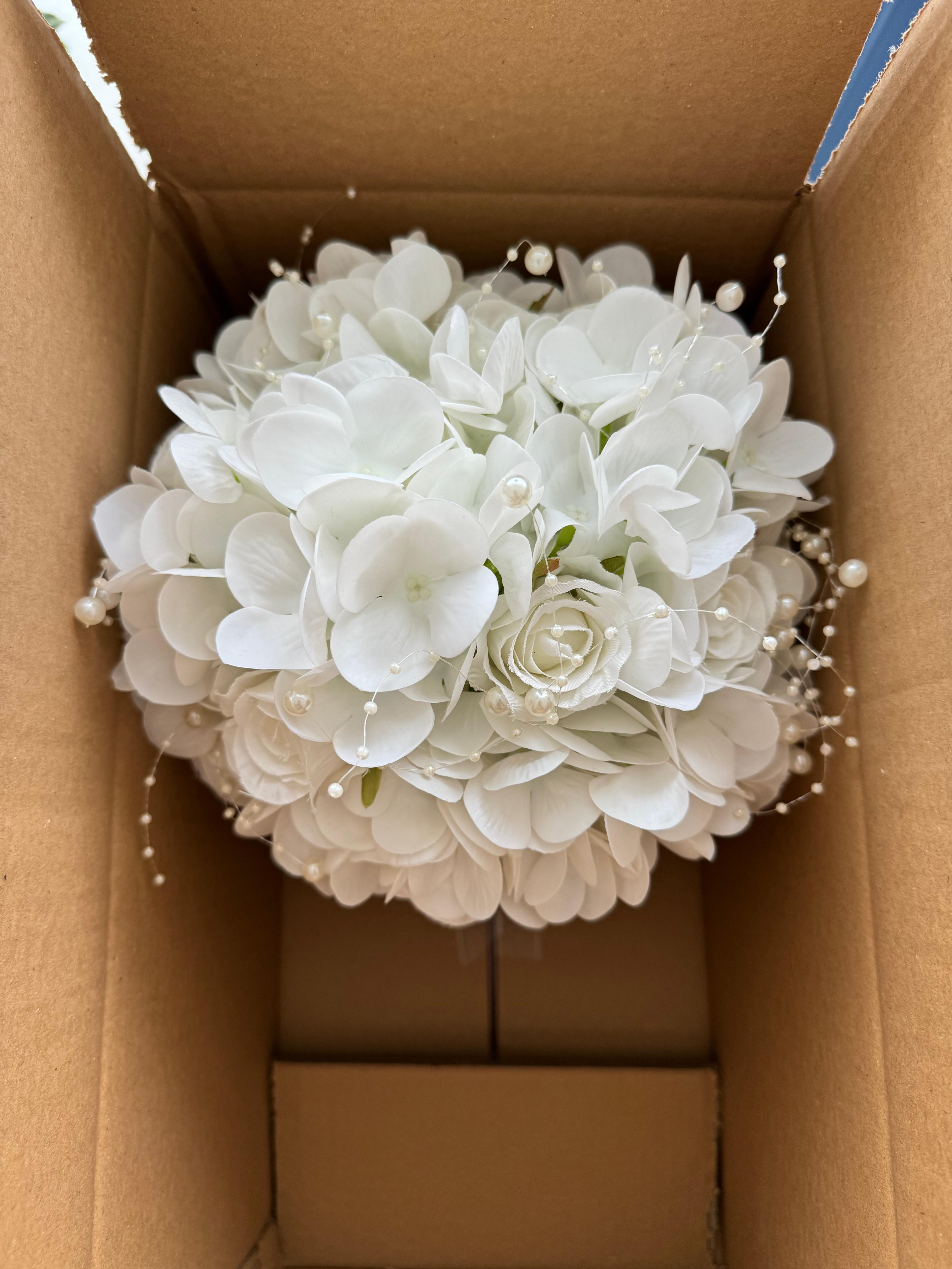 ?Gerçek çiçek görünümündeki birinci sınıf ıslak dokulu ortanca ve kumaş güller ile hazırlanmıştır. Zarif ve sade tasarımıyla her gelinliğe uyum sağlar. Orta boydur ne büyük ne de küçük . Yaka çiçeği hediyedir. Teslim süresi 15-20 iş günüdür; acil tarihler için not kısmına belirtmeniz yeterlidir.? Ürünlerimiz tamamen el yapımıdır; bu nedenle her buket ve süs benzersizdir. Çiçeklerin yerleşimi ve detayları ufak farklılıklar gösterebilir, bu da ürünlerimize özel bir karakter katar. ?