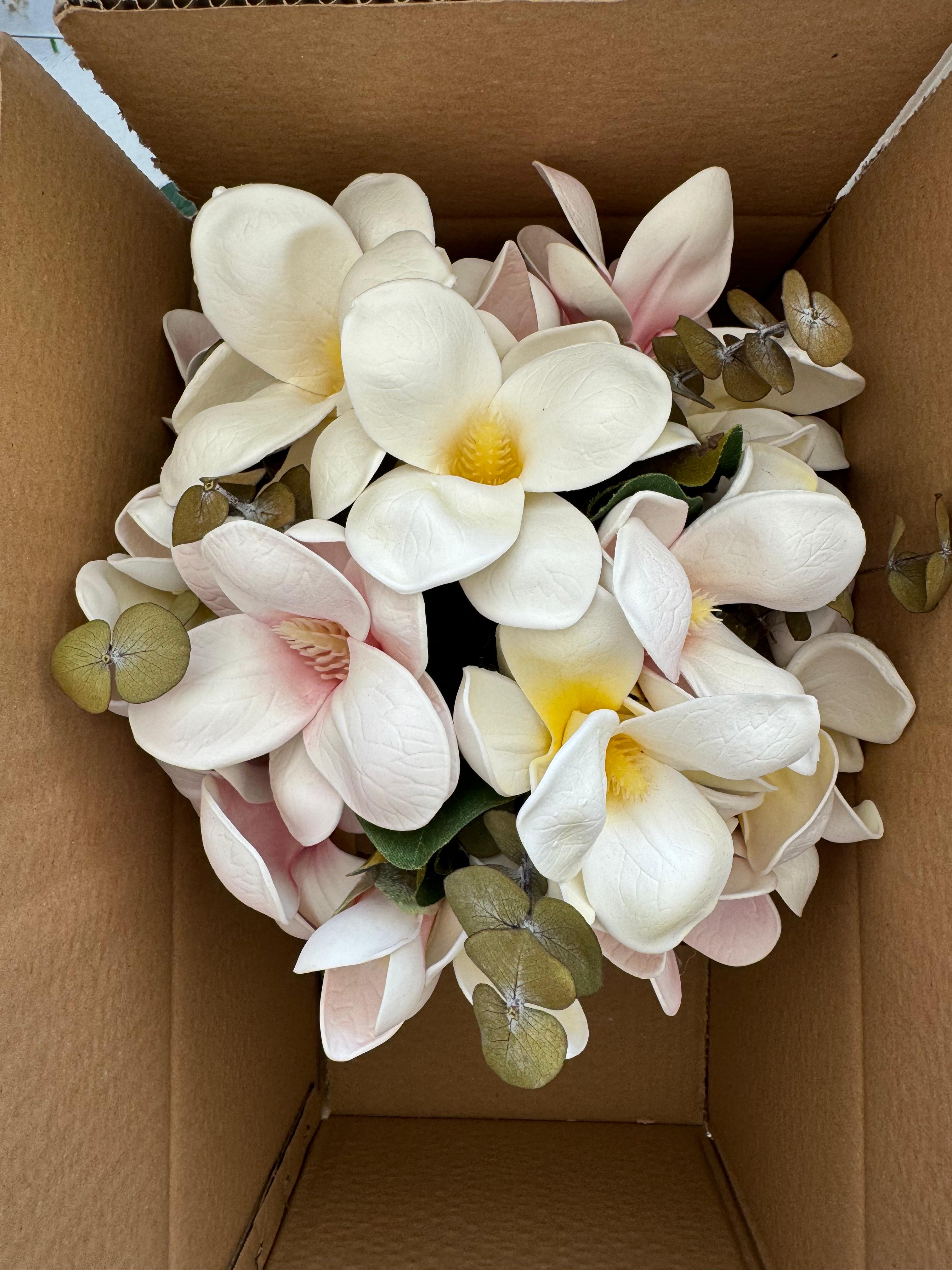 ✨Zarafeti ve asaletiyle öne çıkan manolyalarla hazırlanan bu buket, özel anlara doğal bir şıklık katar. Yumuşak dokusu ve etkileyici duruşuyla sevdiklerinize duygularınızı en saf haliyle iletmenizi sağlar.? Birinci sınıf kalitedeki kumaş yapay çiçeklerden oluşuyor, ömürlüktür. Orta boydur ne büyük ne de küçük. Yaka çiçeği hediyedir. Teslim süresi 15-20 iş günüdür; acil tarihler için not kısmına belirtmeniz yeterlidir. ?Ürünlerimiz tamamen el yapımıdır; bu nedenle her buket ve süs benzersizdir. Çiçeklerin yerleşimi ve detayları ufak farklılıklar gösterebilir, bu da ürünlerimize özel bir karakter katar. ?