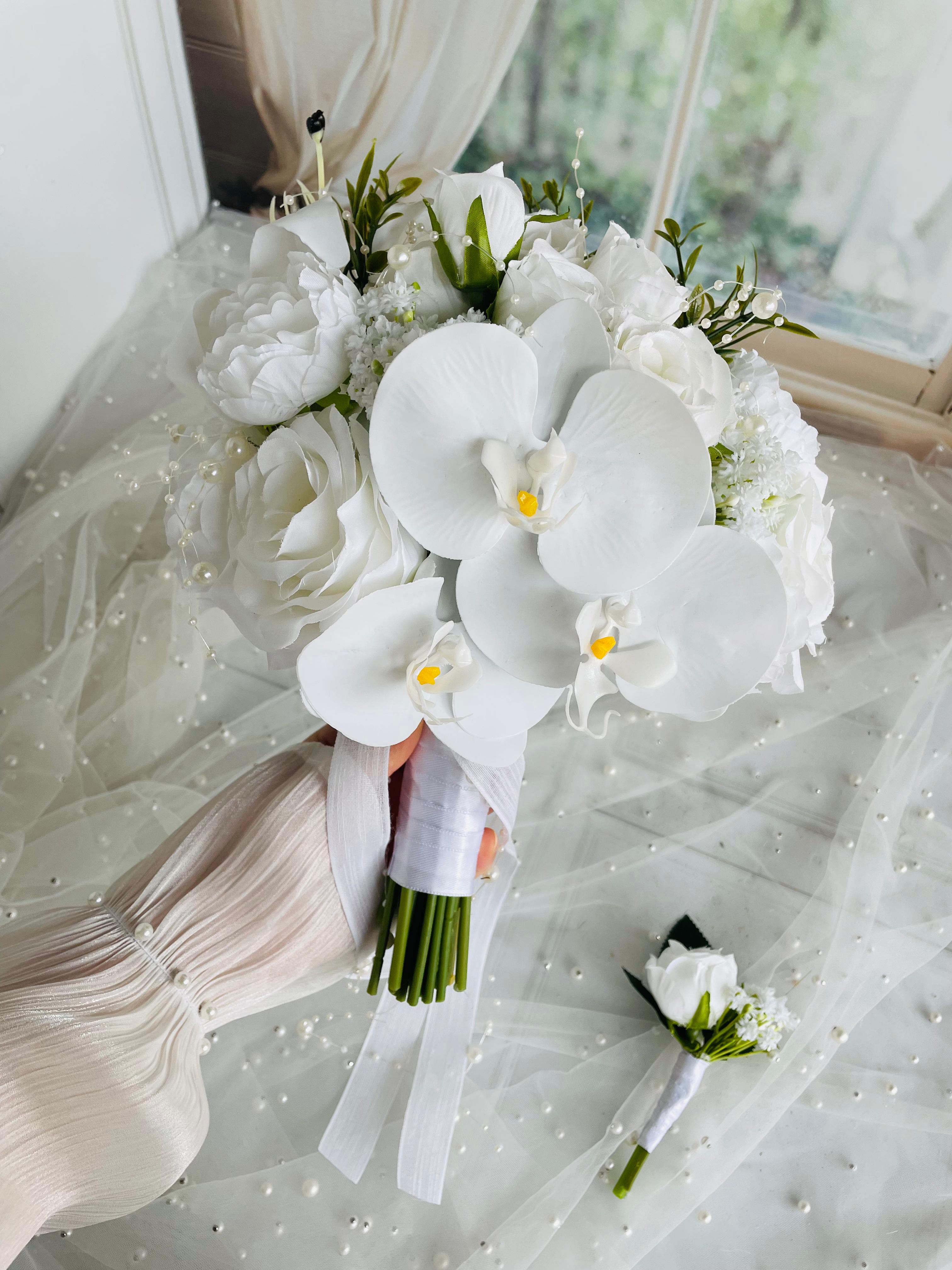 Orkidelerin zarafetiyle hazırlanan bu özel buket, her anınıza sofistike bir şıklık katar. Duygularını sade ama etkileyici bir şekilde ifade etmek isteyenler için özenle tasarlandı.? Orta boydur ne büyük ne de küçük. Yaka çiçeği hediyedir. Teslim süresi 15-20 iş günüdür; acil tarihler için not kısmına belirtmeniz yeterlidir. ?Ürünlerimiz tamamen el yapımıdır; bu nedenle her buket ve süs benzersizdir. Çiçeklerin yerleşimi ve detayları ufak farklılıklar gösterebilir, bu da ürünlerimize özel bir karakter katar. ?