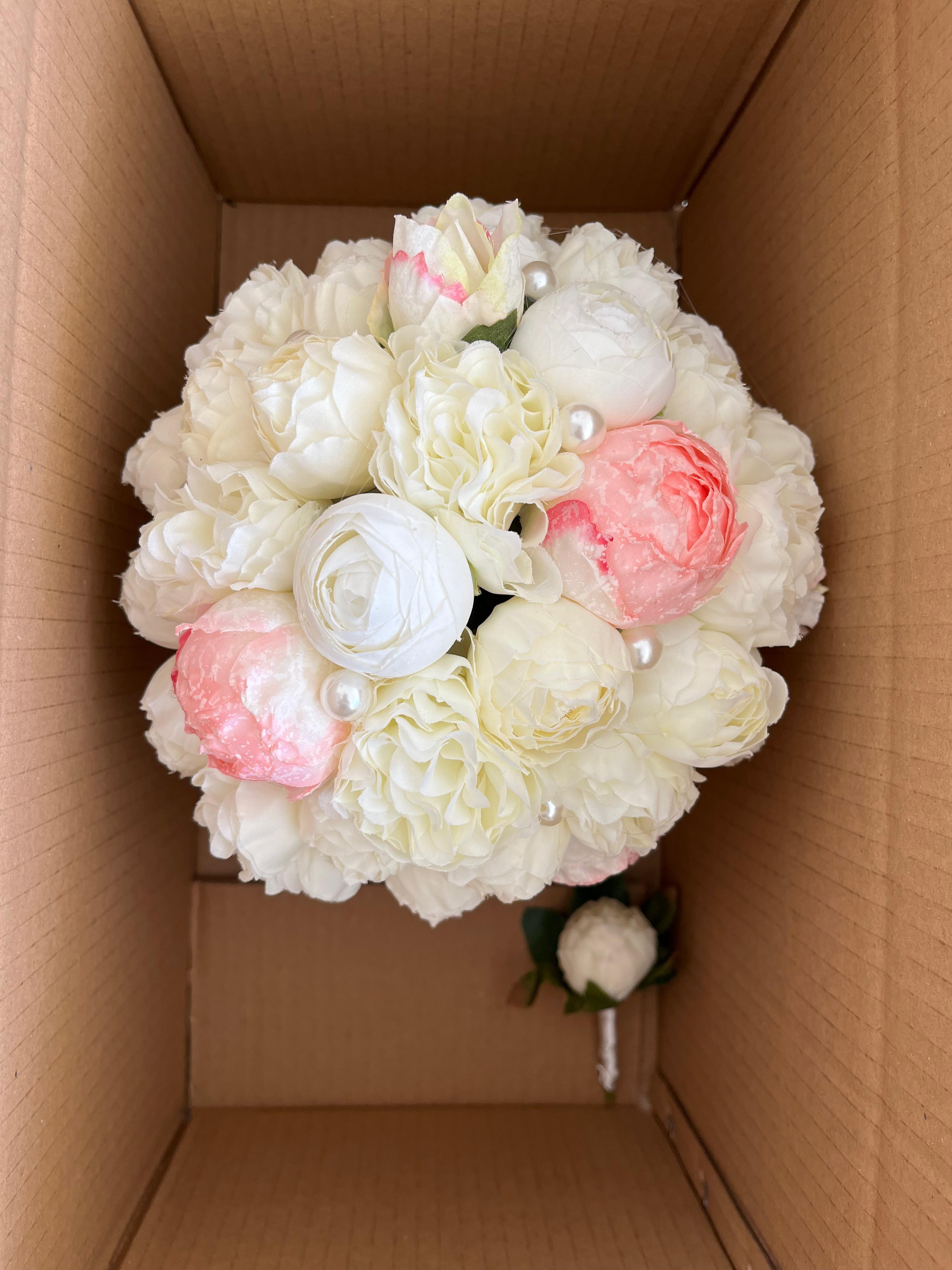 Pembe ve beyaz çiçeklerin zarafetiyle hazırlanan bu özel buket, her anınıza şıklık katar. Duygularını sade ama etkileyici bir şekilde ifade etmek isteyenler için özenle tasarlandı.? Orta boydur ne büyük ne de küçük. Yaka çiçeği hediyedir. Teslim süresi 15-20 iş günüdür; acil tarihler için not kısmına belirtmeniz yeterlidir. ?Ürünlerimiz tamamen el yapımıdır; bu nedenle her buket ve süs benzersizdir. Çiçeklerin yerleşimi ve detayları ufak farklılıklar gösterebilir, bu da ürünlerimize özel bir karakter katar. ?