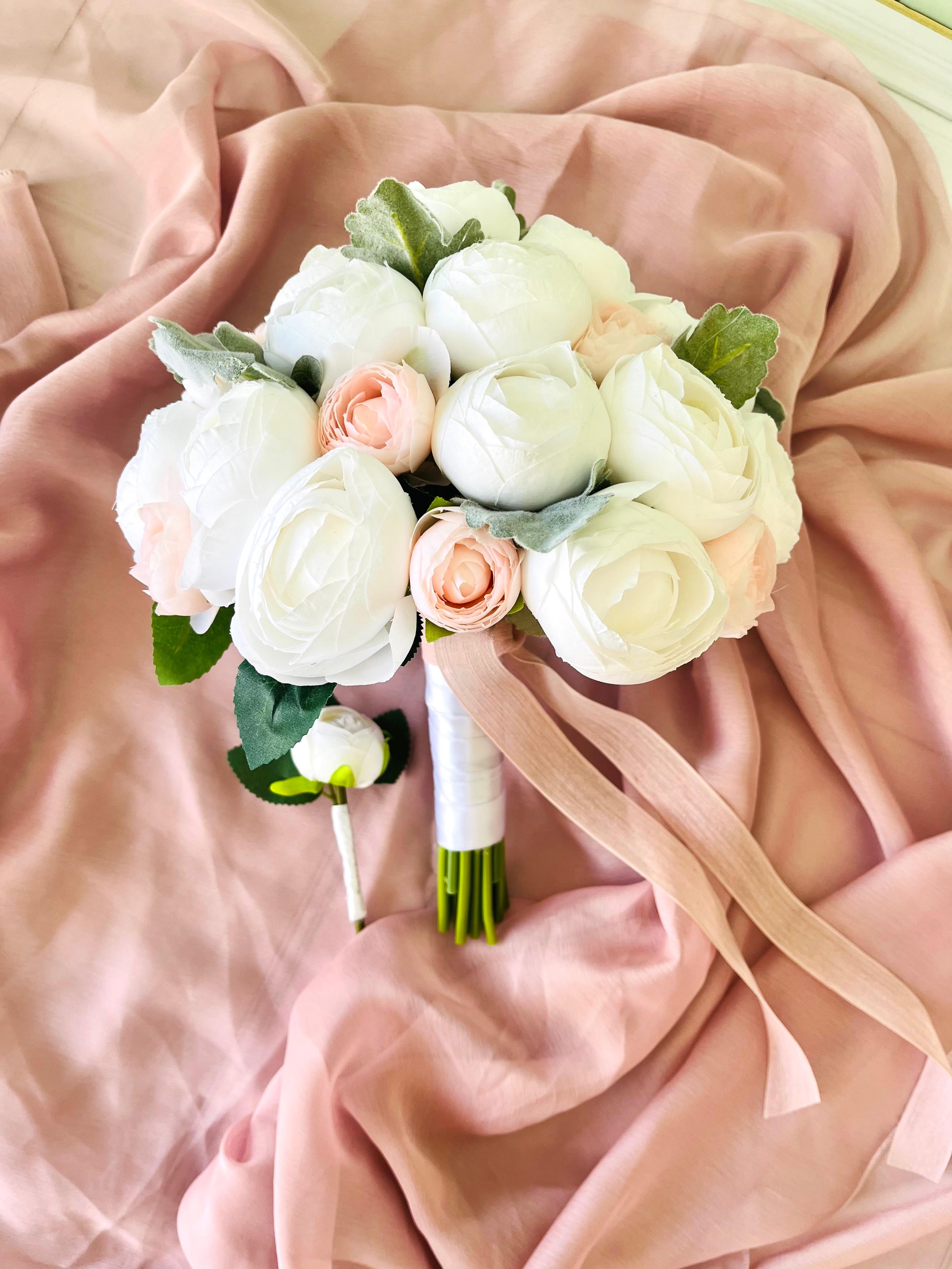 ?Doğal tonlarda, birinci sınıf kumaş çiçekler ile hazırlanmış gelin buketidir. Uzun ömürlüdür . Orta boydur ne büyük ne de küçük . Yaka çiçeği hediyedir. Teslim süremiz 15-20 iş günüdür; acil tarihler için sipariş notuna tarih eklemeniz yeterlidir.? ?Ürünlerimiz tamamen el yapımıdır; bu nedenle her buket ve süs benzersizdir. Çiçeklerin yerleşimi ve detayları ufak farklılıklar gösterebilir, bu da ürünlerimize özel bir karakter katar. ?