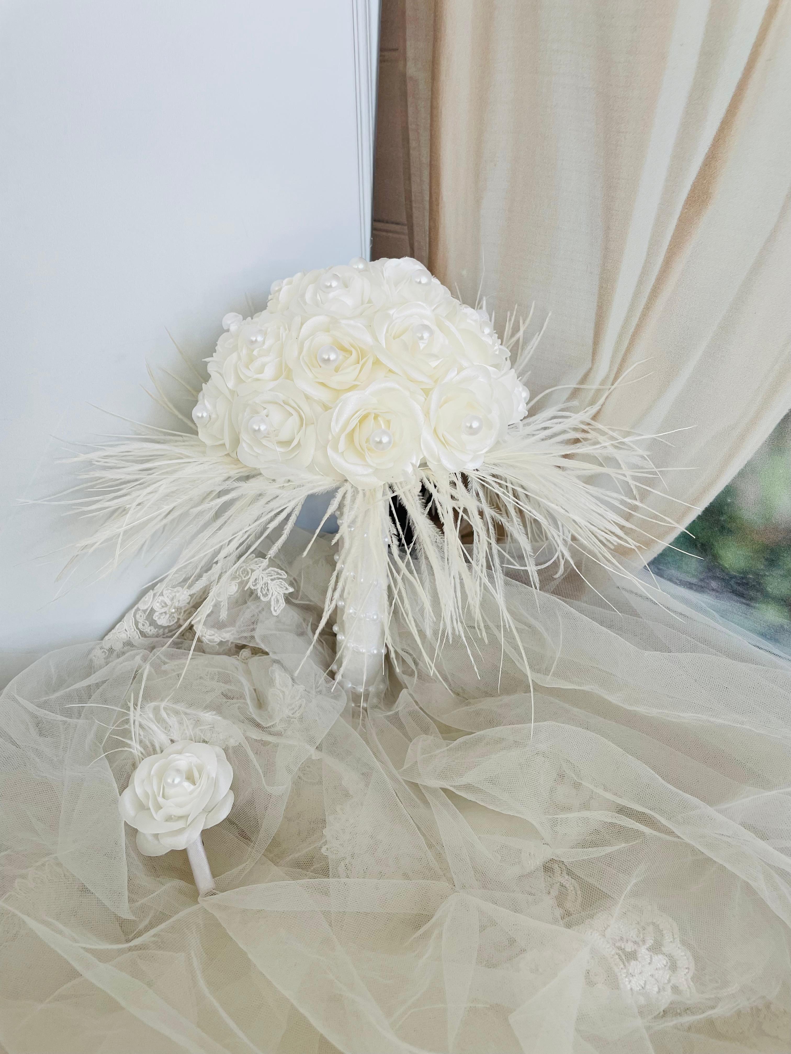 ?El işçiliğinin her ayrıntısında emek ve sabır saklıdır; her dokunuş, benzersizliğini ve ağırlığını hissettirir. Sıradanlıktan uzak, yalnızca özel anların ve seçkin zevklerin yansıması olarak var olan bu buket, göz kamaştıran bir sessizliğin simgesidir.? Yaka çiçeği hediyedir. Teslim süresi 15-20 iş günüdür; acil tarihler için not kısmına belirtmeniz yeterlidir.? Ürünlerimiz tamamen el yapımıdır; bu nedenle her buket ve süs benzersizdir. Çiçeklerin yerleşimi ve detayları ufak farklılıklar gösterebilir, bu da ürünlerimize özel bir karakter katar. ?