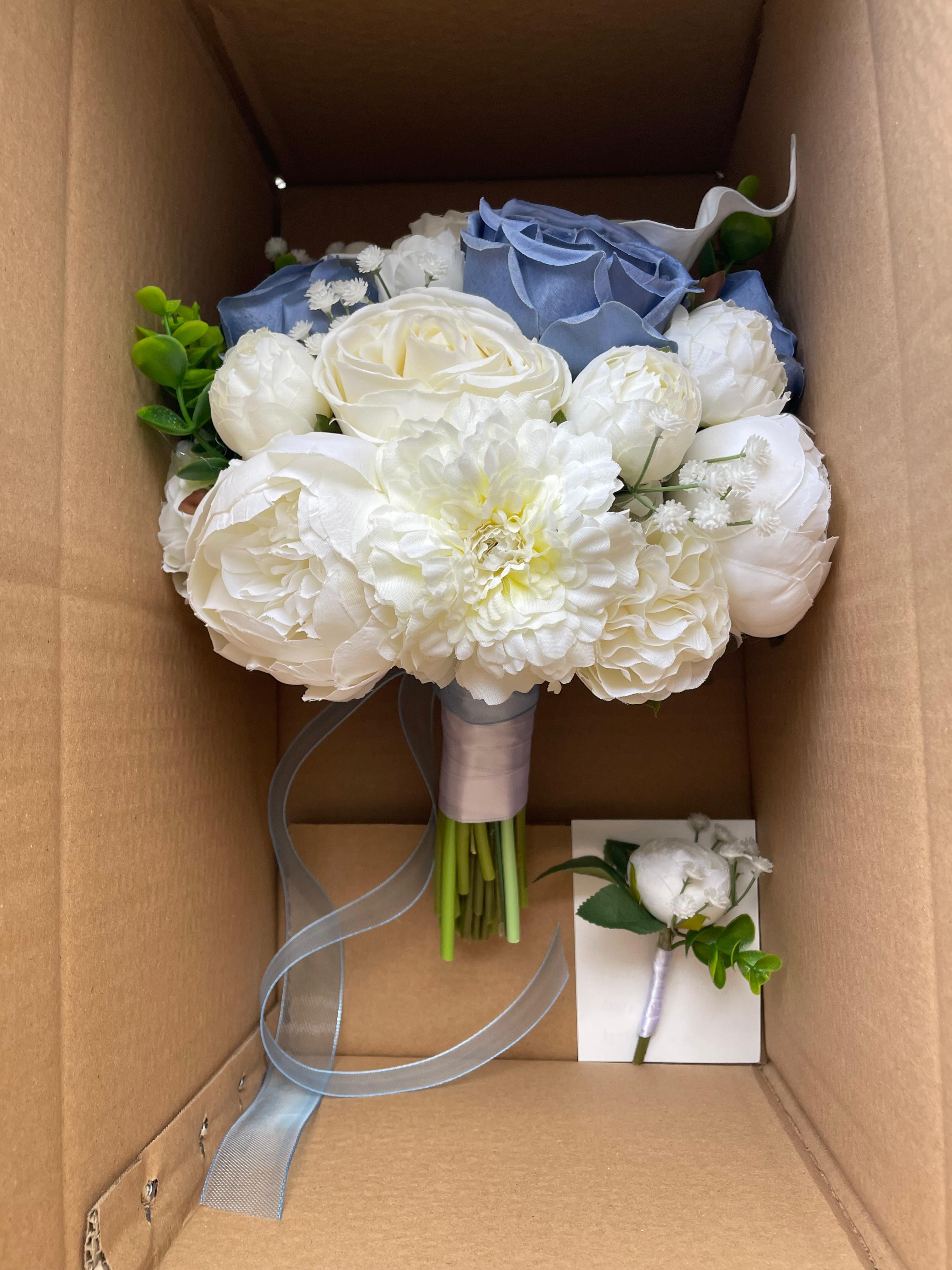 ?Birinci sınıf kalitedeki kumaş ve şoklanmış çiçeklerle hazırlanmış bu özel buket, mavi ve beyaz tonlarının uyumuyla ömürlük bir şıklık sunar. Özgün formu ile her detayı zarafet dolu bir tasarım.✨ Orta boydur ne büyük ne de küçük. Yaka çiçeği hediyedir. Teslim süresi 15-20 iş günüdür; acil tarihler için not kısmına belirtmeniz yeterlidir. ?Ürünlerimiz tamamen el yapımıdır; bu nedenle her buket ve süs benzersizdir. Çiçeklerin yerleşimi ve detayları ufak farklılıklar gösterebilir, bu da ürünlerimize özel bir karakter katar. ?