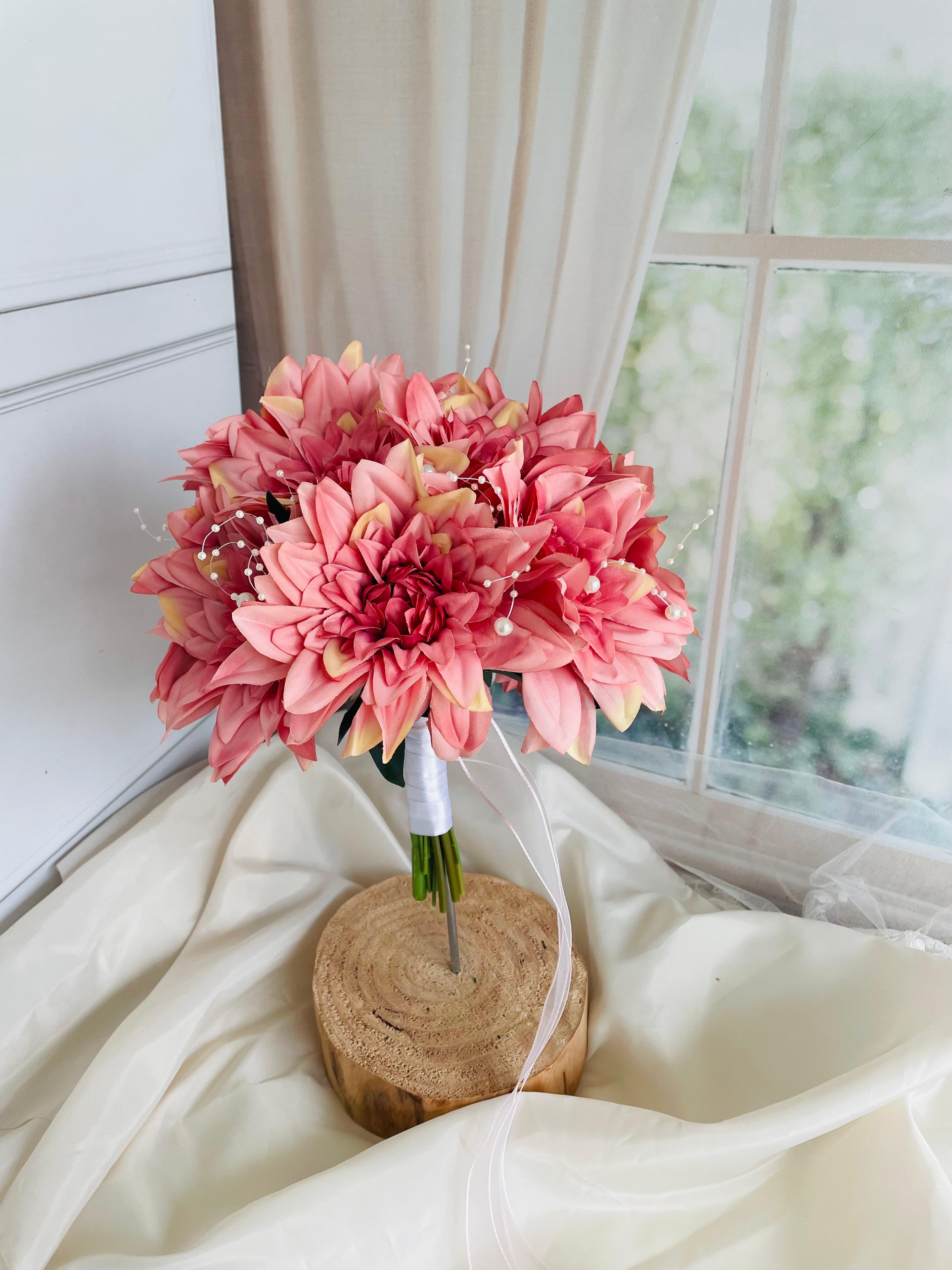 ?Pembe krizantemlerin zarif duruşuyla hazırlanmış bu özel gelin buketi, sade güzelliğiyle dikkat çeker. Doğallığı ve şıklığı bir arada sunan tasarımıyla, özel gününüzde zarafetin en güzel halini taşıyın.? Düğün veya nişan için uygundur . Orta boydur ne büyük ne de küçük. Yaka çiçeği hediyedir. Teslim süresi 15-20 iş günüdür; acil tarihler için not kısmına belirtmeniz yeterlidir. Ürünlerimiz tamamen el yapımıdır; bu nedenle her buket ve süs benzersizdir. Çiçeklerin yerleşimi ve detayları ufak farklılıklar gösterebilir, bu da ürünlerimize özel bir karakter katar. ?