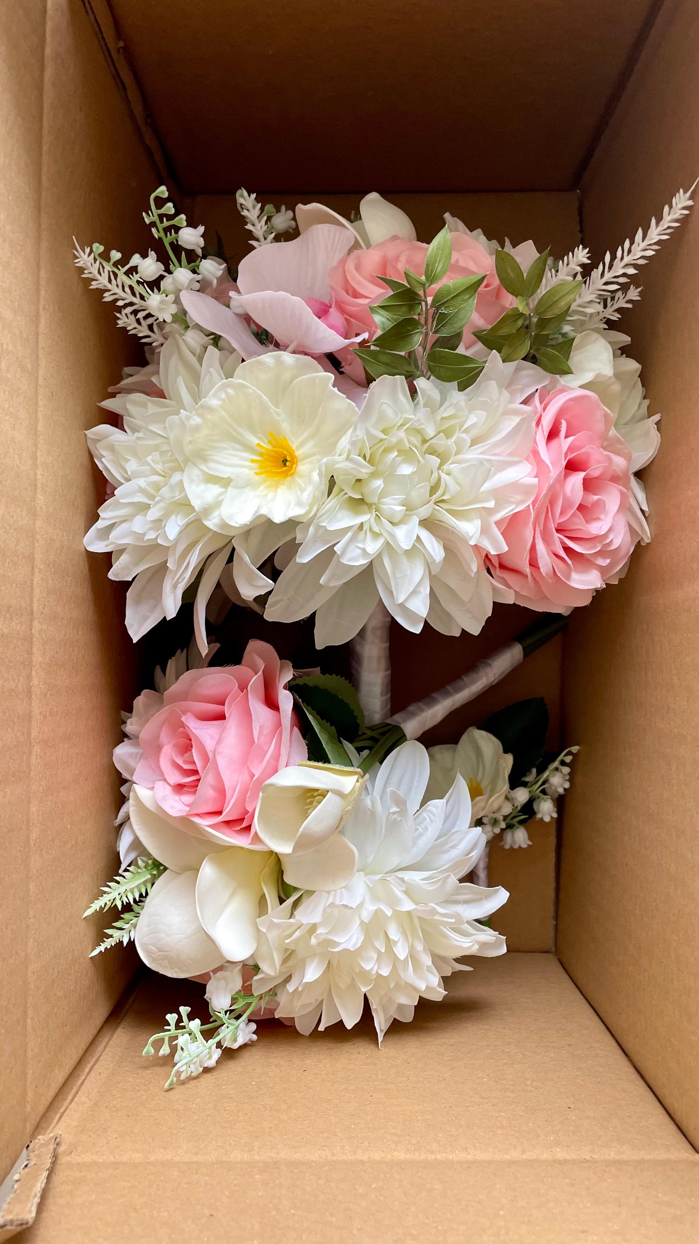 ?Gerçek çiçek görünümündeki birinci sınıf kumaş çiçekler ile hazırlanmıştır. Nişan ve düğün için uygundur . Orta boydur ne büyük ne de küçük . Yaka çiçeği hediyedir. Teslim süresi 15-20 iş günüdür; acil tarihler için not kısmına belirtmeniz yeterlidir.? ?Ürünlerimiz tamamen el yapımıdır; bu nedenle her buket ve süs benzersizdir. Çiçeklerin yerleşimi ve detayları ufak farklılıklar gösterebilir, bu da ürünlerimize özel bir karakter katar. ?