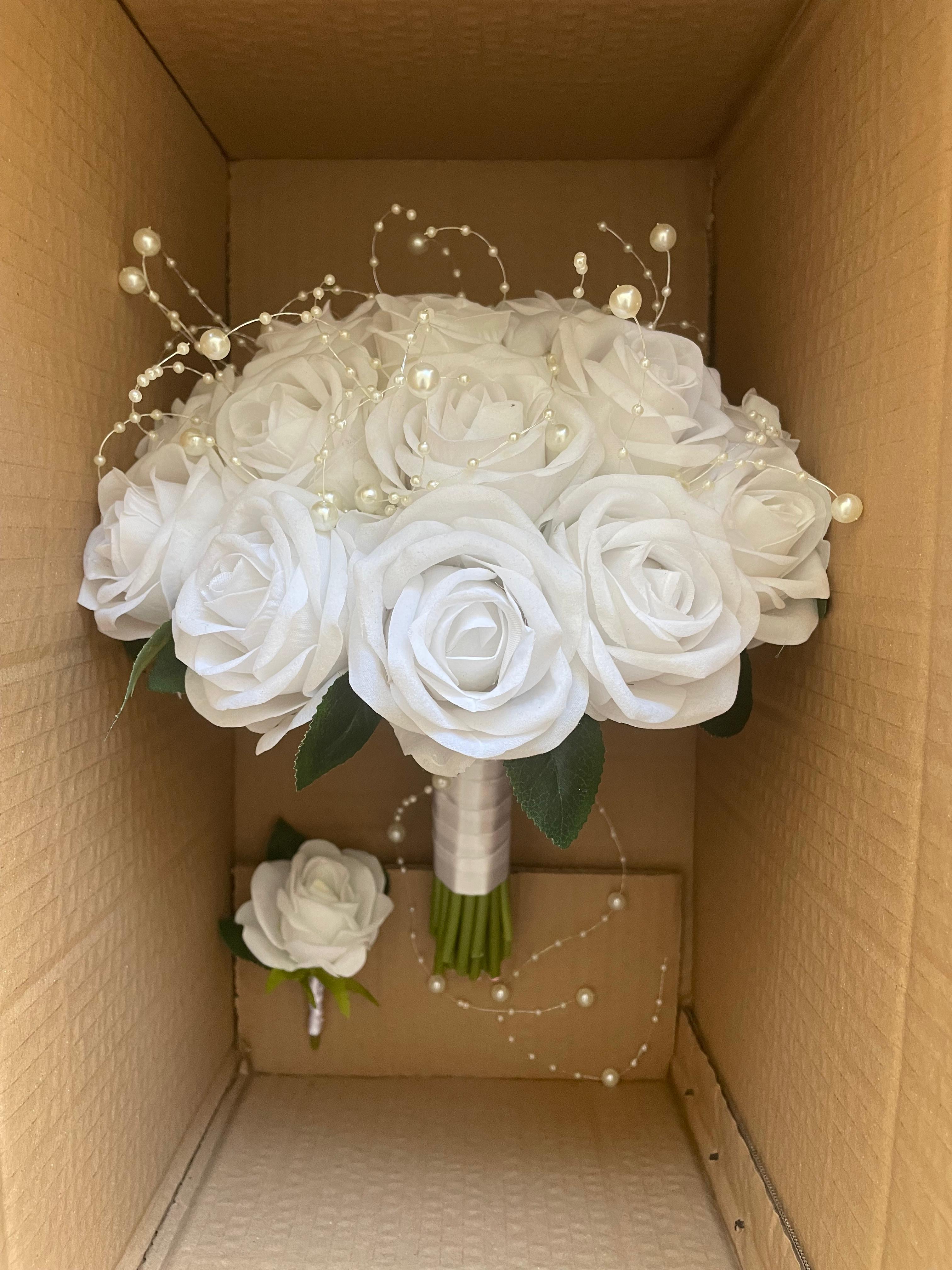? Beyaz güllerin zarif dansıyla hayat bulan bu özel tasarım gelin buketi, aşkın en saf halini yansıtır. Her gül, sevgiyle seçilmiş; her detay, zarafetle örülmüştür. Romantik ruhunu zarif dokunuşlarla ifade etmek isteyen gelinler için tasarlandı. Orta boydur ne büyük ne de küçük . Birinci sınıf kalitedeki kumaş güllerden oluşmaktadır . Yaka çiçeği hediyedir. Teslim süresi 15-20 iş günüdür; acil tarihler için not kısmına belirtmeniz yeterlidir. ? ?Ürünlerimiz tamamen el yapımıdır; bu nedenle her buket ve süs benzersizdir. Çiçeklerin yerleşimi ve detayları ufak farklılıklar gösterebilir, bu da ürünlerimize özel bir karakter katar. ?