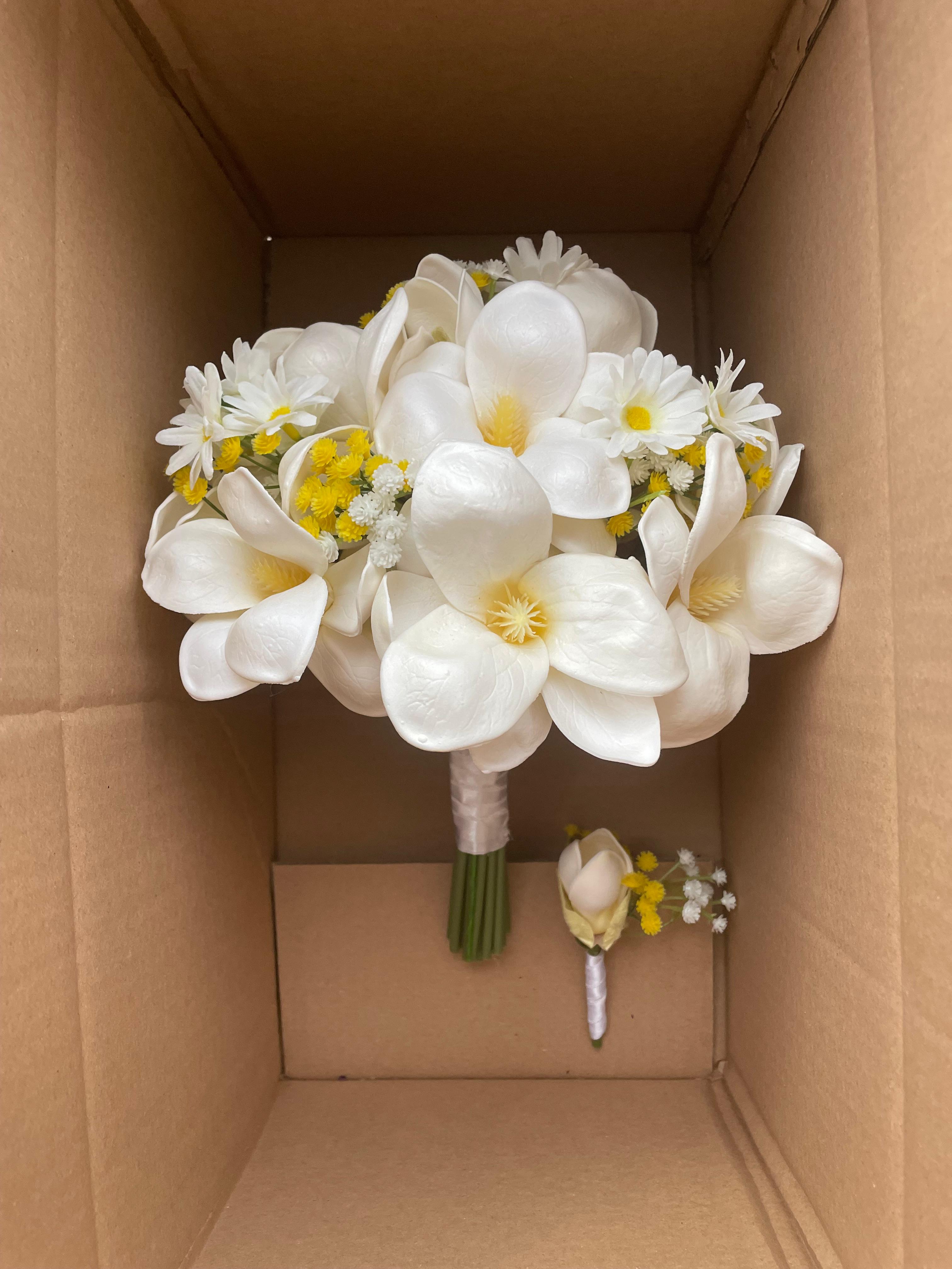 ✨Zarafeti ve asaletiyle öne çıkan manolyalarla hazırlanan bu buket, özel anlara doğal bir şıklık katar. Yumuşak dokusu ve etkileyici duruşuyla sevdiklerinize duygularınızı en saf haliyle iletmenizi sağlar.? Birinci sınıf kalitedeki kumaş yapay çiçeklerden oluşuyor, ömürlüktür. Orta boydur ne büyük ne de küçük. Yaka çiçeği hediyedir. Teslim süresi 15-20 iş günüdür; acil tarihler için not kısmına belirtmeniz yeterlidir. ?Ürünlerimiz tamamen el yapımıdır; bu nedenle her buket ve süs benzersizdir. Çiçeklerin yerleşimi ve detayları ufak farklılıklar gösterebilir, bu da ürünlerimize özel bir karakter katar. ?
