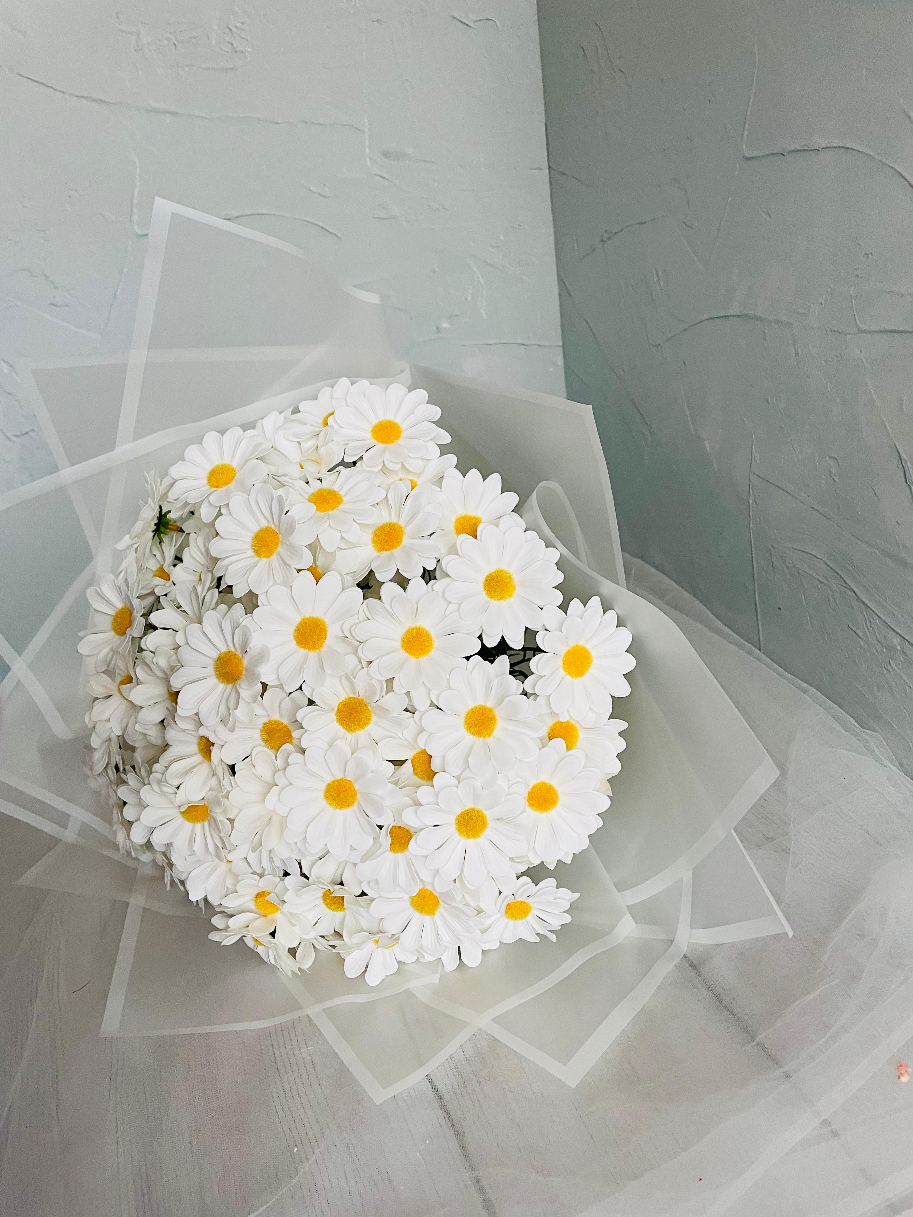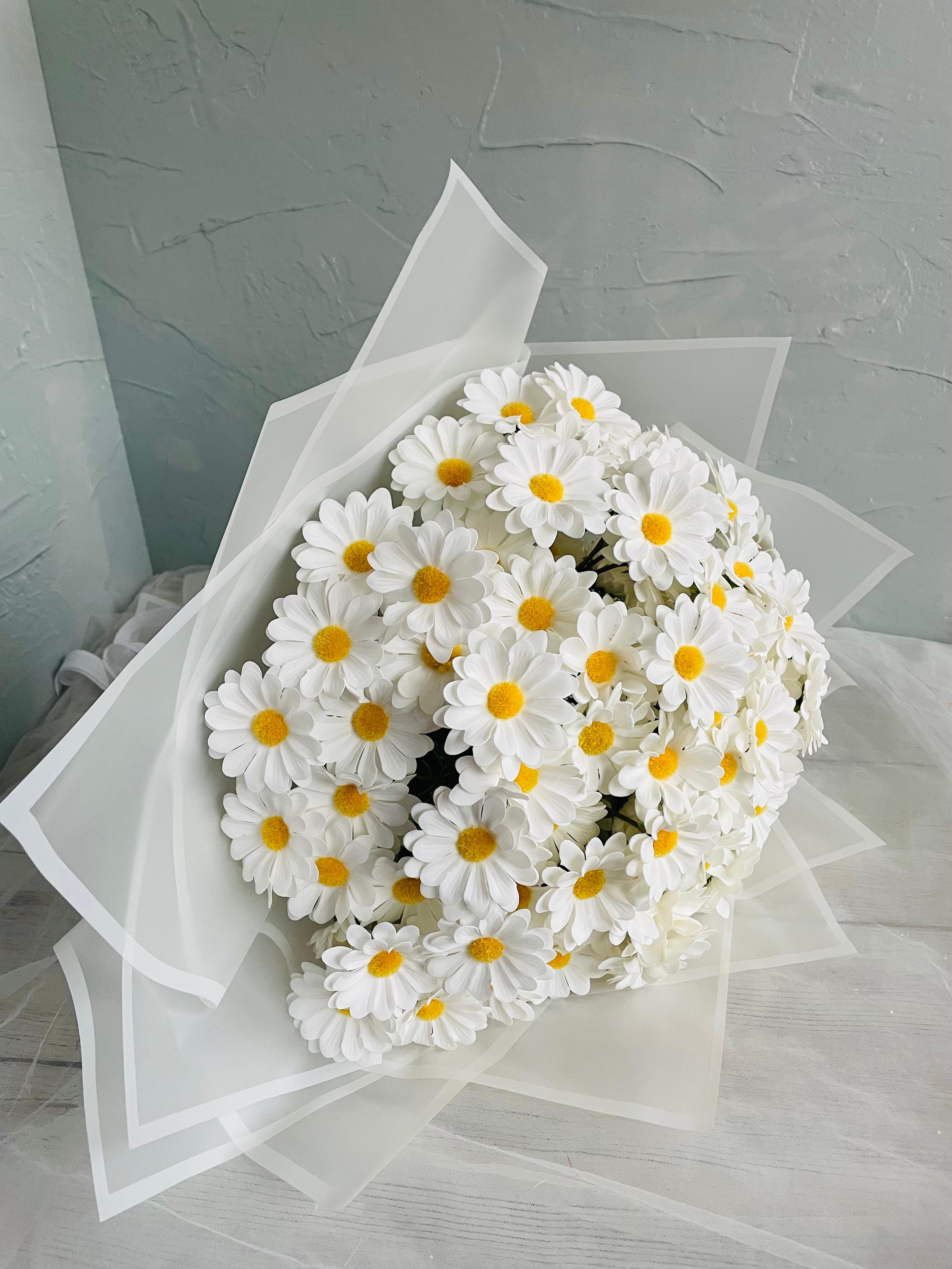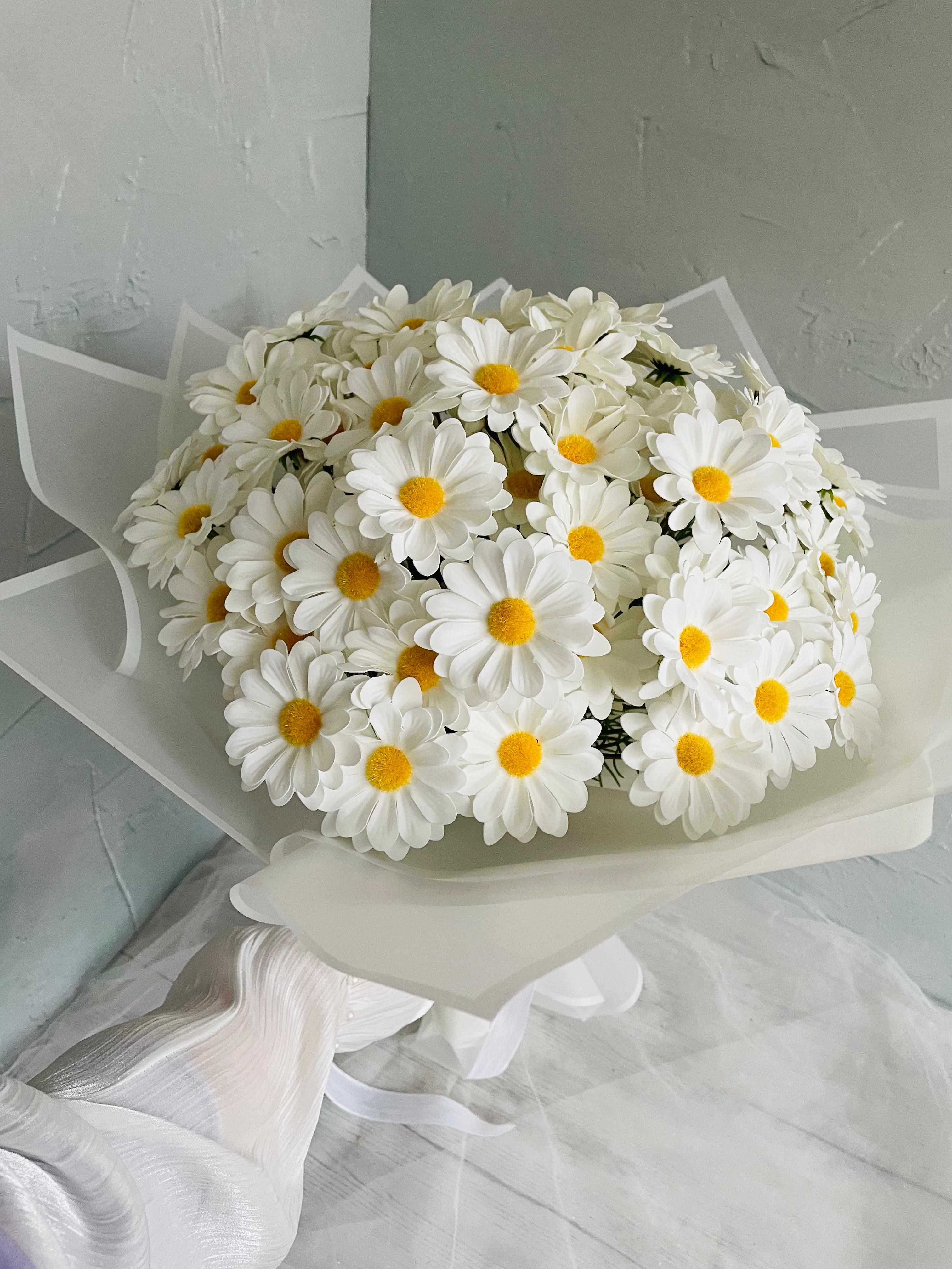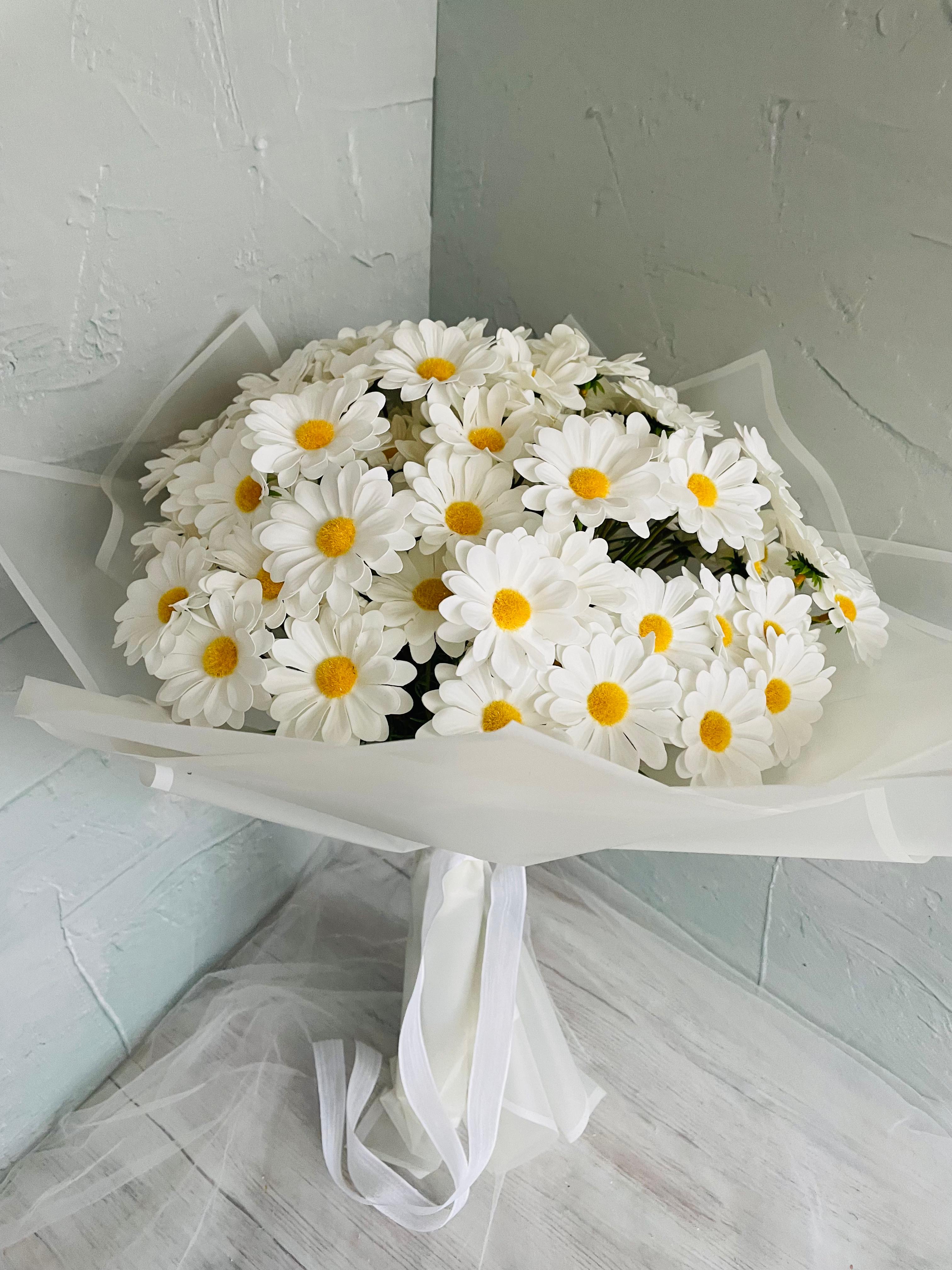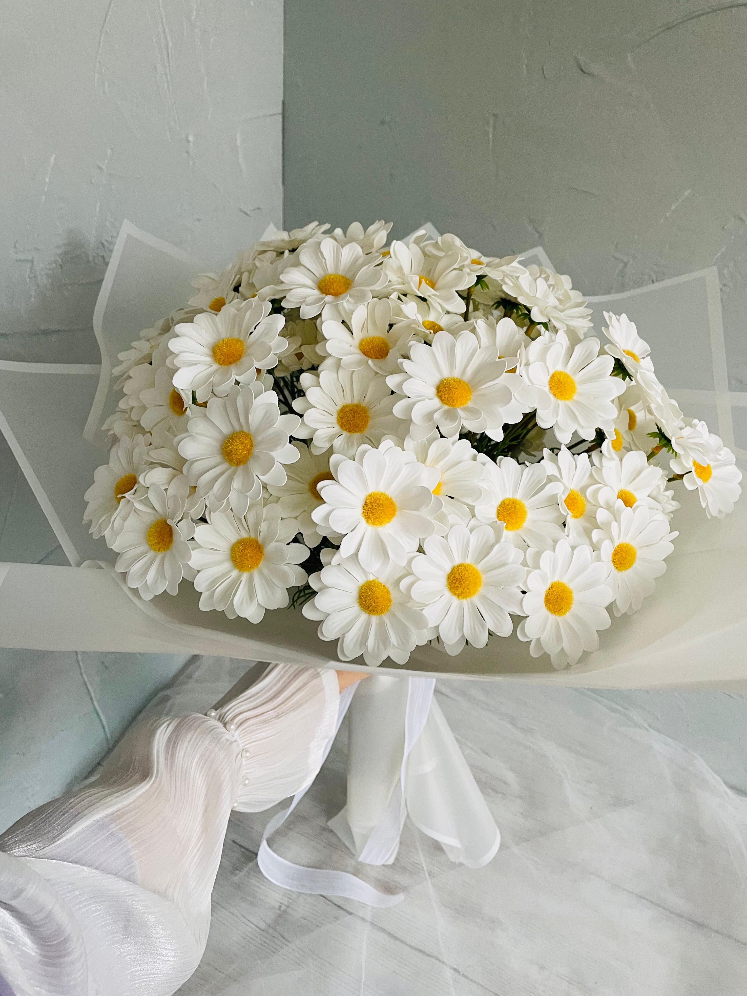 ?Göz alıcı bir ilk izlenim için tasarlandı. Her detayıyla özenle hazırlanan isteme ve nişan buketimiz, sevginin en asil halini yansıtır.? Büyük boydur. Birinci sınıf kalitedeki ıslak dokulu papatyadan oluşmaktadır. Teslim süresi 15-20 iş günüdür; acil tarihler için not kısmına belirtmeniz yeterlidir.? ?Ürünlerimiz tamamen el yapımıdır; bu nedenle her buket ve süs benzersizdir. Çiçeklerin yerleşimi ve detayları ufak farklılıklar gösterebilir, bu da ürünlerimize özel bir karakter katar. ?