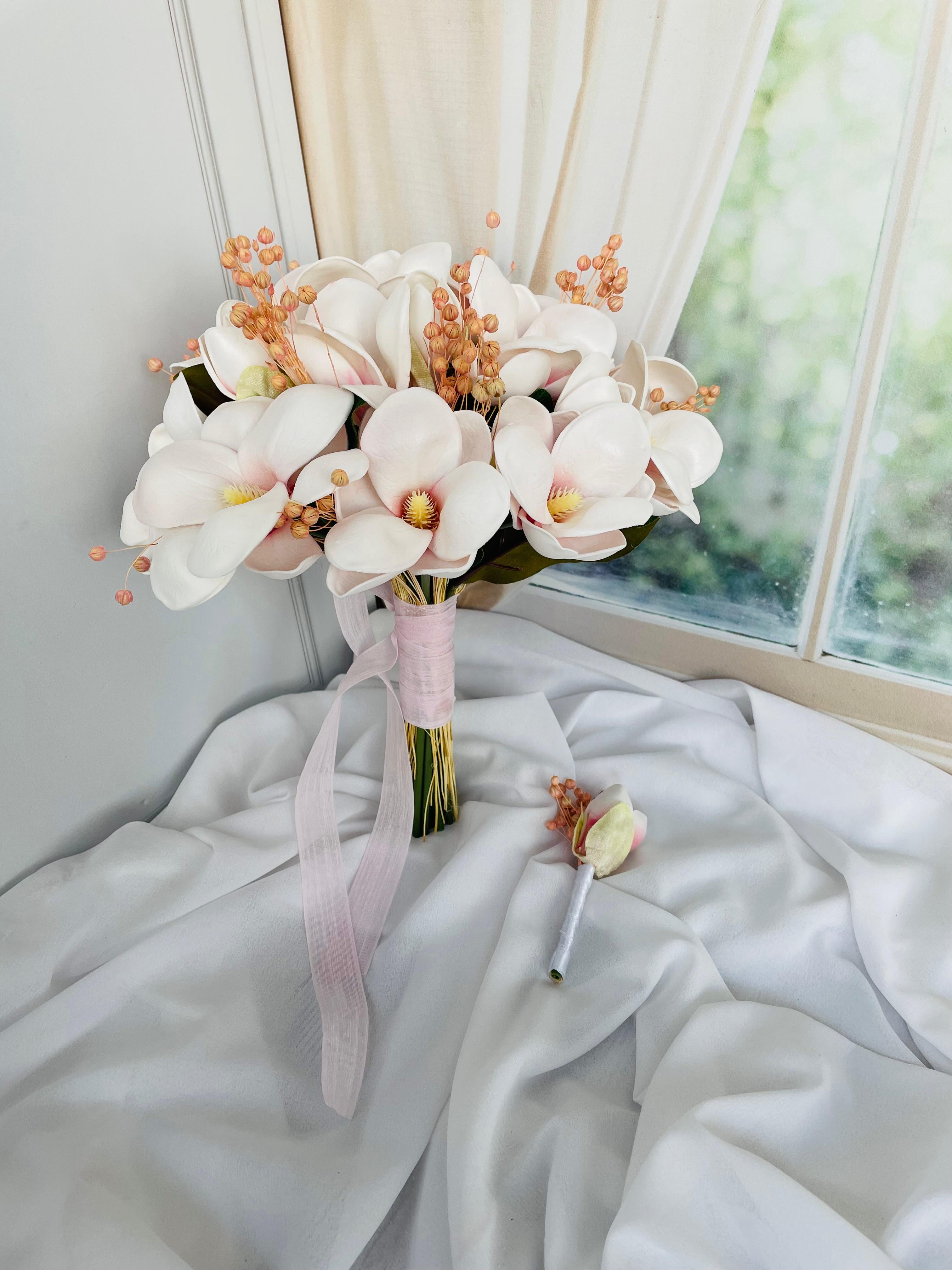 ✨Zarafeti ve asaletiyle öne çıkan manolyalarla hazırlanan bu buket, özel anlara doğal bir şıklık katar. Yumuşak dokusu ve etkileyici duruşuyla sevdiklerinize duygularınızı en saf haliyle iletmenizi sağlar.? Birinci sınıf kalitedeki yapay çiçeklerden oluşuyor, ömürlüktür. Orta boydur ne büyük ne de küçük. Yaka çiçeği hediyedir. Teslim süresi 15-20 iş günüdür; acil tarihler için not kısmına belirtmeniz yeterlidir. ?Ürünlerimiz tamamen el yapımıdır; bu nedenle her buket ve süs benzersizdir. Çiçeklerin yerleşimi ve detayları ufak farklılıklar gösterebilir, bu da ürünlerimize özel bir karakter katar. ?