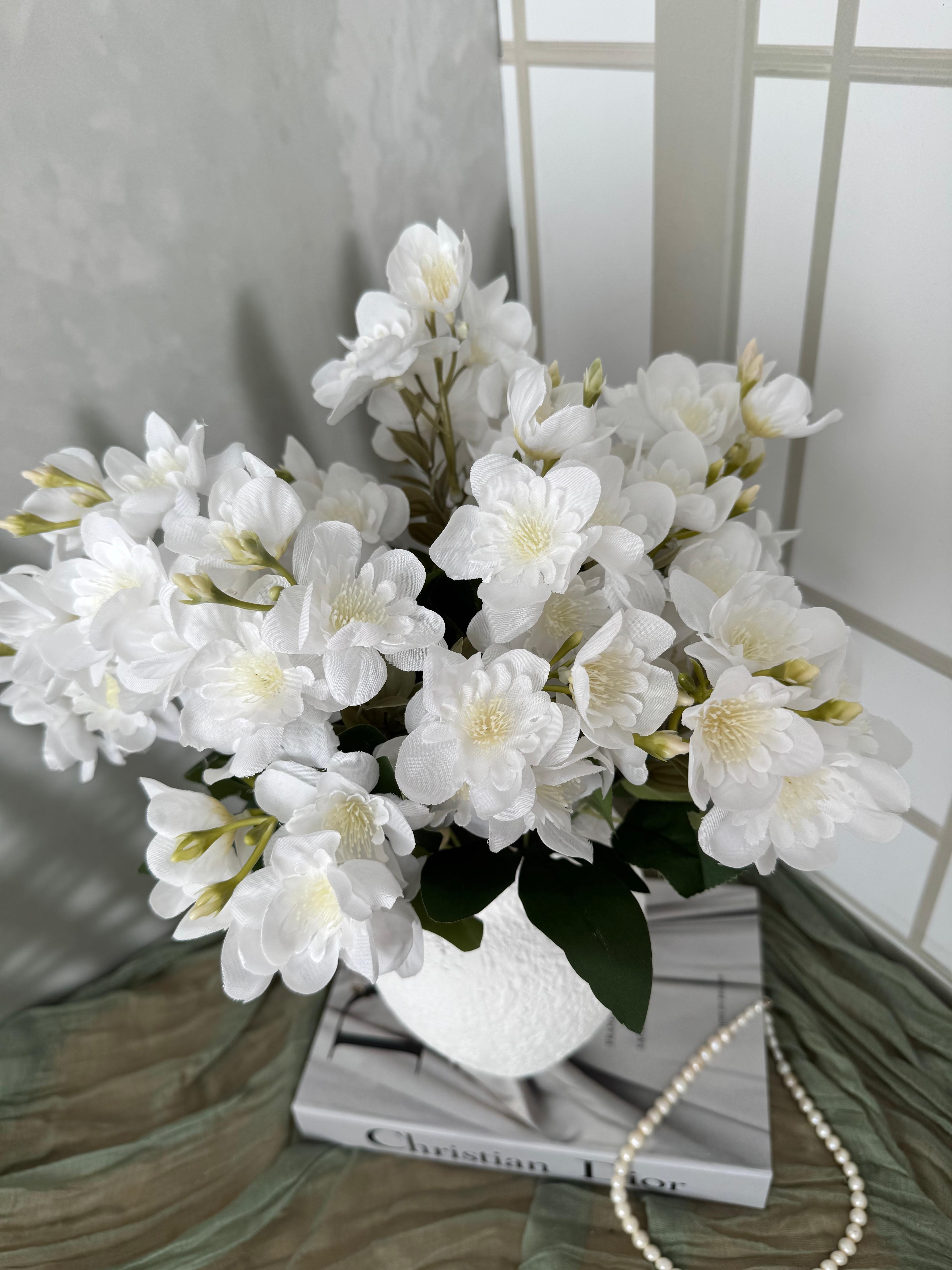 Her mekâna uyum sağlayan zamansız bir zarafet. Bu vazo çiçeği, renklerin ve formların doğal uyumuyla bulunduğu ortama ferahlık ve denge katar. Tek başına güçlü bir duruş sergilerken, farklı dekorasyon stilleriyle de kolayca bütünleşir. Günlük yaşamda sade bir şıklık, özel anlarda ise ince bir dokunuş sunar. ✨Görselde üç demet kullanılmıştır. ?Teslim süresi 15-20 iş günüdür; acil tarihler için not kısmına belirtmeniz yeterlidir.