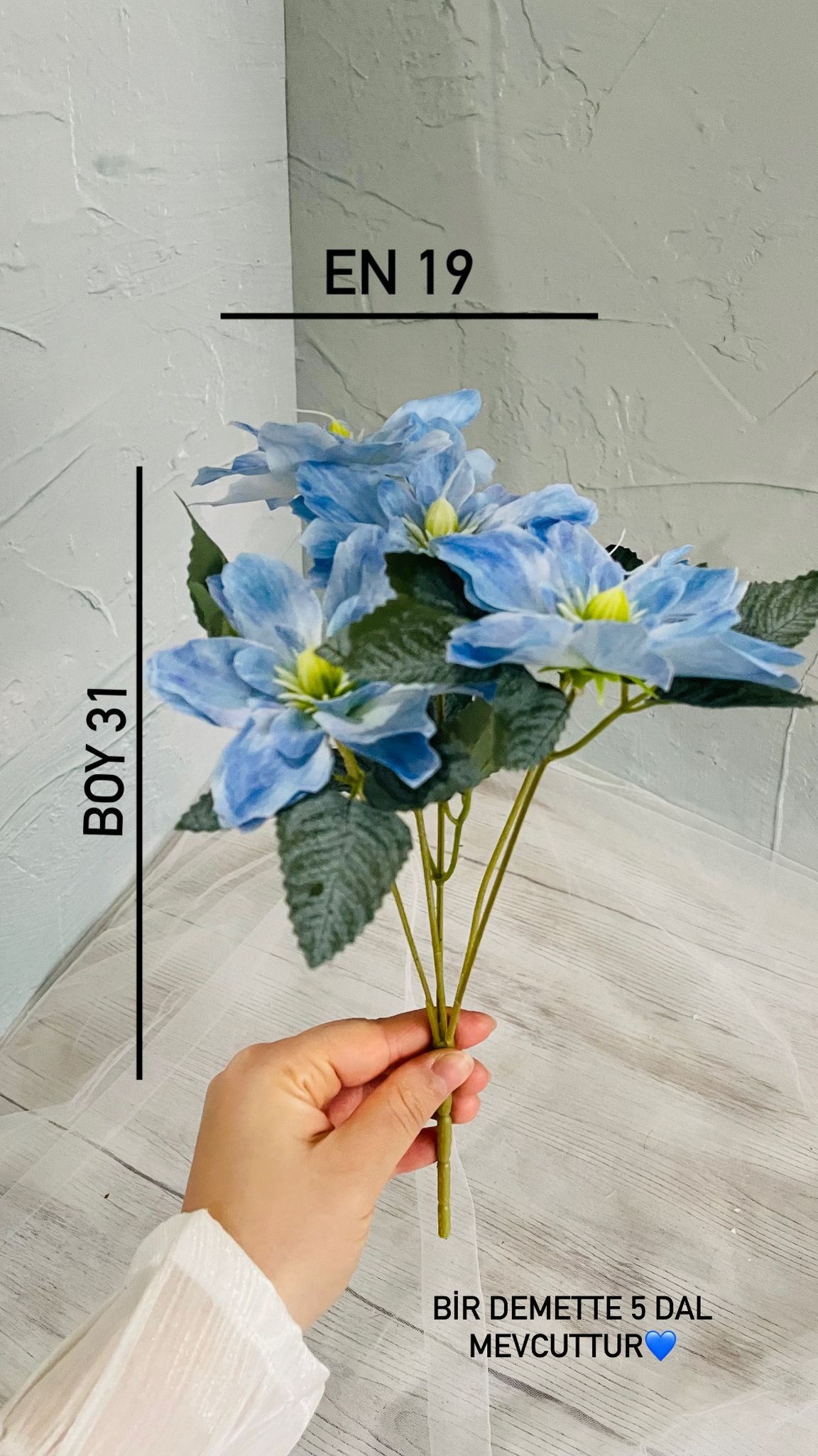 Her mekâna uyum sağlayan zamansız bir zarafet. Bu vazo çiçeği, renklerin ve formların doğal uyumuyla bulunduğu ortama ferahlık ve denge katar. Tek başına güçlü bir duruş sergilerken, farklı dekorasyon stilleriyle de kolayca bütünleşir. Günlük yaşamda sade bir şıklık, özel anlarda ise ince bir dokunuş sunar. ✨Görselde iki demet kullanılmıştır. ?Teslim süresi 15-20 iş günüdür; acil tarihler için not kısmına belirtmeniz yeterlidir.