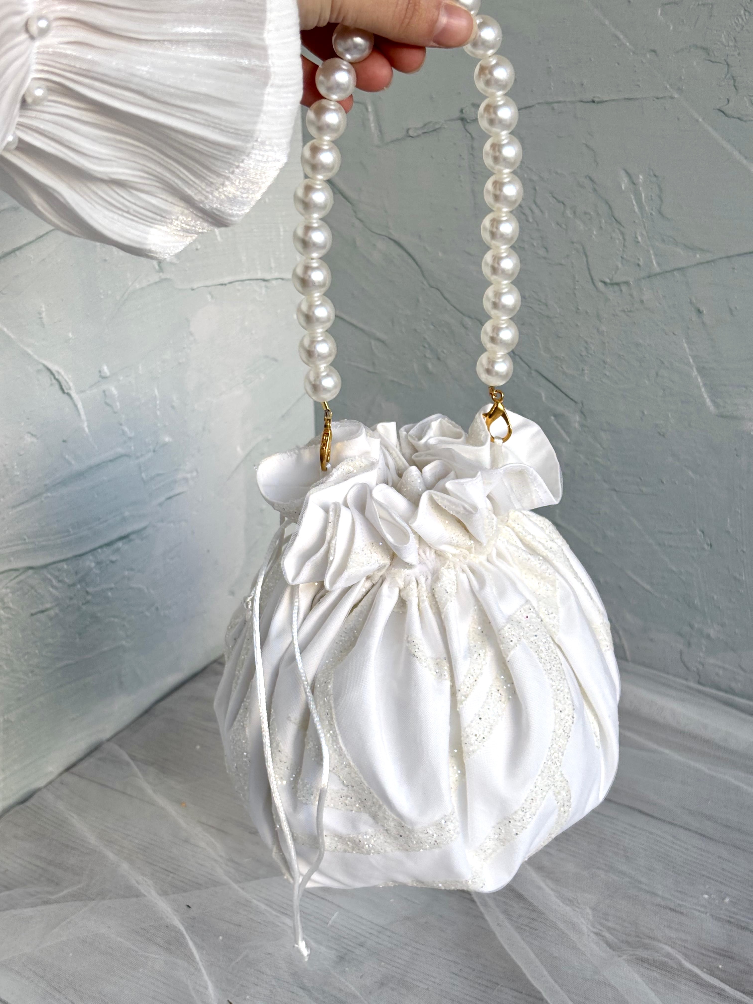 Beyazın saflığına eşlik eden işleme detaylarıyla modern ve zarif bir görünüm sunan bu gelin kesesi, özel gününüzün şıklığını tamamlamak için tasarlandı. Hem estetik hem de kullanışlı yapısıyla tüm küçük detaylarınızı zarafetle taşır.? Ölçü=20x20 ?Teslim süresi 15-20 iş günüdür; acil tarihler için not kısmına belirtmeniz yeterlidir.