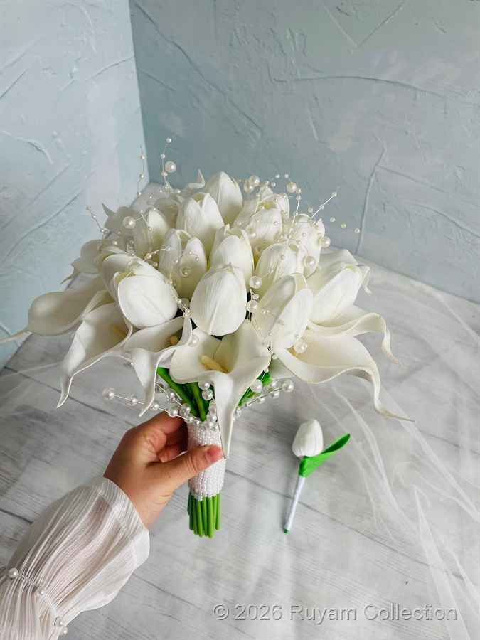 Gerçek çiçek görünümündeki birinci sınıf ıslak dokulu çiçeklerle hazırlanmıştır. Zarif ve sade tasarımıyla her gelinliğe uyum sağlar. Orta boydur ne büyük ne de küçük . Yaka çiçeği hediyedir. Teslim süresi 15-20 iş günüdür; acil tarihler için not kısmına belirtmeniz yeterlidir. ? Ürünlerimiz tamamen el yapımıdır; bu nedenle her buket ve süs benzersizdir. Çiçeklerin yerleşimi ve detayları ufak farklılıklar gösterebilir, bu da ürünlerimize özel bir karakter katar. ?