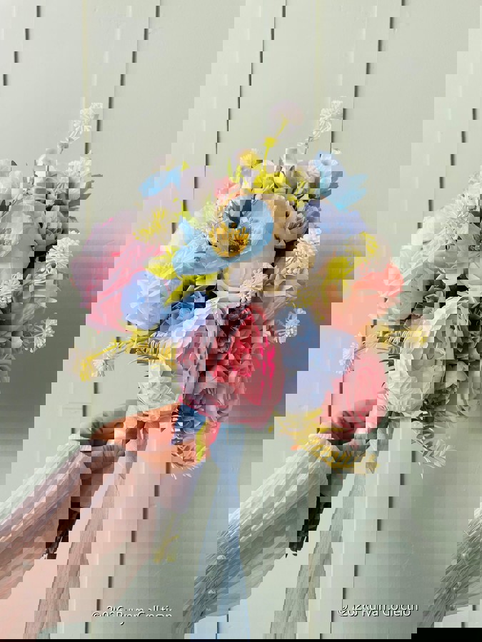 Şakayık ve gülün zarafetiyle hazırlanmış bu buket, her özel ana zarif bir dokunuş katar. Birinci sınıf kalitedeki birebir canlı görünümündeki çiçeklerden oluşmaktadır. Orta boydur ne büyük ne de küçük. Yaka çiçeği hediyedir.? 💌 Teslim süresi 15-20 iş günüdür; acil tarihler için not kısmına belirtmeniz yeterlidir. ?Ürünlerimiz tamamen el yapımıdır; bu nedenle her buket ve süs benzersizdir. Çiçeklerin yerleşimi ve detayları ufak farklılıklar gösterebilir, bu da ürünlerimize özel bir karakter katar.
