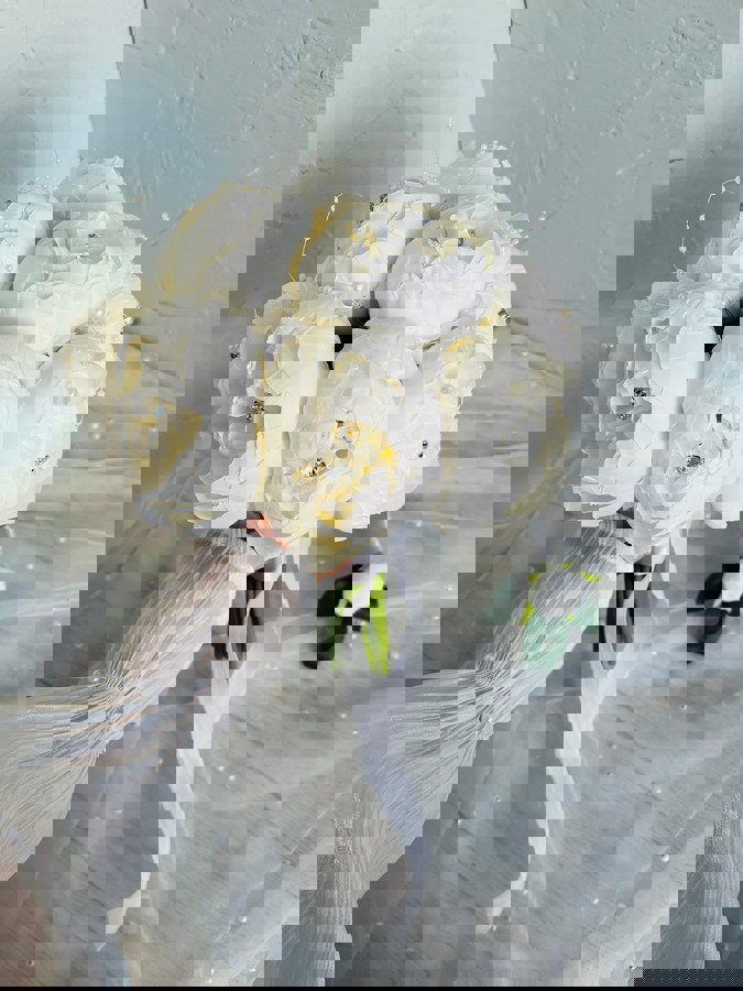 Işıltılı taşlar ve zarif dokusuyla özel şakayık buketi, klasik güzelliği modern bir ihtişamla buluşturur. Her detayı özenle hazırlanmış , gösterişli ama zarif bir tasarım. Yaka çiçeği hediyedir. Teslim süresi 15-20 iş günüdür; acil tarihler için not kısmına belirtmeniz yeterlidir. Ürünlerimiz tamamen el yapımıdır; bu nedenle her buket ve süs benzersizdir. Çiçeklerin yerleşimi ve detayları ufak farklılıklar gösterebilir, bu da ürünlerimize özel bir karakter katar.